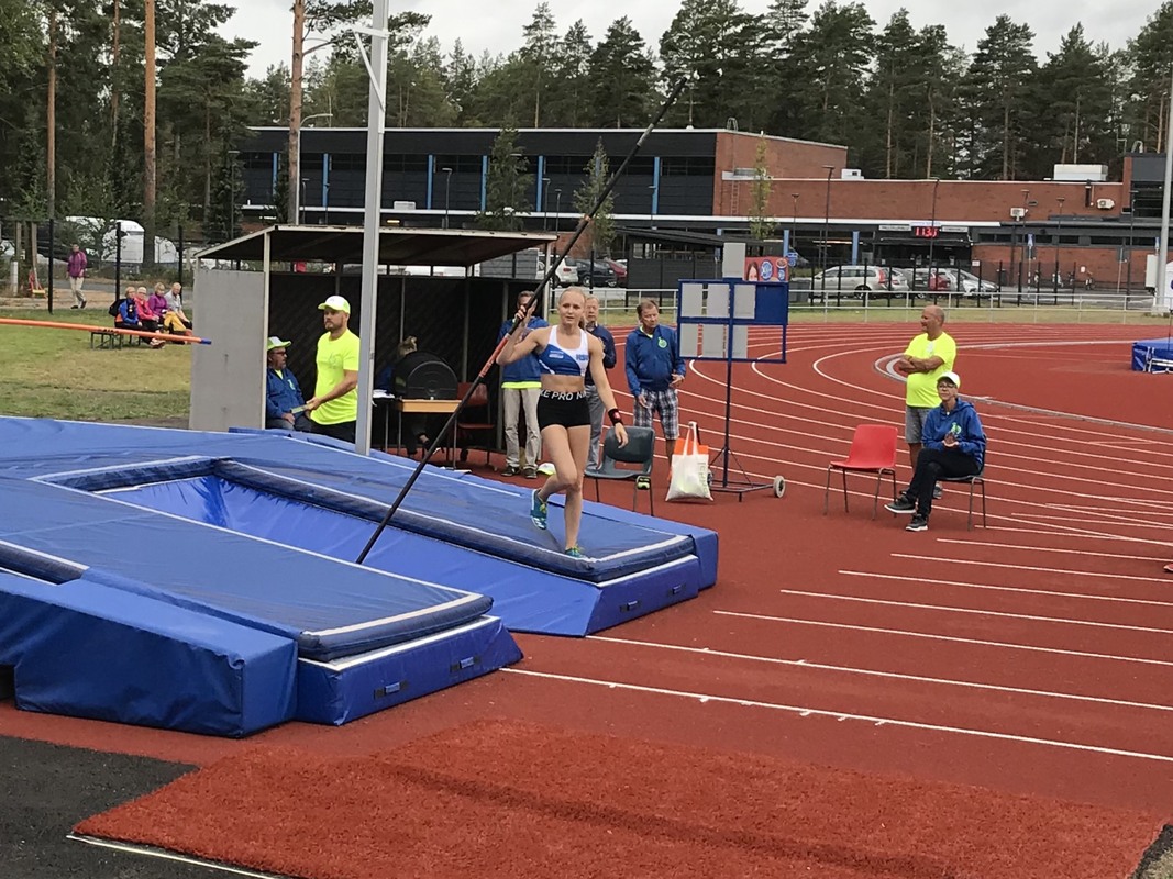 Emma Rovasalo (N17, seiväshyppy). Emma kertoo, että hyppyä on häirinnyt keväästä asti tekniikkavirhe, mutta pari edellistä kilpailua on jo näyttänyt tuloksellisesti paremmalta. Emma odottaa silti hyppäävänsä ennätyksensä yli (382) niin viikonloppun SM-kisoissa kuin seuraavan viikon Kalevan kisoissakin.