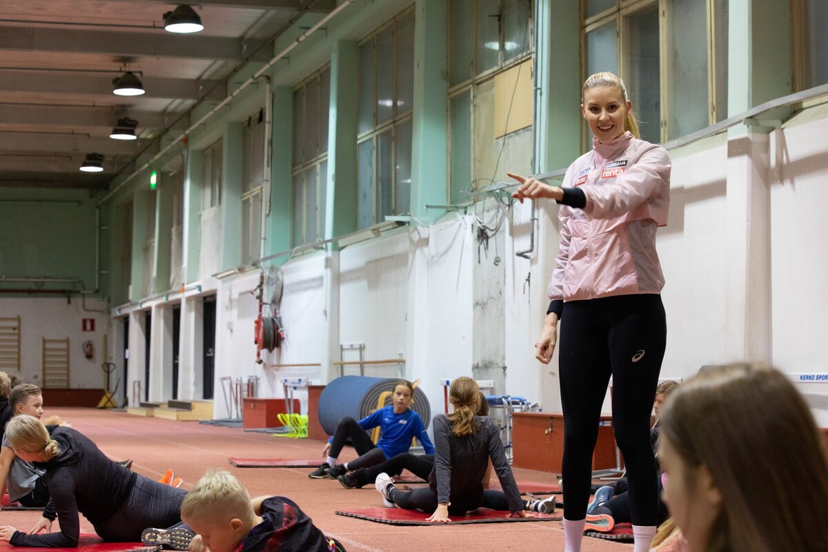 Huippu-urheilija Kristiina Mäkelä vieraili Hyvinkäällä keskiviikkona vetämässä harjoitukset nuorten kilparyhmille- ja aikuisryhmälle.