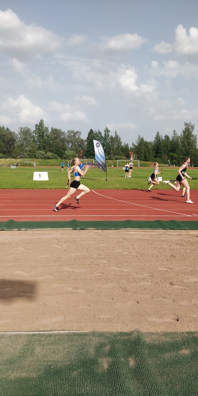 Sissi Kaksonen T15 4x100m ankkurina loppusuoralla. Joukkue (Sissi Kaksonen, Neela Jakonen, Elsa Pinola, Anni Huttunen) onnistuivat juoksemaan viidenneksi kisassa huolimatta ikävästä kapulan tiputuksesta matkalla.