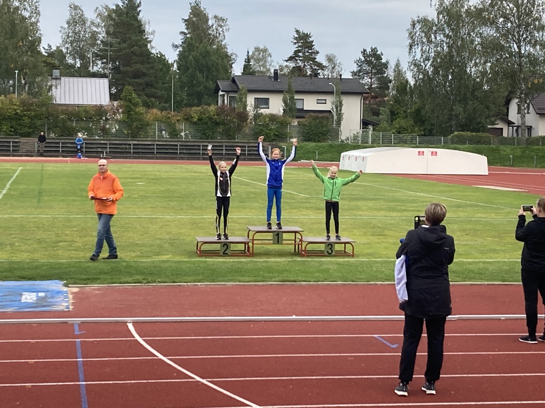 9, 10 ja 11-vuotiaiden PM-moniottelut kilpailtiin Hyvinkäällä 7.9. Kilpailuihin osallistui 98 urheilijaa ja syyskuinen melko lämmin, sekä hämärtyvä ilta loi kilpailuille aivan erityisen tunnelman. Lajeina kaikissa sarjoissa oli pikamatka (9-vuotiaissa 40 m ja 10–11-vuotiaissa 60 m), pituushyppy ja kuulantyöntö. HSU:lta oli mukana kilpailemassa kymmenen urheilijaa, ja loppusaldona kilpailuista tuli heille kymmenen henkilökohtaista ennätystä, neljä piirinmestaruusmitalia ja yksi piirinennätys. 9-vuotiaissa tytöissä HSU:lta oli peräti neljä urheilijaa mukana. Miia Rehn sijoittui kuudenneksi pisteillä 528 (7.68, 3.34, 5.36), Siiri Koski oli kymmenes pisteillä 435 (7.43, 2.97, 3.82), Kiia Salo 13. pisteillä 424 (7.93, 3.01, 4.57) ja Helmi Rouvinen 15. pisteillä 401 (7.54, 3.20, 2.81). Poikien 9-vuotiaiden sarjassa nähtiin mahtisuoritukset HSU:n pojilta, sillä saldona oli kaksoisvoitto ja piirinennätys. Tobias Löfgren otti voiton kotiin piirinennätyspistein 835 (6.84, 3.81, 7.46) ja vuotta nuorempi Leo Makkonen tuli toiseksi pistein 752 (7.01, 3.69, 6.89). Kaksoisvoiton täydensi vielä Tobiaksen pikkuveli Anton Löfgren (7-vuotta), joka oli kahdeskymmenes pistein 353 (8.14, 2.57, 4.38). Tytöt 11 sarjassa kilpaileva HSU:n Senni Koski oli hienosti kolmas pisteillä 846 (9.50, 3.93, 6.86) ja vuotta nuorempien tyttöjen sarjassa Miisa Virtanen oli hänkin myös kolmas pistein 696 (9.72, 3.78, 5.06). 10-vuotiaissa tytöissä oli mukana myös Sara Poikolainen, joka sijoittui 13. pistein 493 (10.76, 3.20, 4.73). HSU onnittelee kaikkia urheilijoita uusista ennätyksistä, sekä mitalisteja mitaleista ja Tobiakselle suuret onnittelut uudesta piirinennätyksestä! |