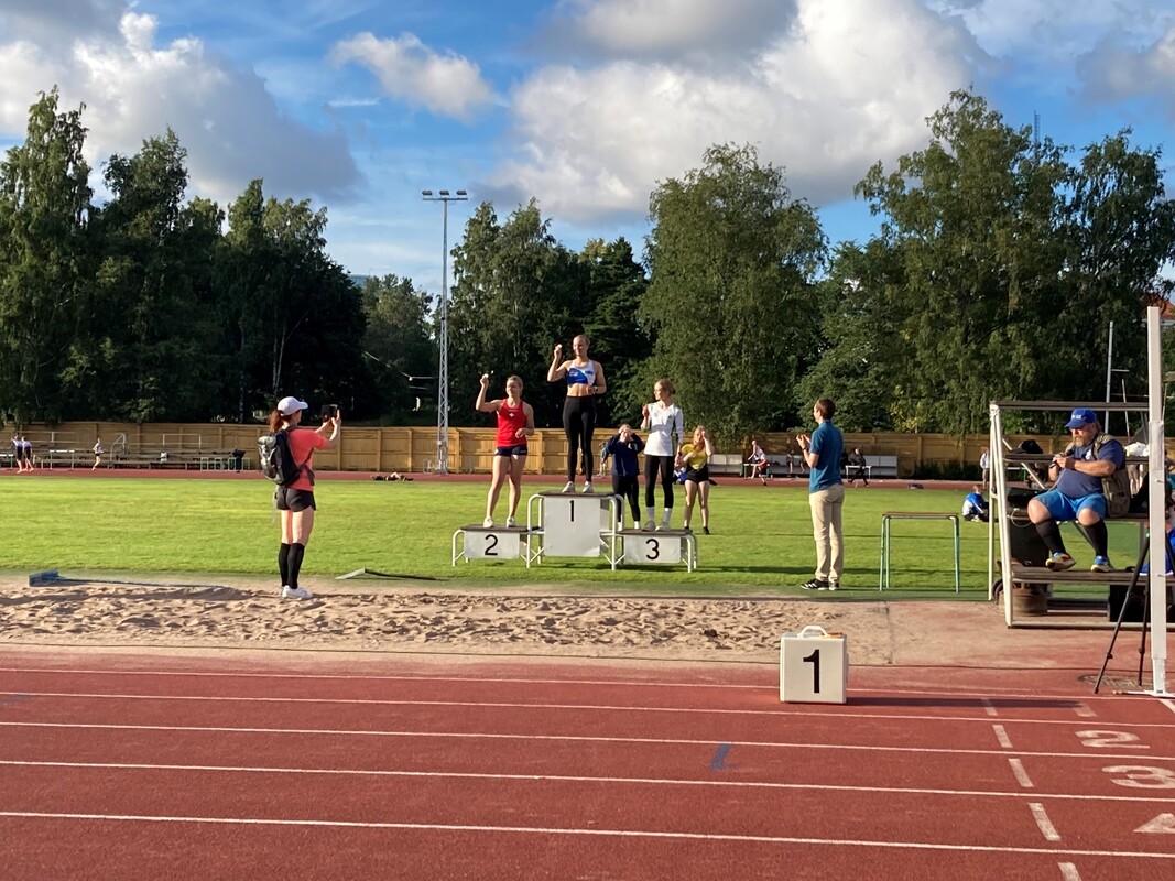 14- ja 15-vuotiaiden eteläisen alueen aluemestaruuskilpailut käytiin 1. ja 2. elokuuta Eläintarhan urheilukentällä Helsingissä. HSU:n huippuvireiset urheilijat keräsivät yhteensä viisi mitalia, joista neljä olivat kultaisia. 1. Kisapäivä 1.8. Ensimmäisenä kisapäivänä HSU:sta oli mukana viisi urheilijaa. Tasaisessa T15 sarjan korkeuskilpailussa HSU:n Ester Solismaa ylitti korkeuden 158 cm ensimmäisellään, joka riitti hyvällä pöytäkirjalla aluemestaruuteen. Tulos jää vain sentin Esterin ennätyksestä, eikä seuraava korkeus 160 cm ollut kaukana ylittyä. P15 sarjan 3000 metrin kävelyssä Henri Kovanen lähti tavoittelemaan SM-kisarajaa 18.30,00. Tämä onnistuikin mainiosti ja kellot pysähtyivät aikaan 18.19,89, jolla yhden miehen kilpailussa Henri nousi oikeutetusti ykköspallille. Kolmannen kullan HSU:lle nappasi Sissi Kaksonen T15 sarjan 100 metrillä. Kovasta vastatuulesta huolimatta Sissi kellotti kelpo ajat alkuerissä 12.82 (-3.0) ja finaalissa 12.86 (-1.9). P14 sarjassa Elias Oksanen urakoi kaksi lajia. Pituushypyssä vaihtelevat tuuliolot vaikeuttivat askelmerkkien osumista koko kisan ajan, mutta tästä huolimatta Elias ponnisti tuloksen 4.94 (+2.9) ja viidenneksi. Illan jo viilennyttyä Elias jatkoi vielä kuulapaikalla, jossa hän työnsi hienosti aluemestaruushopealle kauden toiseksi parhaalla tuloksellaan 9.94. HSU:n ensimmäisen päivän edustuksen täydensi T14 sarjassa Iisa Aramo, joka heitti kiekossa tuloksella 22,58 viidenneksi. Iisan ennätys 25.09 syntyi vain kaksi päivää aiemmin Lohjalla käydyissä kilpailuissa. 2. Kisapäivä 2.8. Toisena kisapäivänä mukana oli vain edellisen päivän 100 metrin mestari Sissi Kaksonen. Tällä kertaa matkana oli 300 metriä, joka tasaisen voittokamppailun jälkeen kääntyi Sissin voittoon ajalla 40.57. Aika jää vain parin kymmenyksen päähän tänä kesänä juostusta ennätyksestä 40.34, joka on myös T15 sarjan kauden kärkitulos. |