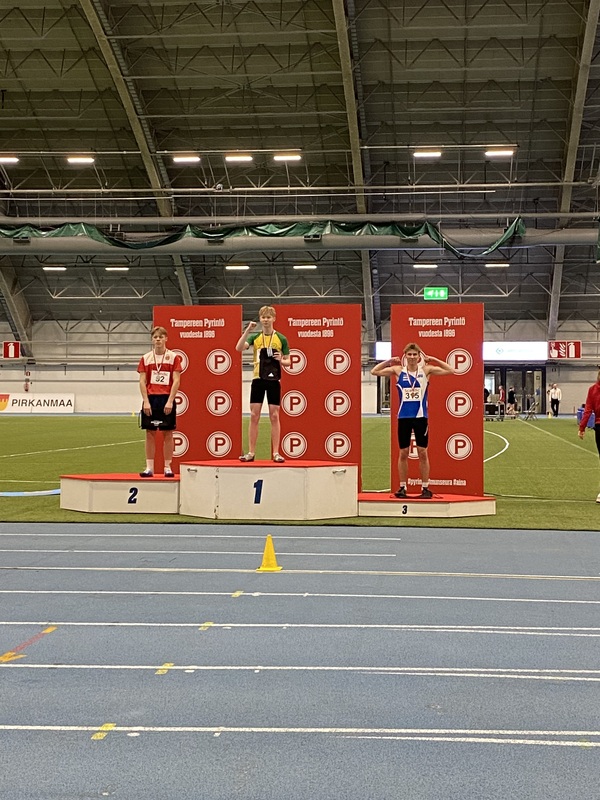 LAUANTAI 9.3.2024 N17 300m aj Neela Jakonen 49,68 (6.) PB N17 korkeus Ester Solismaa 154 (jaettu 4. sija) P15 300m aj Matias Martikainen 61,10 (4.) PB P15 60m Toivo Halonen 7,57 (3.) PB P15 korkeus Toivo Halonen 170 (4.) PB P10 60m Anton Löfgren 10,35 (26.) PB P12 pituus Tobias Löfgren 3,82 (21.) P10 kuula Anton Löfgren 5.97 (18.) PB T12 60m Miia Rehn 9,54 (50.) PB T12 korkeus Miia Rehn 120 (25.) P12 keihäs Tobias Löfgren 38.00 (2.) PB P10 pituus Anton Löfgren 3,20 (37.) P12 korkeus Tobias Löfgren 122 (jaettu 3. sija)