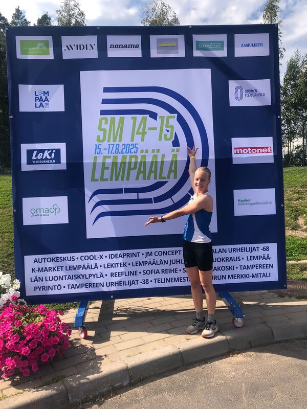 14-17.8.2025 14-15v SM-kisat Lempäälä Hyppykarnevaalien lisäksi tänä kesänä Lempäälässä kisattiin 14-15 -vuotiaiden SM-kisoissa. HSUlaiset urakoivat seitsemässä lajissa kolmen päivän aikana. Kestävyysurheilija Nella Jääskeläinen urakoi SM-kisoissa ja oli neljäs N15 3000m kävelyssä. Nella tuli tilastojen mukainen sija siitä huolimatta, että hän paransi ennätystään yli 20s aikaan 16.36,81. Juoksumatkoista 1500m esteissä hän oli 8. ajalla 5.42,90. Aika on jälleen kerran uusi HSU seuraennätys. Sunnuntain viimeistelyksi Nella juoksi 2000m kisassa 13. ajalla 7.26,73. Senni Koski oli myös hamstrannut juoksumatkoja kolme kappaletta. N13 300m aitojen finaalissa hän oli 12. ajalla 50,05. Se toimi lämmittelynä 800m juoksuun, jossa hän oli finaalin 7. ajalla 2.22,78. Lisäksi 300m juoksussa Senni oli 10. ajalla 42,75. Selkävaivoja parannellut Miisa osallistui vain N14 80m aj. Hän juoksi hyvän ajan 13,23 vaivoista huolimatta. Katkerasti hän oli alkuerien 17. ja jäi hiuskarvan verran jatkopaikasta kun 16 otettiin välieriin. HSU:n lajit kisoissa ja niiden tulokset