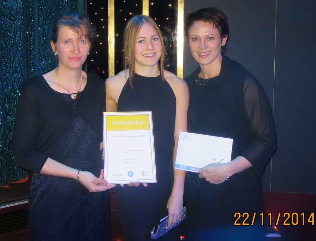 HSU palkittiin kahdesti: Nuorisotoimintakilpailun paras I-luokassa ja 2. tunnustus Vuoden 2014 If Yleisurheilukouluseurana! Suomen Urheiluliitto (SUL) palkitsi 22.11. Tallink Baltic Queen:llä järjestetyssä Yleisurheilugaalassa vuoden 2014 parhaat yleisurheilutoimijat. Urheilutoimittaja Ville Klingan juontamassa ja Marko Vainion Divet shown tähdittämässä tilaisuudessa palkittiin vuoden yleisurheilijana ennakko-odotetusti keihäänheittäjä Antti Ruuskanen. Tilaisuudessa jaettiin lukuisten palkintojen lisäksi valtakunnallisen Nuorisotoimintakilpailun (4-13v) palkinnot, jossa Hyvinkään Seudun Urheilijat palkittiin seuraluokittelun perusteella parhaana I-luokan seurana. (uutisoitu: Nuorisotoimintakilpailussa palkittiin 22 seuraa). Suomen Urheiluliitto ja If Vahinkovakuutusyhtiö palkitsivat myös Urheilugaalassa vuoden 2014 kolme parasta If Yleisurheilukouluseuraa. Palkintoja oli jakamassa If Yleisurheilukoulun kummiurheilijana toimiva keihäänheittäjä Tero Pitkämäki. Suurimmalla 3000 euron shekillä palkittiin Lahden Ahkera. Hyvinkään Seudun Urheilijat palkittiin 2000 euron arvoisella hopeashekillä. Kolmannen palkinnon sai Kaustisen Pohja-Veikkojen If yleisurheilukoulu. HSUn puolesta palkintoa oli laivalla vastaanottamassa Elina Toivola, Svea Kytölä ja Maria Kytölä. Palkintokriteereissä seurojen If Yleisurheilukouluja arvioitiin muun muassa käytössä olevan If Yleisurheilukouluilmeen hyödyntämisessä seuran materiaaleissa ja nettisivuilla sekä toiminnassa mukana olevien lasten määrän mukaan. Valinnassa kiinnitettiin huomiota myös seurojen vastuullisuuteen lasten yleisurheilulisenssien hoitamisessa sekä yleisurheilukouluryhmien toiminnan laadukkuuteen sekä koulutettujen ohjaajien määrään. "HSU liittyi If Yleisurheilukouluun ja otti If Yleisurheilukoulu-konseptin käyttöönsä vuoden 2014 alusta. Viime vuosien kovan työn tuloksena, yleisurheilutoiminta seurassamme on mukavasti myötätuulessa. Koulutamme säännöllisesti uusia nuoria ohjaajiksi. Se on satsaus, mutta ensiarvoisen tärkeää yleisurheilutoiminnan pyörittämiselle myös jatkossakin. Laadukkaan ja monipuolisen yleisurheilutoiminnan avulla tutustutamme lapsia sekä nuoria monien lajien ja mahdollisuuksien yleisurheiluun, tuemme samalla liikunnallista elämäntapaa ja hyvinvointia sekä kasvatamme heidän sosiaalisia taitoja. Annamme jokaiselle mahdollisuuden harrastaa yleisurheilua iloisessa ja innostavassa ilmapiirissä, josta lapselle ja nuorelle jäisi mukava sekä miellyttävä elämänmittainen kokemus. Ne ovat asioita, joita seurana haluamme olla mahdollistamassa ja turvaamassa jokaiselle lajista kiinnostuneelle lapselle ja nuorelle", tiivisti yhteen kaikkien HSU:n lasten ja nuorten kanssa toimivien puolesta Elina Toivola. Meillä on vahva luottamus sekä positiivinen asenne yleisurheilua kohtaan. Me teemme tätä työtä rakkaudesta yleisurheiluun! Kiitos kaikille siitä hienosta työstä, jota olette tehneet seuran eri harjoitusryhmissä! HSU: Hyvässä Seurassa Urheilua Linkki Yleisurheilugaala: |