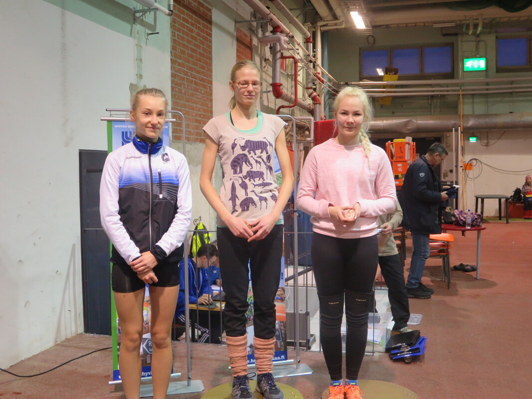 Eilen, 11.1. Hyvinkään Wanhalla Areenalla kilpaili noin 240 urheilijaa Uudy:n vauhdittomien hyppyjen piirimestaruuksista. Viime vuonna vastaavien kisojen osallistujamäärä oli noin 170, ja parissa vuodessa osallistujamäärä on enemmän kuin tuplaantunut. Lajit olivat vauhditon korkeus, pituus ja 3-loikka. 9-10 vuotiailla oli 2-ottelu (pituus ja 3-loikka) ja 11 vuotiaat ja vanhemmat aina yleiseen sarjaan asti 3-ottelu. HSU:sta osallistui 65 urheilijaa ja HSU oli Uudy:n paras seura 15 mitalilla. Kultaa nappasivat Nelli Talvitie T14 1494p (124, 2.27, 6.68), Miko Koskelainen P10 285p (1.94, 5.62), Juho Kantoniemi P12 923p (109, 2.19, 6.05), Marcus Kytölä P14 2689p (142, 2.68, 7,99) ja Ilmari Niiranen P15 2337p (118, 2.83, 8.04). Hopealle sijoittuivat Ilona Pursiainen T9, Iida Tolonen T15, Olavi Halonen P9, Topias Talvitie P11, Jermu Tarkiainen P14 ja Pyry Okkolin P15 sekä pronssille Laila Lehtinen T12, Niilo Kantoniemi P15, Tanja Sorvari N17 ja Emilia Palmu N19. Kisoissa kuultu kommentti: "Näistä kisoista mitali ei enää helpolla irtoa!" |