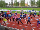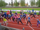 ![Kertun lennokas juoksuaskel. Tanja ja Emma yrittävät pysyä perässä. Kerttu vei voiton kierroksissa, 26. Sitten Tanja 16 ja Emma 10]()