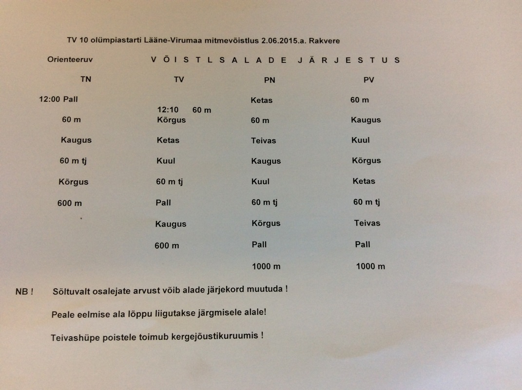 Hyvinkään Seudun Urheilijoiden nuorten otteluryhmä lähti heti loman alkajaisiksi Viroon Hyvinkään Kaupungin tukemalle kilpailumatkalle. Matka suuntautuu Rakvereen, jossa nuoret osallistuvat TV 10- Olympiastart osakilpailuun. Tässä kilpailussa Viron maakunnat karsivat urheilijoita omaan valtakunnalliseen loppukilpailuun. Lajeja nuorilla on huimat 6-9 kappaletta. Uusina lajeina tulee mm. pallonheitto. Mukana matkassa on 9 urheilijaa ja 3 valmentajaa. Urheilijoina ovat Noora Hietala, Laila Lehtinen, Emma Rovasalo, Pihla Poikolainen, Milla Rasinkangas, Nelli Talvitie, Juho Kantoniemi, Jermu Tarkiainen sekä Marcus Kytölä.