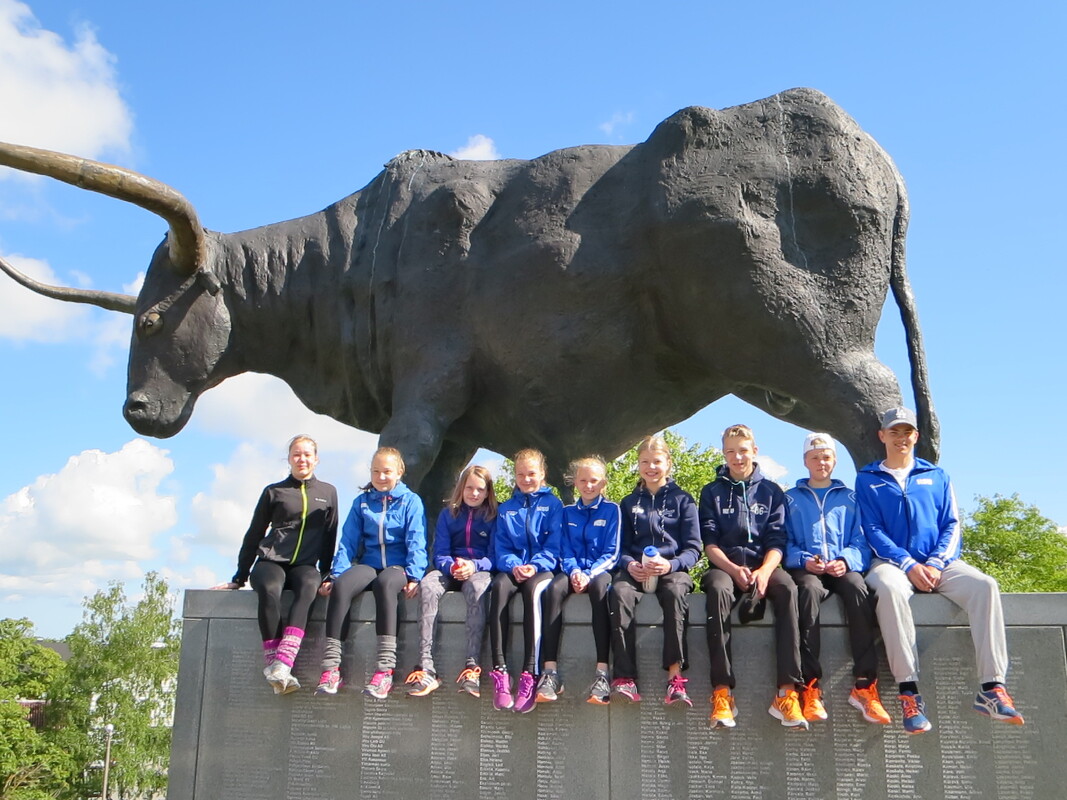 Kisa-aamu aloitettiin Tarvas-härän juurelta, josta haettiin voimia päivän kovaan koitokseen. Lisää tietoja päivitetään kilpailun edetessä...... Juho kiekko 23.52, seiväs 230, 60m 9.03, 60 aj 10.32, kuula 8.06, pituus 446, korkeus 121, pallonheitto 46m, 1000m 3.55.96 Nelli 60m 8.69, korkeus 150, kiekko 35.32, kuula 11.33, pallonheitto 43m, pituus 461, 60 aj 10.27, 600m 1.54.71 Pihla 60m 9.21, korkeus 130, kiekko 13.83, kuula 6.82, pallonheitto 22.50, pituus 374, 60aj 11.59, 600m 1.58.46 Jermu 60m 8.34, pituus 435, kuula 10.78, korkeus 140, kiekko 39.58, seiväs 370, pallonheitto 43m Marcus 60m 7.74, pituus 546, kuula 13.00, korkeus 160, kiekko 37.71, seiväs ei tulosta, pallonheitto 56m, 1000m 3.53.76, 60aj 9.11 Noora pallonheitto 20m, 60m 9.15, pituus 429, korkeus 116, 60aj 10.78, 600m 2.01.04 Emma pallonheitto 25m, 60m 9.15, pituus 423, korkeus 124, 60aj 10.59, 600m 2.02.74
