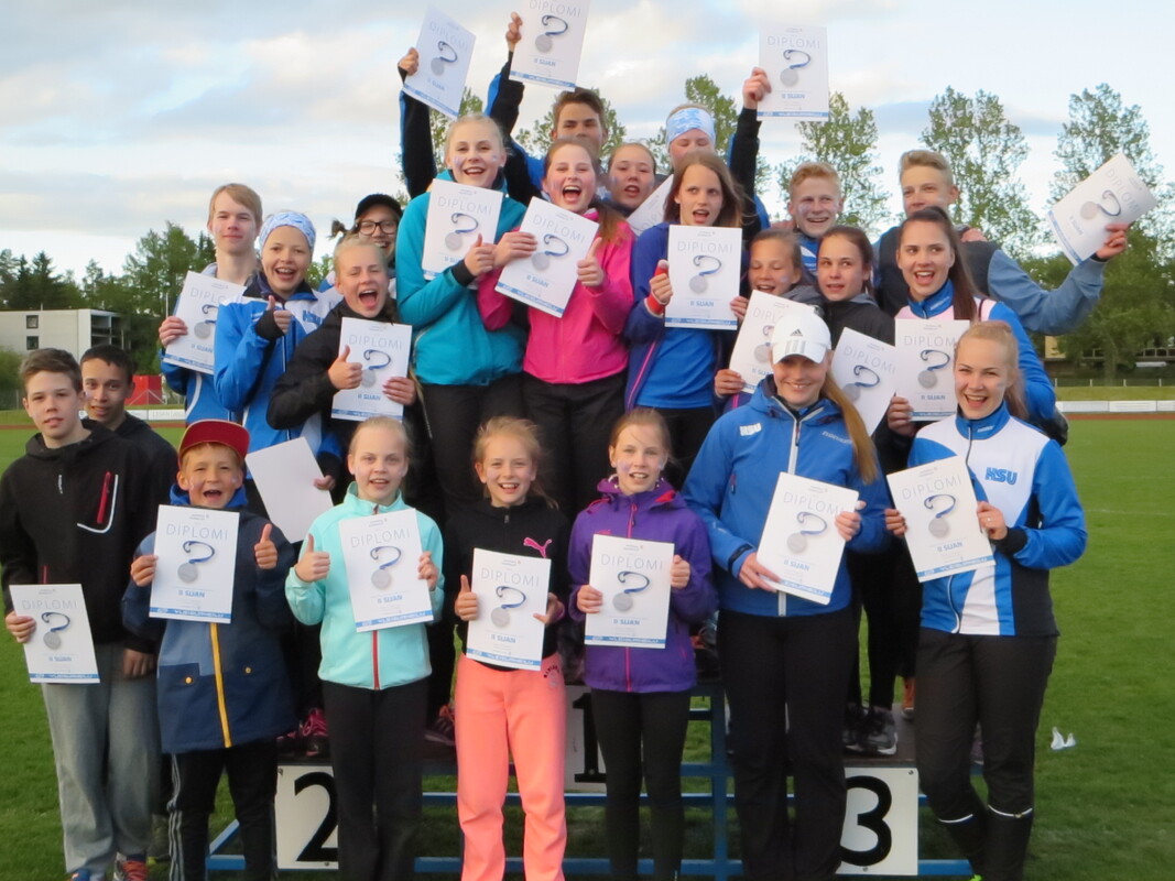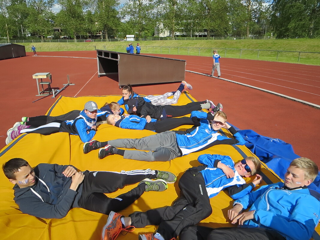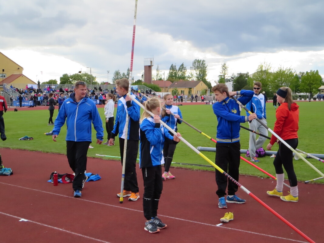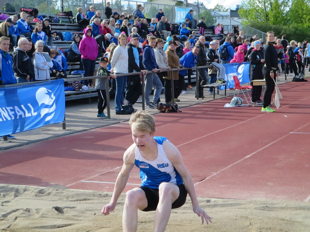 Vattenfall-seuracupin ensimmäinen osakilpailu käytiin eilen 4.6. Järvenpään keskusurheilukentällä tuulisissa olosuhteissa. Seurat kilpailevat kesän aikana kahdessa piirikilpailussa, mutta samassa piirissä eri sarjoissa riippuen kunnan asukasluvusta. Hyvinkää on Tera-sarjassa, eli kaikkien isoimpien kuntien kanssa kamppailemassa finaalipaikasta. Yhdessä osakilpailussa jokainen urheilija saa osallistua vain yhteen lajiin sekä viestiin, ja seuran pisteet lasketaan jokaisen lajin parhaan tuloksen mukaan. Koleasta ilmasta huolimatta moni urheilija onnistui tekemään oman parhaansa ja seuran asettama pistetavoite ylittyi reilusti. HSU oli kisojen toiseksi paras joukkue pistein 13 507, jääden vain noin 200 pistettä järjestävästä seurasta. Viime vuonna ensimmäisestä osakilpailusta HSU sai noin 1400 pistettä vähemmän, jolloin finaalipaikka lopulta jäi niukasti saavuttamatta. Tänä vuonna finaalipaikka on seuran selkeä tavoite. Päivän onnistujiin kuuluivat mm. pojat 15-sarjan seipään voittanut Jermu Tarkiainen, joka viikon sisällä jo kahteen otteeseen on parantanut tulostaan seipäässä 10 cm:llä. Jermun uudet ennätyslukemat kirjataan nyt 380, mikä on Suomen tilastoissa toiseksi paras tulos heti seurakaverin Marcus Kytölän jälkeen (390). Marcus kilpaili tällä kertaa kuulassa, ja voitti tuloksella 13,68. Samassa sarjassa Ilmari Niiranen juoksi ensimmäisen 100m:n kilpailunsa ikinä sijoittuen toiseksi hyvällä ajalla 12,93. Nuoremmissa pojissa Jere Nyfors voitti P13-sarjan keihään ylivoimaisesti parantaen omaa ennätystään jopa 8 metriä tulokseen 37,40. P11-sarjassa omilla ennätyksillään Topias Talvitie voitti 60m:llä ajalla 9,18, Arno Toivola oli kiekossa toinen heitettyään 24,64 ja Miko Koskelainen pituudessa kolmas hypättyään 420. Myös tytöt tekivät hienoja tuloksia kaikissa sarjoissa. 15-vuotiaissa Nelli Talvitie voitti kuulan omalla ennätyksellään 11,76. Sonja Lindström teki myös ennätyksensäi 2000m:llä ollessaan toinen ajalla 7.45,07 ja Iida Tolonen oli ensimmäisessä seiväskisassaan kolmas tuloksella 215. Tyttöjen 60m:llä parhaista tuloksista vastasivat myös ensikertalaiset Annika Parviainen 13-sarjassa ja Frida Penttinen 11-sarjassa. Annika oli toinen kovalla ajalla 9,03 ja Frida hienosti kolmas ajalla 9,54. Heittäjätytötkin onnistuivat lyömään omia ennätyksiään. 13-vuotiaiden keihäässä Venla Toivola sijoittui toiseksi tuloksella 29,20 ja 11-vuotiaiden kiekossa Aino Laitinen heitti kolmanneksi tuloksella 16,10. T13-sarjan korkeudessa Pihla Poikolainen ponnisti toiseksi voittajan kanssa samalla tuloksella 130. |