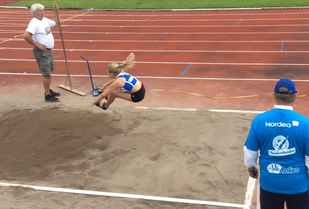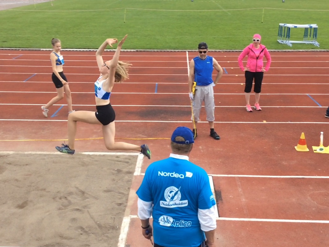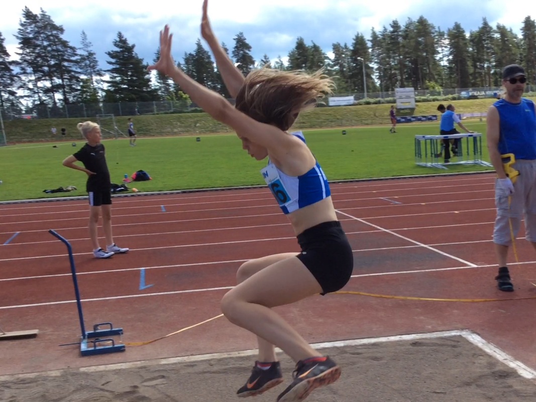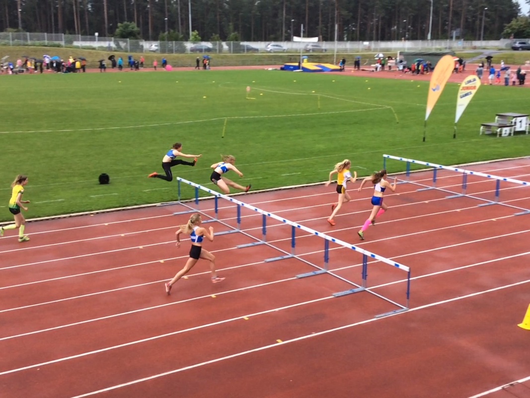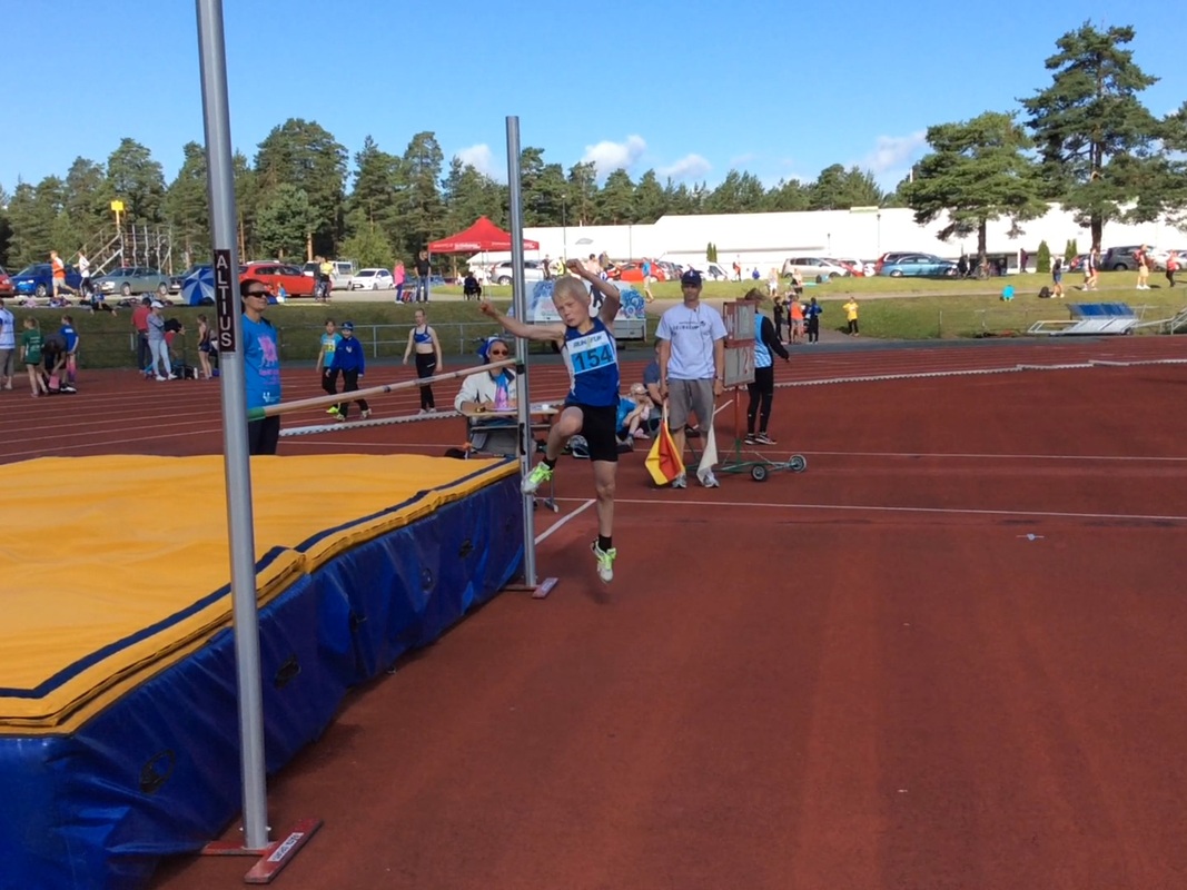 Viikonloppuna kisattiin Lohjan Harjun kentällä LJG:ssä. Lauantaina kello ei ollut kymmentäkään vielä kun ensimmäinen mitali tuli jo HSU:lle. Miko Koskelainen hyppäsi P10 korkeudessa hopealle uudella ennätystuloksellaan 122. Laila Lehtinen ja Moona Hujanen hyppäsivät T12-sarjan seipäässä hopealle ja pronssille. Moona ylitti 220, joka on myös vasta kahden vuoden päästä ajankohtaisena olevan SM-rajan yli. Laila totutteli jäykempään seipääseen ja tulos 230 jäi hieman hänen ennätyksestään. Pikamatkoilla Juho Kantoniemi ja Emma Simberg juoksivat finaaliin. Juhon aika oli 9,14 ja Emma paransi upeasti ennätyksensä kymmenyksellä aikaan 13,35, sekä finaalissa vielä 2 sadasosaa lisää. SM-raja alittui kirkkaasti ja Emmaa palkittiin hopealla. P11-sarjan 60m:llä Topias Talvitie juoksi ennätyksensä 8,76 ja sijoittui kolmanneksi. P10-sarjassa Miko Koskelainen juoksi alkuerissä ennätyksensä 8,83 ja voitti lopulta finaalin ajalla 9,06. P15-sarjan kolmiloikassa Aapo Nieminen paransi ennätyksensä yli metrillä tulokseen 11,03 ja nappasi voiton seurakaverin Ilmari Niirasen edestä. Ilmari jäi vähän omasta ennätyksestään tuloksella 10,82. Aapo oli lisäksi keihäässä kolmas tuloksella 33,25. P13-keihäässä Jere Nyfors oli kolmas hienolla ennätysheitollaan 41,29. Ratamatkat päättyivät pitkiin juoksuihin. 1000m:llä Mikke Liuha juoksi pronssille upealla ennätyksellään 3.23,42. Sunnuntai oli sateinen ja tuulinen, mutta urheilijat jatkoivat hienoja esityksiään. Aamu alkoi P15-sarjan 100m:n aitajuoksulla jossa Ilmari Niiranen ja Aapo Nieminen kävivät SM-rajan kimppuun. Molemmat juoksivat ennätyksensä, Ilmari 16,01 ja Aapo 16,50, mutta rajaan jäi vielä hieman matkaa. Uusi yritys koittaa tiistaina Hämeenlinnassa. HSU:n nuorimmat pojat olivat huikeassa juoksukunnossa. P11-sarjassa Topias Talvitie oli 150m:llä 2. ajalla 21,57, joka on tilastojen neljänneksi nopein tänä kesänä, ja P10-sarjassa Miko Koskelainen kolmas ajalla 22,70. Miko oli lisäksi sekä 60m:n aitajuoksussa että pituushypyssä toinen tuloksilla 11,14 ja 415. T10-sarjassa Emilia Rouvinen juoksi 150m:llä hopealle hienolla ajalla 22,96 ja tilastoissa viidenneksi. T14-sarjassa Nelli Talvitie nappasi keihäässä voiton ja kuulassa pronssin tuloksilla 34,55 ja 10,77. Sekä Nelli että Milla Rasinkangas, joka jäi niukasti neljänneksi ennätysheitollaan 33,32, ylittivät SM-rajan. T11-sarjassa 60m:n aitajuoksussa Aino Laitinen juoksi pronssille ajalla 11,46, kuten myös Marianne Salmi T9-sarjan 400m:llä ajalla 77,92. Kaikki tulokset: Tilastopaja |