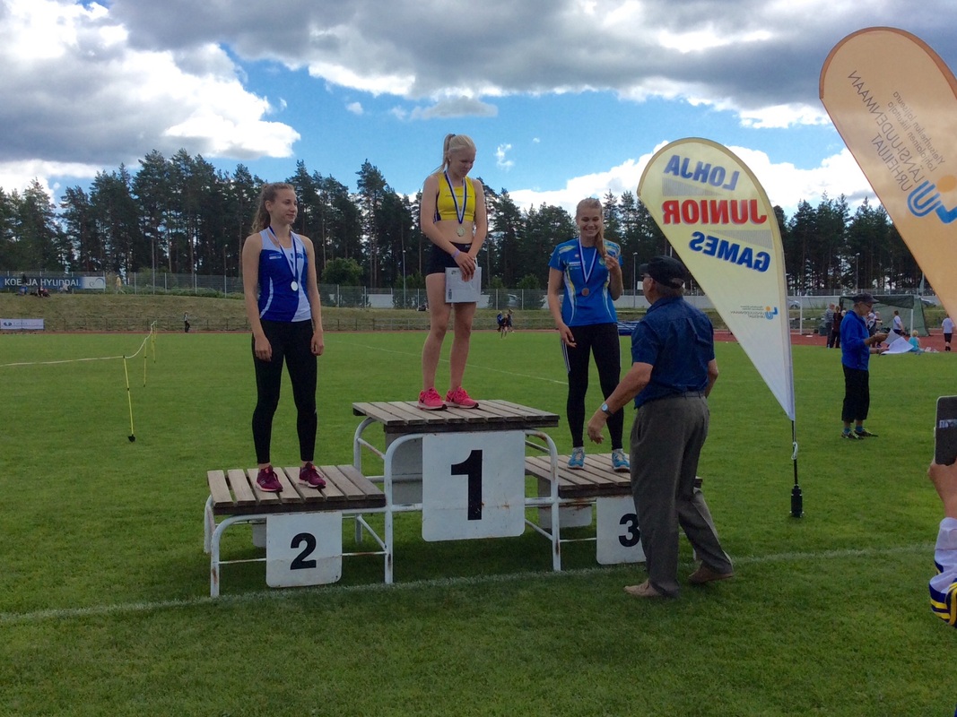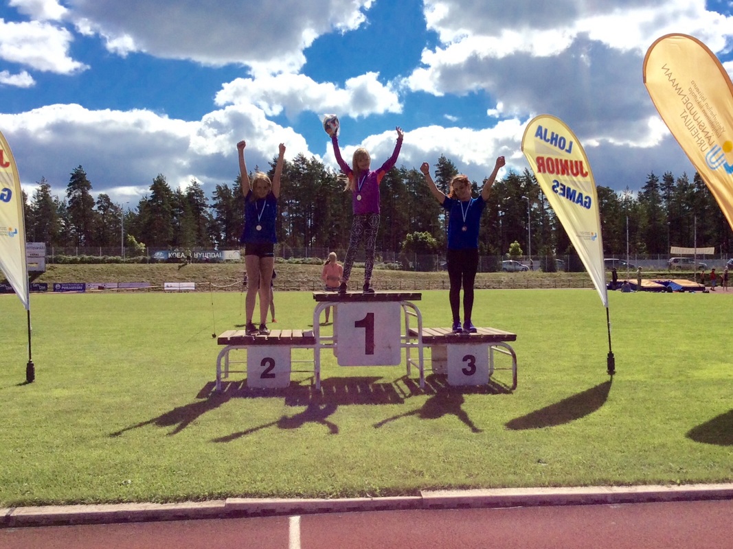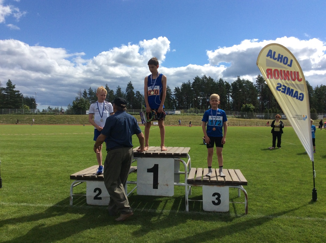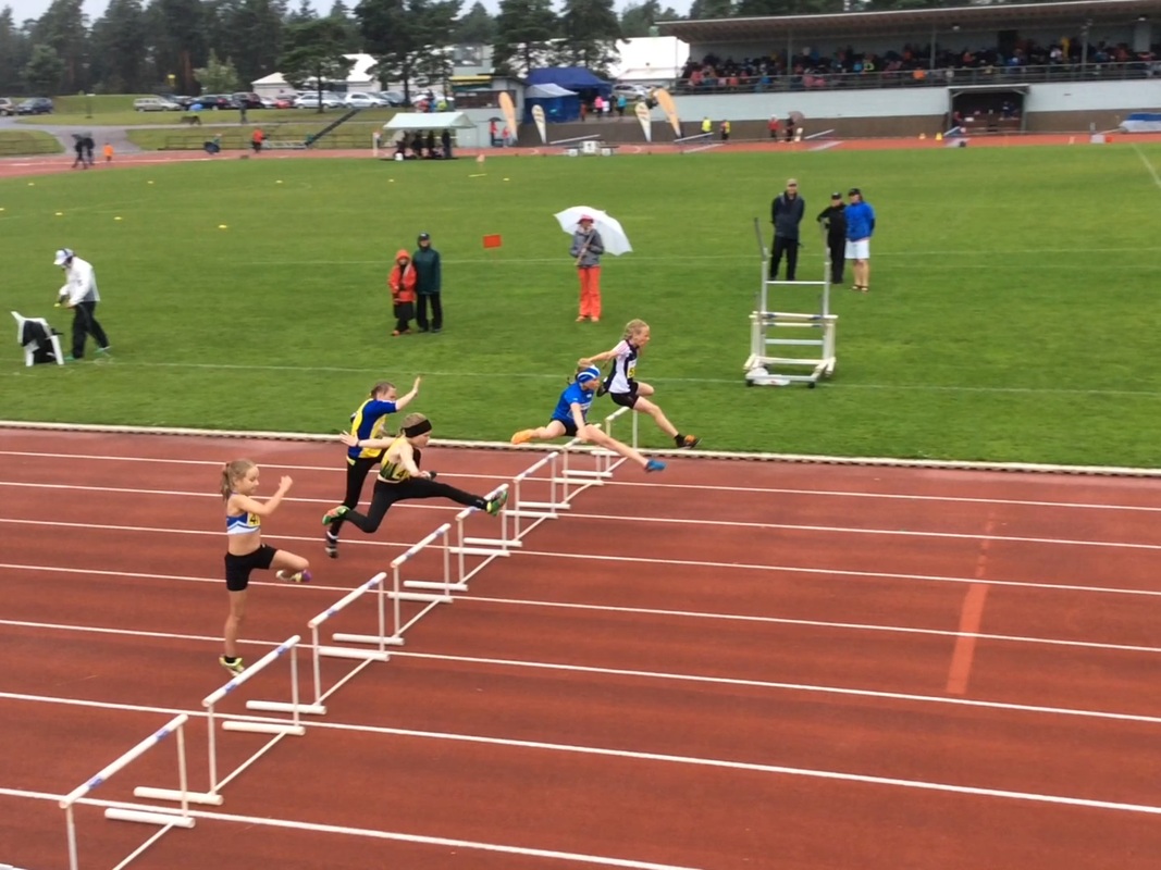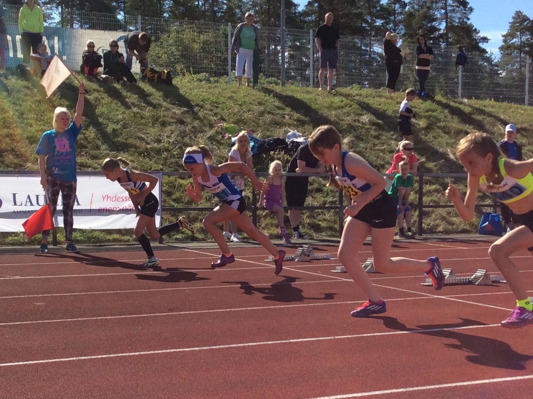 Viikonloppuna kisattiin Lohjan Harjun kentällä LJG:ssä. Lauantaina kello ei ollut kymmentäkään vielä kun ensimmäinen mitali tuli jo HSU:lle. Miko Koskelainen hyppäsi P10 korkeudessa hopealle uudella ennätystuloksellaan 122. Laila Lehtinen ja Moona Hujanen hyppäsivät T12-sarjan seipäässä hopealle ja pronssille. Moona ylitti 220, joka on myös vasta kahden vuoden päästä ajankohtaisena olevan SM-rajan yli. Laila totutteli jäykempään seipääseen ja tulos 230 jäi hieman hänen ennätyksestään. Pikamatkoilla Juho Kantoniemi ja Emma Simberg juoksivat finaaliin. Juhon aika oli 9,14 ja Emma paransi upeasti ennätyksensä kymmenyksellä aikaan 13,35, sekä finaalissa vielä 2 sadasosaa lisää. SM-raja alittui kirkkaasti ja Emmaa palkittiin hopealla. P11-sarjan 60m:llä Topias Talvitie juoksi ennätyksensä 8,76 ja sijoittui kolmanneksi. P10-sarjassa Miko Koskelainen juoksi alkuerissä ennätyksensä 8,83 ja voitti lopulta finaalin ajalla 9,06. P15-sarjan kolmiloikassa Aapo Nieminen paransi ennätyksensä yli metrillä tulokseen 11,03 ja nappasi voiton seurakaverin Ilmari Niirasen edestä. Ilmari jäi vähän omasta ennätyksestään tuloksella 10,82. Aapo oli lisäksi keihäässä kolmas tuloksella 33,25. P13-keihäässä Jere Nyfors oli kolmas hienolla ennätysheitollaan 41,29. Ratamatkat päättyivät pitkiin juoksuihin. 1000m:llä Mikke Liuha juoksi pronssille upealla ennätyksellään 3.23,42. Sunnuntai oli sateinen ja tuulinen, mutta urheilijat jatkoivat hienoja esityksiään. Aamu alkoi P15-sarjan 100m:n aitajuoksulla jossa Ilmari Niiranen ja Aapo Nieminen kävivät SM-rajan kimppuun. Molemmat juoksivat ennätyksensä, Ilmari 16,01 ja Aapo 16,50, mutta rajaan jäi vielä hieman matkaa. Uusi yritys koittaa tiistaina Hämeenlinnassa. HSU:n nuorimmat pojat olivat huikeassa juoksukunnossa. P11-sarjassa Topias Talvitie oli 150m:llä 2. ajalla 21,57, joka on tilastojen neljänneksi nopein tänä kesänä, ja P10-sarjassa Miko Koskelainen kolmas ajalla 22,70. Miko oli lisäksi sekä 60m:n aitajuoksussa että pituushypyssä toinen tuloksilla 11,14 ja 415. T10-sarjassa Emilia Rouvinen juoksi 150m:llä hopealle hienolla ajalla 22,96 ja tilastoissa viidenneksi. T14-sarjassa Nelli Talvitie nappasi keihäässä voiton ja kuulassa pronssin tuloksilla 34,55 ja 10,77. Sekä Nelli että Milla Rasinkangas, joka jäi niukasti neljänneksi ennätysheitollaan 33,32, ylittivät SM-rajan. T11-sarjassa 60m:n aitajuoksussa Aino Laitinen juoksi pronssille ajalla 11,46, kuten myös Marianne Salmi T9-sarjan 400m:llä ajalla 77,92. Kaikki tulokset: Tilastopaja |