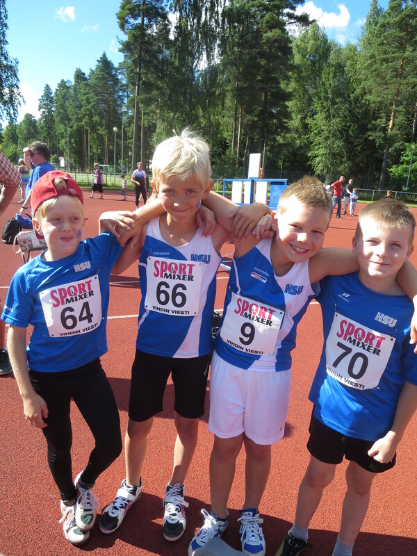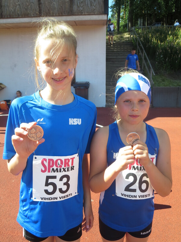 Uudy:n 10-15-vuotiaiden yksilölajien sekä 9-vuotiaiden miniotteluiden Pm-kisat käytiin viikonloppuna 15-16.8. Vihdissä Nummelan kentällä. Osallistujia oli noin 400 urheilijaa Uudenmaan seuroista ja kyseessä on monen nuoren kauden pääkilpailut. HSU:n urheilijoita oli mukana taas ennätysmäärä poimimassa mitaleita ja rikkomassa omia ennätyksiä! Viikonlopun mitalisaalis oli yhteensä 95, joista 40 mestaruutta, ja näin ollen HSU oli piirin paras seura. Viime vuonna mitaleita tuli 75. "Upeat kisat, ensi vuoden tavoite on sitten 100 mitalia," sanoi valmentaja Svea Kytölä. "Mitalien lisäksi urheilijat olivat tiukassa kisassa useasti pistesijoilla, vain senttejä tai sadasosien päästä palkinnoista." HSU:n pojat olivat jälleen hurjassa iskussa. Kuusi mestaruutta nappasi Marcus Kytölä P14-sarjassa; 100m, 300m, 100m aitajuoksu, korkeus, seiväs ja pituus. Kuusi mitalia sai myös P12-sarjassa Juho Kantoniemi, joka voitti 200m:llä, 60m:n aidoissa ja pituudessa sekä otti lisäksi kolme hopeaa; 60m, korkeus ja kiekko. Triplamestarit olivat myös P15-sarjassa Aleks Meidla; 100m, 300m ja 800m, sekä Niilo Kantoniemi; kuula, kiekko ja keihäs. Niilo otti lisäksi moukarissa ja 100m:n aidoissa pronssia. Samassa sarjassa Ilmari Niiranen oli tuplamestari; 100m aitajuoksu ja pituus, ja Aapo Nieminen voitti seipäässä. Ilmari oli seipäässä ja 300m:llä hopealla ja Aapo niin ikään pituudessa, 100m:n aidoissa ja keihäässä, sekä 300m:llä ja kolmiloikassa pronssilla. P14-sarjassa Jermu Tarkiainen otti kaksi mestaruutta, kuulassa ja kiekossa. Juhon ikätoveri Justus Talvitie käveli 2000m:n matkan voittajana maaliin. P10-sarjassa triplamestariksi nousi Miko Koskelainen, 60m:llä, 60m:n aidoissa sekä pituudessa. Miko otti viisi mitalia ollessaan vielä korkeudessa toinen ja kuulassa kolmas. Arno Toivola heitti kultaa keihäässä ja oli korkeudessa toinen. Pronssia tuli Arnolle kuulasta ja kiekosta. Elmo Mertanen juoksi saman sarjan 1000m:llä mestariksi. Tytöistä paras oli T15-sarjan Siiri Saalo neljällä mestaruudella; 80m ja 300m aitajuoksu, seiväs ja moukari. Siiri heitti myös kiekossa pisimmälle, mutta päällekkäisten aikataulujen ja toimitsijan sääntöjen vastaisten ohjeiden mukaan toimimisen takia Siiri ei ollut oikeutettu sijoitukseensa. Kolmiloikasta Siiri nappasi vielä hopean. T14-sarjassa Nelli Talvitie voitti korkeudessa, kuulassa ja keihäässä, hopea tuli pituudesta ja pronssi 80m:n aidoista. T12-sarjassa Laila Lehtinen otti neljä mitalia, korkeudessa ja kuulassa kultaa sekä pituudessa hopeaa ja moukarissa pronssia. Ikätoveri Annika Parviainen juoksi elämänsä ensimmäisellä 200m:llä mestariksi. T10-sarjassa Emilia Rouvinen oli tuplamestari, 60m:n aidoissa ja kuulassa, ja oli 60m:llä toinen sekä keihäässä kolmas. Aidoista tuli kovassa kisassa HSU:lle triplavoitto Aino Laitisen sekä Isla Sokoffin täydentämänä. Elsa Mattila työnsi saman sarjan kuulassa mestaruuteen. Palkintopallille pääsi myös ilahduttavasti useampi piirinmestaruuskisojen ensikertalainen. Moni yllätti sekä itsensä että valmentajia venymällä huippusuorituksiin kauden pääkisoissa ja uusia ennätyksiä syntyi lukematon määrä. "Yksi HSU:n vahvuuksista on monipuolisuus," pohtii nuorisopäällikkö Yvonn Lindholm. "On myös hienoa nähdä että urheilijat uskaltavat kokeilla uusia lajeja näinkin isoissa kisoissa, ja vielä suoriutua niistä menestyksekkäästi." Alla HSU:n mitalistit sarjoittain. Onnittelut! Lauantai P15 100m 1. Aleks Meidla 12,19 800m 1. Aleks Meidla 2.14,20 Seiväs 1. Aapo Nieminen 280 2. Ilmari Niiranen 230 Pituus 1. Ilmari Niiranen 519 1. Aapo Nieminen 507 Kuula 1. Niilo Kantoniemi 10,46 Kiekko 1. Niilo Kantoniemi 30,89 Keihäs 1. Niilo Kantoniemi 41,52 2. Aapo Nieminen 37,43 P14 100m 1. Marcus Kytölä 11,81 Seiväs 1. Marcus Kytölä 410 Pituus 1. Marcus Kytölä 604 Kuula 1. Jermu Tarkiainen 11,33 Kiekko 1. Jermu Tarkiainen 33,63 P12 60m 2. Juho Kantoniemi 8,96 Korkeus 2. Juho Kantoniemi 135 Kiekko 2. Juho Kantoniemi 25,27 2000m kävely 1. Justus Talvitie 13.59,27 P11 60m 2. Topias Talvitie 8,80 Keihäs 1. Arno Toivola 34,42 Kuula 3. Arno Toivola 8,78 P10 60m 1. Miko Koskelainen 9,04 Pituus 1. Miko Koskelainen 430 Kuula 3.Miko Koskelainen 5,90 P9 Miniottelu 40m + 1000m 3. Eeli Rovasalo 7,14 3.54,39 406p T15 300m aj 1. Siiri Saalo 49,85 Seiväs 1. Siiri Saalo 340 2. Iida Tolonen 240 Keihäs 2. Iida Tolonen 33,84 3000m kävely 1. Saara Saalo 16.31,80 T14 Pituus 2. Nelli Talvitie 483 Kuula 1. Nelli Talvitie 11,13 Keihäs 1. Nelli Talvitie 38,44 2. Milla Rasinkangas 32,15 T13 60m 3. Tia Palmunen 8,73 Kiekko 2. Venla Toivola 28,09 T12 Korkeus 1. Laila Lehtinen 143 T10 60m 2. Emilia Rouvinen 9,42 Kuula 1. Emilia Rouvinen 7,40 2. Elsa Mattila 7,28 Keihäs 2. Aino Laitinen 18,93 3. Emilia Rouvinen 17,82 1000m kävely 2. Laura Ylönen 6.37,94 T9 Miniottelu 1000m + korkeus 2. Ruth Toivola 4.01,01 105 325p Sunnuntai P15 300m 1. Aleks Meidla 40,36 2. Ilmari Niiranen 42,86 3. Aapo Nieminen 45,32 100m aj 1. Ilmari Niiranen 15,09 2. Aapo Nieminen 16,25 3. Niilo Kantoniemi 17,52 Kolmiloikka 2. Ilmari Niiranen 11,08 3. Aapo Nieminen 10,82 Moukari 3. Niilo Kantoniemi 32,58 P14 300m 1. Marcus Kytölä 38,29 100m aj 1. Marcus Kytölä 14,22 Korkeus 1. Marcus Kytölä 175 P13 Pituus 2. Eeli Vuola 4,56 Keihäs 2. Jere Nyfors 41,78 3. Pyry Kalanen 34,60 P12 200m 1. Juho Kantoniemi 29,50 60m aj 1. Juho Kantoniemi 10,57 Pituus 1. Juho Kantoniemi 4,68 P11 1000m 1. Elmo Mertanen 3.20,34 3. Micke Liuha 3.28,23 Korkeus 2. Arno Toivola 133 Kiekko 3. Arno Toivola 22,97 P10 60m aj 1. Miko Koskelainen 10,52 Korkeus 2. Miko Koskelainen 123 Kiekko 2. Eelis Aramo 17,70 P9 Miniottelu Pituus + Kuula 2. Olavi Halonen 3,66 6,39 485p Miniottelu Pituus + Keihäs 2. Olavi Halonen 3,66 17,16 396p T15 300m 2. Emma Simberg 42,45 2000m 2. Saara Saalo 7.53,06 3. Sonja Lindström 7.54,09 80m aj 1. Siiri Saalo 12,84 3. Iida Tolonen 16,43 Korkeus 2. Iida Tolonen 140 Kolmiloikka 2. Siiri 