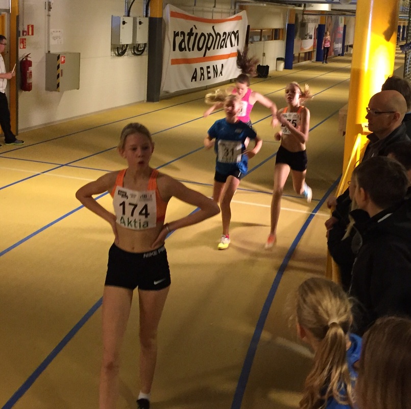Espoossa Ratiopharm Arenalla juostiin Itsenäisyyspäivänkisojen pitkät ratamatkat, 300m ja 800m. HSU:sta osallistui 12 urheilijaa ja he toivat kotiin 3 mitalia hyväntasoisesta kisasta! 300m:llä P8-sarjan voiton nappasi Eeli Rovasalo ajalla 53,17, yli 2 sekuntia ennen seuraavaa. 800m:llä hopealle juoksi M17-sarjassa Aleks Meidla omalla ennätysajallaan 2.12,19. N17-sarjassa Emma Simberg juoksi ensimmäisen erän ylivoimaiseen voittoon ja sijoittui lopulta pronssille ajalla 2.31,06 parantaen viime kevään halliennätystään reilusti. M17-sarjassa juoksi myös Jesper Jääskeläinen komeat ennätyslukemat 2.18,98. N17-sarjaan osallistui Emman lisäksi Ida Forsstén ja Linnea Parviainen. Linnean aika oli ennätys 2.46,96 ja Ida juoksi 3.08,37. T14-sarjassa Tia Palmunen, Vilma Rönkä ja Mette Martikainen juoksivat kaikki reilusti omia ennätyksiä. Tian aika oli 2.44,31, Vilman 2.46,25 ja Metten 3.00,11. Myös T12-sarjassa rikottiin ennätyksiä urakalla. Emma Rovasalo vastasi kovimmasta ennätysparannuksesta kun juoksi 2.41,35 jolla ennätys parani 12 sekuntia. Emma oli lopputuloksissa hienosti 8. Annika Parviainen ja Laila Lehtinen kävivät keskenään kamppailua oman eränsä kärkisijoista. Laila oli lopussa vahvempi ja tuli maaliin aikaan 2.53,24, Annika heti perässään aikaan 2.53,89. "Tämä oli hyvä kisa mittailla omaa kuntoa ja kokeilla rajoja ilman paineita", sanoo valmentaja Vonne (Yvonn Lindholm). "Olen todella tyytyväinen tuloksiin ja urheilijoiden rohkeisiin suorituksiin. Monta kerta kuuluttaja sai kuuluttaa että HSU:n juoksija oli kärjessä." |