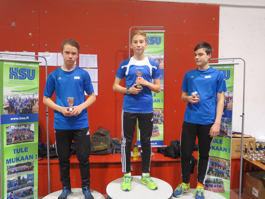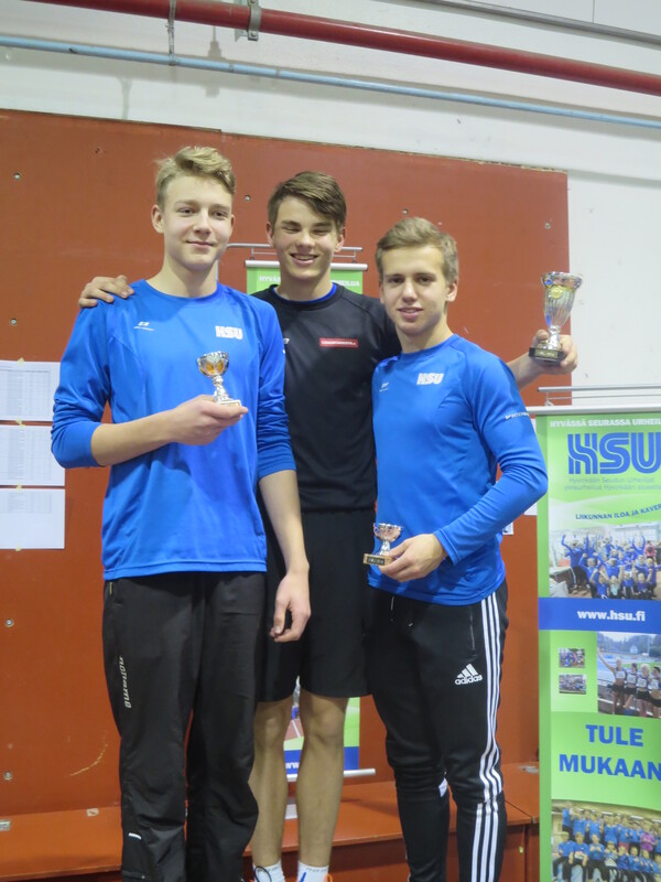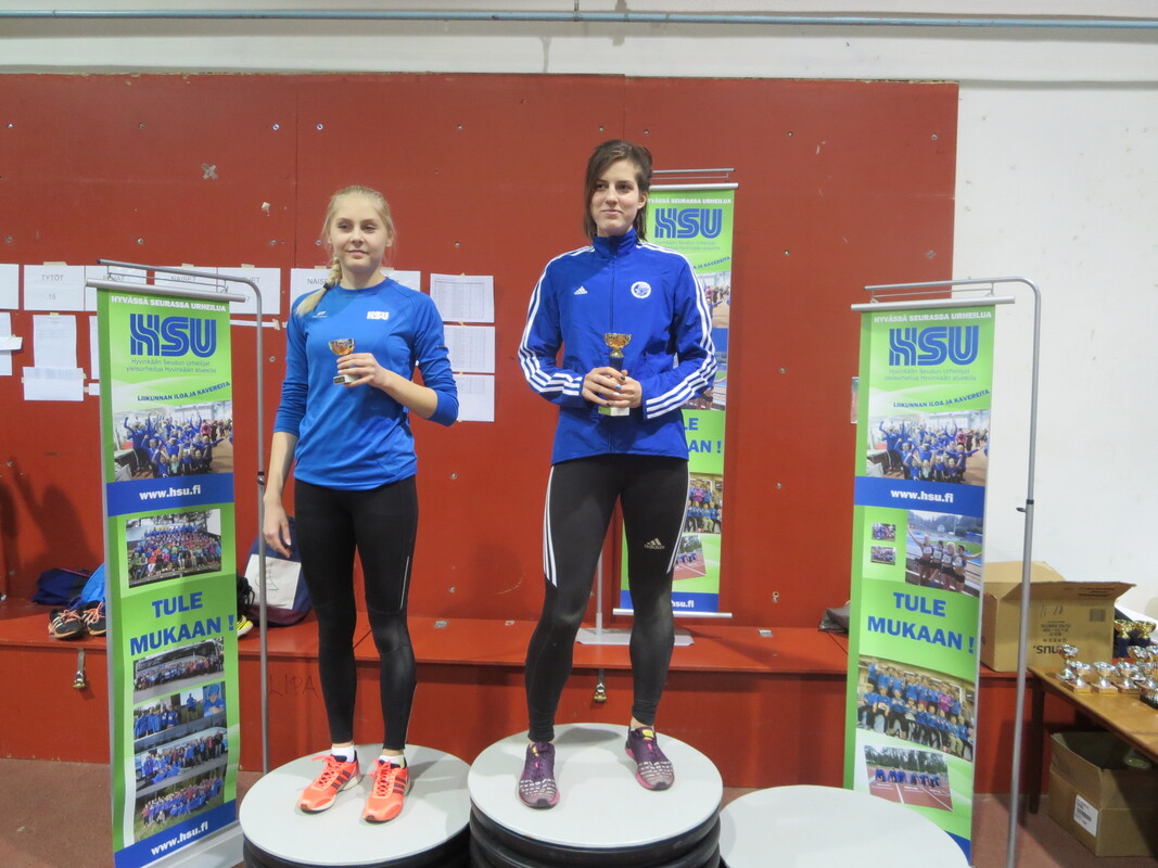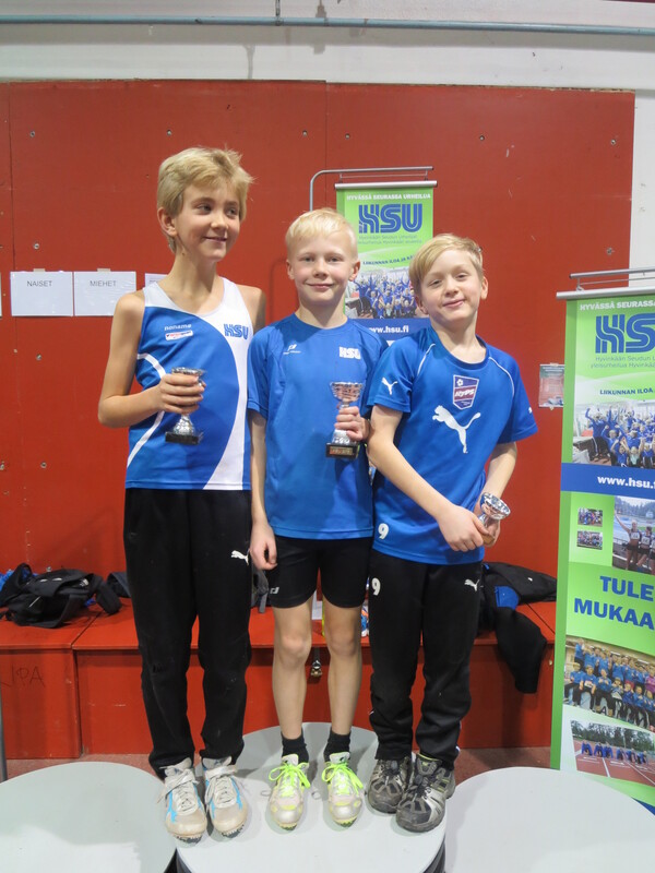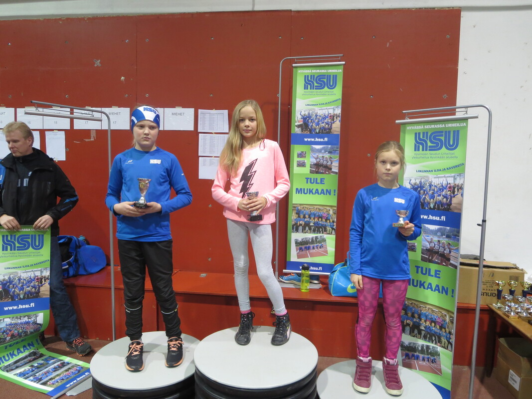 Viime talvena Hyvinkään seudun Urheilijoiden kehittämä Hyvinkään Hyppysprintit-kilpailu sai sunnuntaina 13.12. jatkoa kun noin 80 urheilijaa kilpailivat Wanhalla Areenalla sprintticupissa, seipäässä ja kolmiloikassa. Osallistujia oli jopa 16 eri seurasta ja iltapäivän aikana nähtiin yhteensä noin 150 lajisuoritusta. Sprintticupissa juostaan kaksi kertaa; lentävä 20m sekä 50m, josta lentävälle 30m otetaan lisäksi erillisaika. Voittaja selviää kolmen ajan yhteisaikojen perusteella. Kilpailu toimii myös loistavana tilaisuutena testata omaa nopeutta, kun kilpailija saa kolmen eri matkan ajat itselleen. Testityyppiset juoksukilpailut ovat tarkoitetut sekä lapsille että aikuisille ja siihen voi osallistua myös muiden lajin harrastajia. Hyvinkään nopeimman titteli meni tänä vuonna HSU:n Marcus Kytölälle, joka juoksi lentävä 20m aikaan 2,11 ja 50m aikaan 6,01 josta lentävä 30m 3,23 tehden yhteisajan 11,35. Toiseksi nopein oli seurakaveri Teemu Mustonen M17-sarjassa ajalla 11,65 (2,15 6,21 3,29) ja kolmanneksi myös HSU:n Jermu Tarkiainen tuloksella 11,81 (2,21 6,24 3,36). Naisista nopein oli T15-sarjan Kiia Jullenmaa Porin Yleisurheilusta ajalla 12,70 (2,39 6,70 3,61). Toiseksi ja kolmanneksi nopeimmat ajat juoksivat HSU:n Maria Kytölä tuloksella 12,72 (2,34 6,79 3,59) ja Tanja Sorvari tuloksella 12,92 (2,46 6,76 3,70). 13-sarjan nopein poika oli Keravan Urheilijoiden Oskari Jacobsson ajalla 12,98 ja nopein tyttö oli HSU:n Tia Palmunen ajalla 13,57. P11-sarjassa voiton vei HSU:n Miko Koskelainen tuloksella 13,94 ja T11-sarjassa jaetun ykkössijan nappasivat Sjundeå IF:n tytöt Carla Liukkonen ja Noomi Malmgren tasatuloksella 14,03. Päivän kovimmat suoritukset nähtiin kuitenkin seipäässä. Marcus Kytölä onnistui kotihallissaan kahdesti kohentamaan halliennätystään lukemiin 420. Tuloksellaan Marcus on 15-vuotiaiden kaikkien aikojen hallitilastossa kolmantena. Samoin HSU:ta edustava Jermu Tarkiainen kohensi omaa halliennätystään 20 cm:llä tulokseen 370. Kolmanneksi hyppäsi Toijalan Vauhdin Joni Uolamo tuloksella 350. Naisten seipään voiton vei Maria Kytölä tuloksella 340. T15-sarjassa käytiin tiukkaa kamppailua, kun Kiia Jullenmaa Porin Yleisurheilijoista hyppäsi 340 (Kiian halliennätys 353) ja HSU:n Siiri Saalo 330 (halliennätys 335). HSU:n aikuisurheilija Jani Rouvinen koski toista kertaa elämässään seipääseen ja vei miesten sarjan voiton tuloksella 250. N17-sarjan seipään voittoon hyppäsi HSU:n Hanna-Mari Saalo tuloksella 260. Upeita seivästuloksia nähtiin myös nuoremmissa sarjoissa. HSU:n Laila Lehtinen vei T13-sarjan voiton uudella ennätyksellään 250. Myös toiseksi hypänneen seurakaverin Emma Rovasalon tulos 240 on erittäin hyvä. P11-sarjassa voitti Aatu Sihvonen Karhulan Katajaisista tuloksella 210. Paras HSU:lainen oli kolmanneksi hypännyt Miko Koskelainen ennätystuloksellaan 180. T11-sarjassa Vanessa Lindberg Riihimäen Kiskosta voitti tuloksella 240. Vanessan tulos on myös kaikkien aikojen hallitilastojen 15. paras omassa sarjassaan. HSU:n Elsa Mattila oli toinen ennätyksellään 180. Kolmiloikassa pisimmälle ponnisti P15-sarjassa HSU:n Aapo Nieminen upealla ennätyksellään 11,35. Miesten sarjan voitti Riihimäen Kiskon aikuisurheilija Seppo Saarela tuloksella 9,47. Toisena oli Jani Rouvinen tuloksella 9,06. P11 Miko Koskelainen 9,28 P13-sarjassa voiton vei Kenttä Urheilijat 58 edustavaa Oliver Westerlund 9,45 kantaneella hypyllä. HSU:sta parhaan tuloksen teki Eeli Vuola ensimmäisessä kolmiloikkakisassaan hypättyään 9,44 jääden vain sentin voittotuloksesta. Naisista pisimmälle loikkasi T15-sarjan Erin Karjalahti Nurmijärven Yleisurheilusta tuloksella 10,39. HSU:n Vilma Rönkä oli samassa sarjassa toisena halliennätystuloksellaan 9,96. N17-sarjassa Emma Calculli Tapanilan Erästä loikkasi voittoon tuloksella 9,98 ja Ida Forsstén HSU:sta oli toinen ennätyksellään 9,71. T13-sarjassa Nurmijärven Yleisurheilun Jemina Saari voitti tuloksella 9,58 ennen HSU:n Emma Rovasaloa joka hyppäsi ennätysloikkansa 9,06. 11-tytöissä Keskiuudenmaan Yleisurheilun Liina Tervo voitti hypättyään 9,32 ja HSU:st paras oli kolmanneksi sijoittunut Netta Jakonen ennätyksellään 8,46. Seuraavan kerran HSU järjestää Wanha Areenalla Uudenmaan piirin avoimet vauhdittomien hyppyjen mestaruuskilpailut 6.1. ja kauden toiset Hyppysprintit järjestetään 31.1.