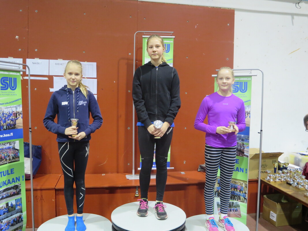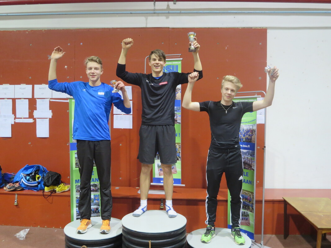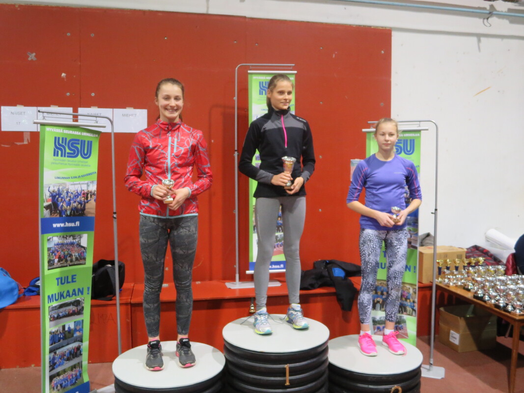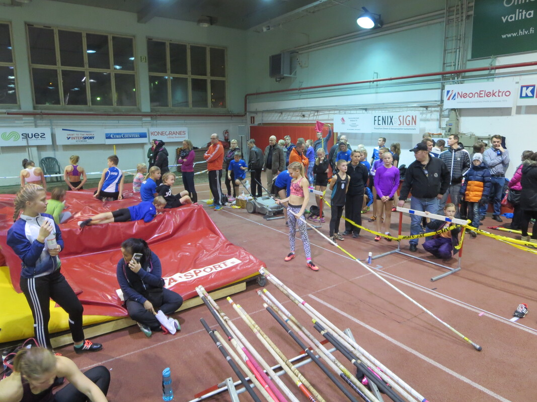 Viime talvena Hyvinkään seudun Urheilijoiden kehittämä Hyvinkään Hyppysprintit-kilpailu sai sunnuntaina 13.12. jatkoa kun noin 80 urheilijaa kilpailivat Wanhalla Areenalla sprintticupissa, seipäässä ja kolmiloikassa. Osallistujia oli jopa 16 eri seurasta ja iltapäivän aikana nähtiin yhteensä noin 150 lajisuoritusta. Sprintticupissa juostaan kaksi kertaa; lentävä 20m sekä 50m, josta lentävälle 30m otetaan lisäksi erillisaika. Voittaja selviää kolmen ajan yhteisaikojen perusteella. Kilpailu toimii myös loistavana tilaisuutena testata omaa nopeutta, kun kilpailija saa kolmen eri matkan ajat itselleen. Testityyppiset juoksukilpailut ovat tarkoitetut sekä lapsille että aikuisille ja siihen voi osallistua myös muiden lajin harrastajia. Hyvinkään nopeimman titteli meni tänä vuonna HSU:n Marcus Kytölälle, joka juoksi lentävä 20m aikaan 2,11 ja 50m aikaan 6,01 josta lentävä 30m 3,23 tehden yhteisajan 11,35. Toiseksi nopein oli seurakaveri Teemu Mustonen M17-sarjassa ajalla 11,65 (2,15 6,21 3,29) ja kolmanneksi myös HSU:n Jermu Tarkiainen tuloksella 11,81 (2,21 6,24 3,36). Naisista nopein oli T15-sarjan Kiia Jullenmaa Porin Yleisurheilusta ajalla 12,70 (2,39 6,70 3,61). Toiseksi ja kolmanneksi nopeimmat ajat juoksivat HSU:n Maria Kytölä tuloksella 12,72 (2,34 6,79 3,59) ja Tanja Sorvari tuloksella 12,92 (2,46 6,76 3,70). 13-sarjan nopein poika oli Keravan Urheilijoiden Oskari Jacobsson ajalla 12,98 ja nopein tyttö oli HSU:n Tia Palmunen ajalla 13,57. P11-sarjassa voiton vei HSU:n Miko Koskelainen tuloksella 13,94 ja T11-sarjassa jaetun ykkössijan nappasivat Sjundeå IF:n tytöt Carla Liukkonen ja Noomi Malmgren tasatuloksella 14,03. Päivän kovimmat suoritukset nähtiin kuitenkin seipäässä. Marcus Kytölä onnistui kotihallissaan kahdesti kohentamaan halliennätystään lukemiin 420. Tuloksellaan Marcus on 15-vuotiaiden kaikkien aikojen hallitilastossa kolmantena. Samoin HSU:ta edustava Jermu Tarkiainen kohensi omaa halliennätystään 20 cm:llä tulokseen 370. Kolmanneksi hyppäsi Toijalan Vauhdin Joni Uolamo tuloksella 350. Naisten seipään voiton vei Maria Kytölä tuloksella 340. T15-sarjassa käytiin tiukkaa kamppailua, kun Kiia Jullenmaa Porin Yleisurheilijoista hyppäsi 340 (Kiian halliennätys 353) ja HSU:n Siiri Saalo 330 (halliennätys 335). HSU:n aikuisurheilija Jani Rouvinen koski toista kertaa elämässään seipääseen ja vei miesten sarjan voiton tuloksella 250. N17-sarjan seipään voittoon hyppäsi HSU:n Hanna-Mari Saalo tuloksella 260. Upeita seivästuloksia nähtiin myös nuoremmissa sarjoissa. HSU:n Laila Lehtinen vei T13-sarjan voiton uudella ennätyksellään 250. Myös toiseksi hypänneen seurakaverin Emma Rovasalon tulos 240 on erittäin hyvä. P11-sarjassa voitti Aatu Sihvonen Karhulan Katajaisista tuloksella 210. Paras HSU:lainen oli kolmanneksi hypännyt Miko Koskelainen ennätystuloksellaan 180. T11-sarjassa Vanessa Lindberg Riihimäen Kiskosta voitti tuloksella 240. Vanessan tulos on myös kaikkien aikojen hallitilastojen 15. paras omassa sarjassaan. HSU:n Elsa Mattila oli toinen ennätyksellään 180. Kolmiloikassa pisimmälle ponnisti P15-sarjassa HSU:n Aapo Nieminen upealla ennätyksellään 11,35. Miesten sarjan voitti Riihimäen Kiskon aikuisurheilija Seppo Saarela tuloksella 9,47. Toisena oli Jani Rouvinen tuloksella 9,06. P11 Miko Koskelainen 9,28 P13-sarjassa voiton vei Kenttä Urheilijat 58 edustavaa Oliver Westerlund 9,45 kantaneella hypyllä. HSU:sta parhaan tuloksen teki Eeli Vuola ensimmäisessä kolmiloikkakisassaan hypättyään 9,44 jääden vain sentin voittotuloksesta. Naisista pisimmälle loikkasi T15-sarjan Erin Karjalahti Nurmijärven Yleisurheilusta tuloksella 10,39. HSU:n Vilma Rönkä oli samassa sarjassa toisena halliennätystuloksellaan 9,96. N17-sarjassa Emma Calculli Tapanilan Erästä loikkasi voittoon tuloksella 9,98 ja Ida Forsstén HSU:sta oli toinen ennätyksellään 9,71. T13-sarjassa Nurmijärven Yleisurheilun Jemina Saari voitti tuloksella 9,58 ennen HSU:n Emma Rovasaloa joka hyppäsi ennätysloikkansa 9,06. 11-tytöissä Keskiuudenmaan Yleisurheilun Liina Tervo voitti hypättyään 9,32 ja HSU:st paras oli kolmanneksi sijoittunut Netta Jakonen ennätyksellään 8,46. Seuraavan kerran HSU järjestää Wanha Areenalla Uudenmaan piirin avoimet vauhdittomien hyppyjen mestaruuskilpailut 6.1. ja kauden toiset Hyppysprintit järjestetään 31.1.