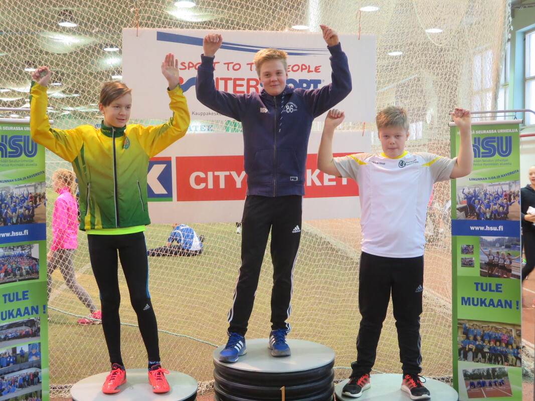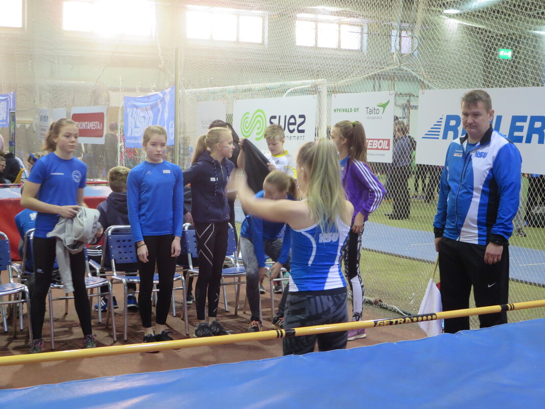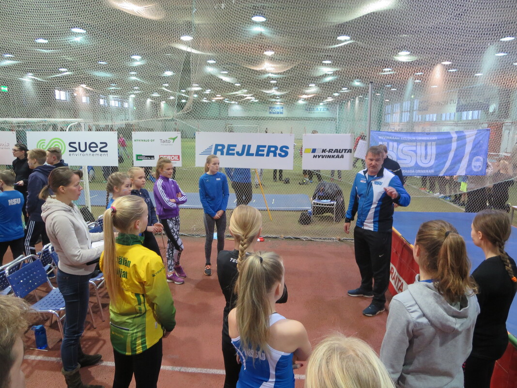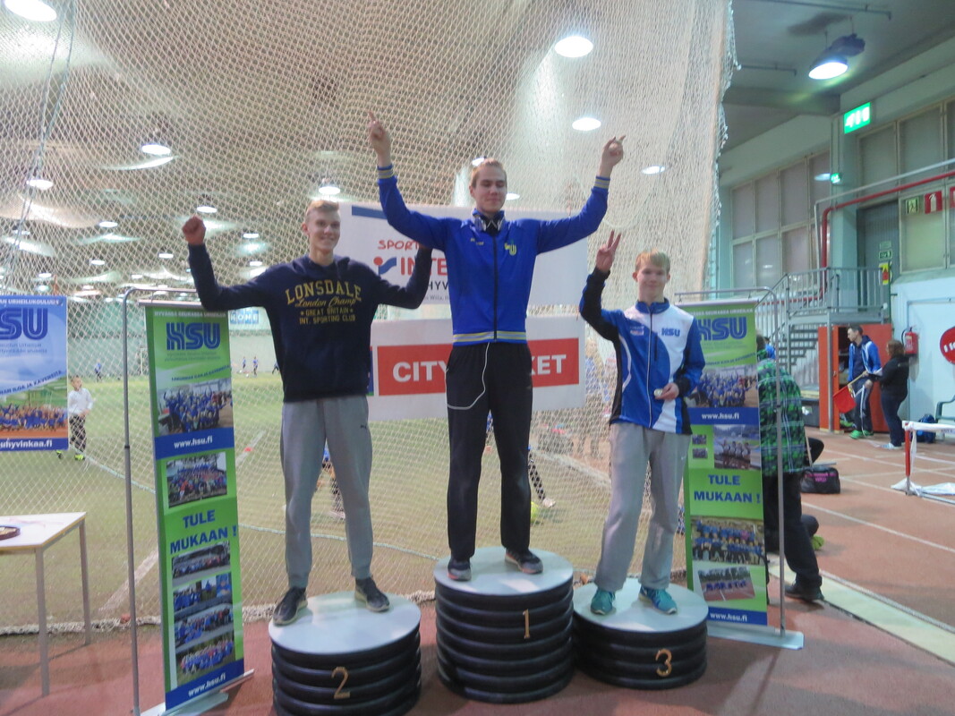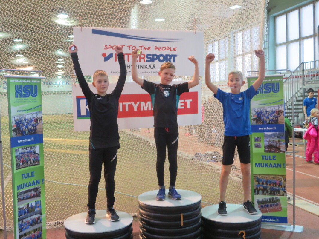 Loppiaisena Hyvinkään Wanhalla Areenalla ratkottiin vauhdittomien hyppyjen piirinmestaruudet moniotteluiden muodossa. Kisoihin osallistui kymmenkunta seuraa ja lähemmäksi 200 urheilijaa. Sarjoissa 9-10 kilpailtiin 2-ottelussa (pituus ja kolmiloikka) ja 11-sarjasta ylöspäin aina aikuisiin asti 3-ottelussa (korkeus, pituus ja kolmiloikka). Näitä vauhdittomia hyppylajeja yhdistää se, että ponnistus tulee tapahtua molemmat jalat maassa. Jokavuotinen kilpailu on osoiittaunutut aina yhtä hauskaksi tapahtumaksi ja on lisäksi oiva tilanne testata miten syksyn voima- ja kimmoisuusharjoittelu on onnistunut. HSU:n urheilijat nappasivat 19 mitalia, mikä oli piirin seuroista eniten. Lisäksi useampi urheilija jäi niukasti mitalien ulkopuolelle ja käytännössä kaikki tekivät upeita henkilökohtaisia ennätyssuorituksia, vähintään jossakin lajissa. Kovia tuloksia nähtiin kuitenkin muidenkin seurojen toimesta. Naisten sarjassa voitto meni Riihimäen kiskon moukarinheittäjänä tunnetulle Inga Linnalle pistein 2023 (tulokset 126, 255 ja 733). Miesten sarjan voitti Länsi-Uudenmaan Urheilijoiden Kari Pohjola pistein 3049 (142, 290, 849). HSU:n aikuisurheilija Erno Kelo otti pronssia pistein 2380. Päivän kovimman pistesaaliksen keräsi kuitenkin M19-sarjassa Karin seurakaveri Mikke Jaakkola tuloksella 3599 (157, 300, 901). Samassa sarjassa HSU:n Teemu Mustonen oli kolmas pistein 2892. N19-sarjassa Tanja Sorvari oli kolmas pistein 1549. M17-sarjassa HSU otti kolmoisvoiton Ilmari Niirasen (2543p) Aapo Niemisen (2254p) ja Niilo Kantoniemen (1833p) toimesta, ja N17-sarjassa Iida Tolonen sijoittui hienosti myös kolmanneksi (1412p). Myös P15-sarjassa tuli kaksi mitalia HSU:lle kun Marcus Kytölä voitti (2997p) ennen Jermu Tarkiaista (2740p), ja P14-sarjassa Eeli Vuola otti hopeaa (1343p). P13-sarjassa Juho Kantoniemi nappasi voiton (943p), ja Arno Toivola sijoittui P11-sarjassa kolmanneksi (596p). Poikien 2-otteluiden voitot menivät molemmat HSU:lle; 10-vuotiaiden Olavi Haloselle (290p) ja 9-vuotiaiden Eeli Rovasalolle (241p), jossa Asla Piri otti vielä hopeankin HSU:lle (227p). T15-sarjassa Nelli Talvitie (1398p) ja T14-sarjassa Riina Virtanen (1065p) ottivat molemmat hopeaa. Emma Rovasalo voitti T13-sarjan (1018p), ja T9-sarjassa Neela Jakonen nappasi pronssin (231p). Viime vuoteen verrattuna HSU sai nyt 5 mitalia enemmän, eli voi sanoa että uusi vuosi on ainakin alkanut lupaavasti. Kilpailutkin sujuivat oikein hyvin tilan käytön suhteen tehtyjen parannusten myötä ja hyvä fiilis vallitsi hallissa toimitsijoidenkin kesken. Seuraavan kerran halli laitetaan kisakuntoon taas 31.1. kun toiset Hyvinkään Hyppysprintit järjestetään. |
