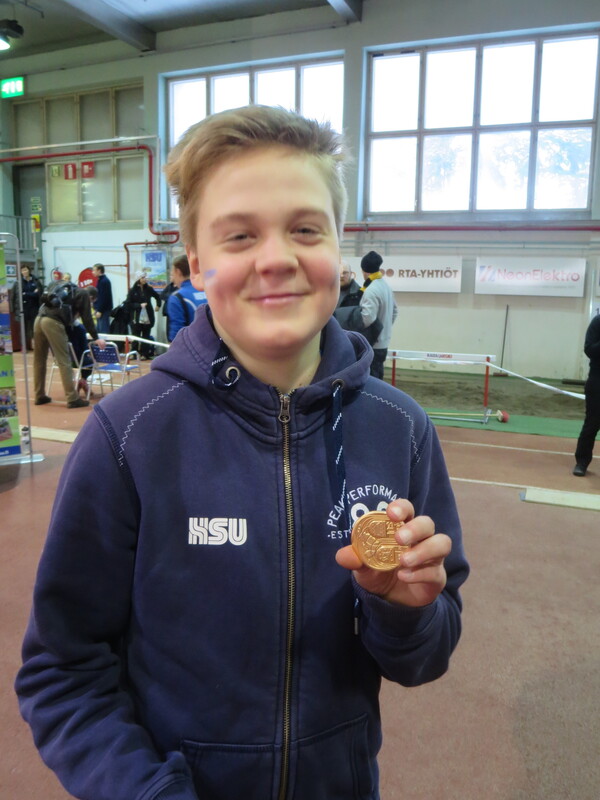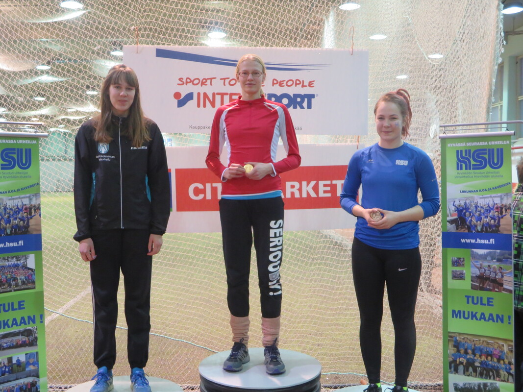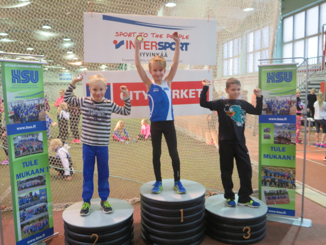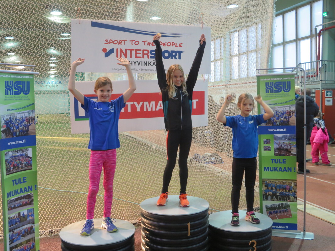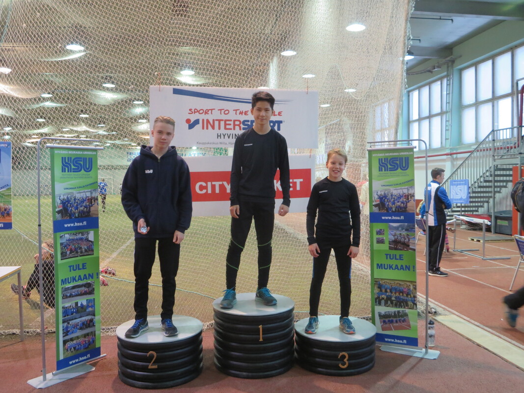 Loppiaisena Hyvinkään Wanhalla Areenalla ratkottiin vauhdittomien hyppyjen piirinmestaruudet moniotteluiden muodossa. Kisoihin osallistui kymmenkunta seuraa ja lähemmäksi 200 urheilijaa. Sarjoissa 9-10 kilpailtiin 2-ottelussa (pituus ja kolmiloikka) ja 11-sarjasta ylöspäin aina aikuisiin asti 3-ottelussa (korkeus, pituus ja kolmiloikka). Näitä vauhdittomia hyppylajeja yhdistää se, että ponnistus tulee tapahtua molemmat jalat maassa. Jokavuotinen kilpailu on osoiittaunutut aina yhtä hauskaksi tapahtumaksi ja on lisäksi oiva tilanne testata miten syksyn voima- ja kimmoisuusharjoittelu on onnistunut. HSU:n urheilijat nappasivat 19 mitalia, mikä oli piirin seuroista eniten. Lisäksi useampi urheilija jäi niukasti mitalien ulkopuolelle ja käytännössä kaikki tekivät upeita henkilökohtaisia ennätyssuorituksia, vähintään jossakin lajissa. Kovia tuloksia nähtiin kuitenkin muidenkin seurojen toimesta. Naisten sarjassa voitto meni Riihimäen kiskon moukarinheittäjänä tunnetulle Inga Linnalle pistein 2023 (tulokset 126, 255 ja 733). Miesten sarjan voitti Länsi-Uudenmaan Urheilijoiden Kari Pohjola pistein 3049 (142, 290, 849). HSU:n aikuisurheilija Erno Kelo otti pronssia pistein 2380. Päivän kovimman pistesaaliksen keräsi kuitenkin M19-sarjassa Karin seurakaveri Mikke Jaakkola tuloksella 3599 (157, 300, 901). Samassa sarjassa HSU:n Teemu Mustonen oli kolmas pistein 2892. N19-sarjassa Tanja Sorvari oli kolmas pistein 1549. M17-sarjassa HSU otti kolmoisvoiton Ilmari Niirasen (2543p) Aapo Niemisen (2254p) ja Niilo Kantoniemen (1833p) toimesta, ja N17-sarjassa Iida Tolonen sijoittui hienosti myös kolmanneksi (1412p). Myös P15-sarjassa tuli kaksi mitalia HSU:lle kun Marcus Kytölä voitti (2997p) ennen Jermu Tarkiaista (2740p), ja P14-sarjassa Eeli Vuola otti hopeaa (1343p). P13-sarjassa Juho Kantoniemi nappasi voiton (943p), ja Arno Toivola sijoittui P11-sarjassa kolmanneksi (596p). Poikien 2-otteluiden voitot menivät molemmat HSU:lle; 10-vuotiaiden Olavi Haloselle (290p) ja 9-vuotiaiden Eeli Rovasalolle (241p), jossa Asla Piri otti vielä hopeankin HSU:lle (227p). T15-sarjassa Nelli Talvitie (1398p) ja T14-sarjassa Riina Virtanen (1065p) ottivat molemmat hopeaa. Emma Rovasalo voitti T13-sarjan (1018p), ja T9-sarjassa Neela Jakonen nappasi pronssin (231p). Viime vuoteen verrattuna HSU sai nyt 5 mitalia enemmän, eli voi sanoa että uusi vuosi on ainakin alkanut lupaavasti. Kilpailutkin sujuivat oikein hyvin tilan käytön suhteen tehtyjen parannusten myötä ja hyvä fiilis vallitsi hallissa toimitsijoidenkin kesken. Seuraavan kerran halli laitetaan kisakuntoon taas 31.1. kun toiset Hyvinkään Hyppysprintit järjestetään. |