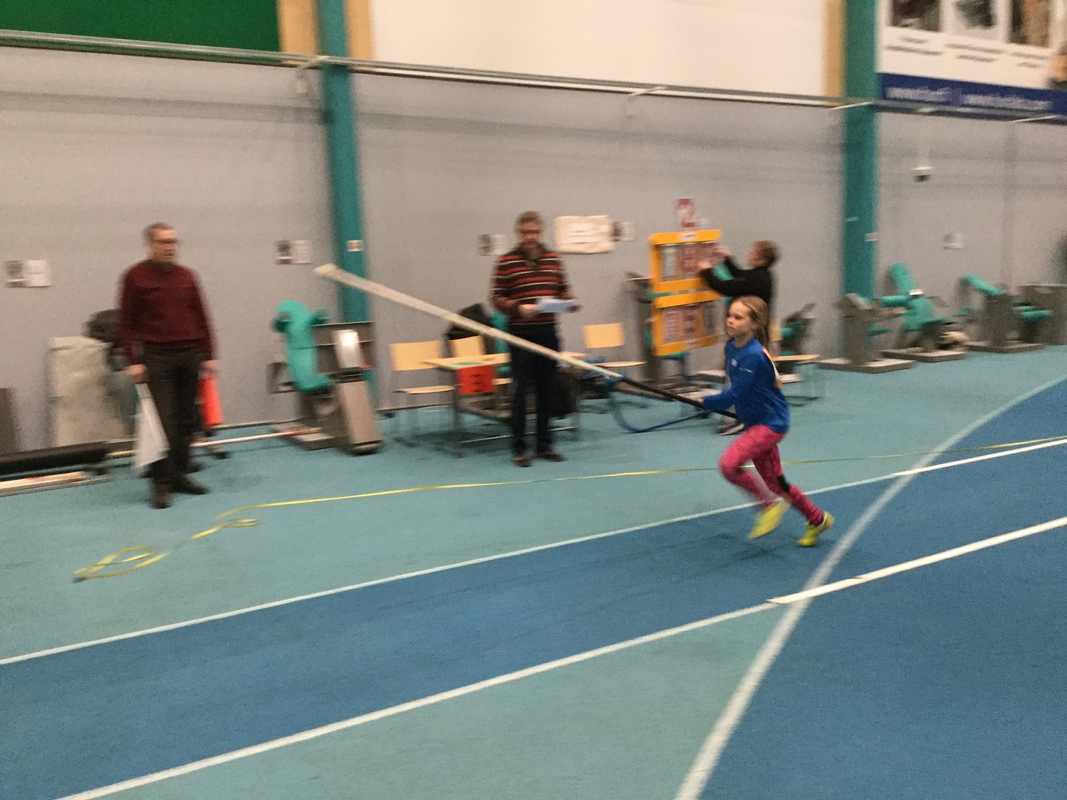 Isla nuorimpana pääsi ensimmäisenä aistimaan isomman kilpailun tuntumaa. Tekniikka oli hiottu kuntoon ja aloituskorkeus ylittyi hienosti. Kilpailussa edettiin 10cm korotuksin ja Isla pääsi yrittämään korkeutta 180, tänään se oli kuitenkin vielä liikaa ja tulokseksi kirjattiin 170. T11 sarjan avausvoitto kuitenkin Islalle.
