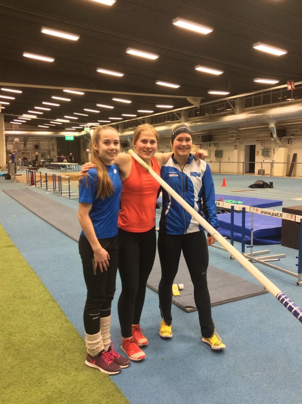 Viikonloppuna kisattiin Helsingin Liikuntamyllyssä ja Tampereen Pirkkahallissa! Varhain lauantaiaamuna 23.1. pari autollista HSU:laisia oli matkalla pääkaupunkiin HKV:n järjestämiin 200m karnevaaleille, jossa juostaan iästä riippumatta tilastoaikojen perusteella tasaisissa 3 minuutin välein lähtevissä erissä. Tapahtuma on vuosi vuodelta kerännyt yhä enemmän osallistujia, tänä vuonna jo lähemmäksi 300 juoksijaa. Miehistä nopein oli Nurmijärven Yleisurheilun Oskari Lehtonen ajalla 22,00 ja naisista Hangö IK:n Jonna Berghem ajalla 24,18 ennen Turun Urheiluliiton Nooralotta Neziriä (24,63). Ensimmäisenä radalle pääsi Ilmari Niiranen (16), joka erävoitollaan ajassa 26,08 paransi viime vuoden ennätysaikaansa jopa 1,22s! Seuraavassa erässä tuli HSU:lle kaksoisvoitto kun ensimmäistä kertaa virallisessa lajissa HSU:ta edustava nuorisopäällikkö Vonne (Yvonn Lindholm) paransi vuonna 2010 juostua halliennätystään 0,66s aikaan 28,34. Viereisellä radalla Vilma Rönkä (15) puristi kakkoseksi parantaen syksyllä juostua aikaansa yli puoli sekuntia tulokseen 29,24. Heti seuraavassa naisten erässä juoksi Nelli Talvitie (15) niin ikään oman halliennätyksensä 29,35. Noin tunnin päästä vuorossa oli Teemu Mustonen (18), joka vastasi kovimmasta HSU-tuloksesta näissä kisoissa. Teemu pinkoi ratakierroksen hurjaan halliennätysaikaan 24,10, ollessaan 112 miesosallistujan joukossa lopulta 27. nopein. Emma Simberg (15) juoksi seuraavassa erässä kovassa seurassa mm. suomenmestarin Kia Laisin kanssa, ja onnistui myös karistamaan halliennätyksestään yli puoli sekuntia! Seiväshyppääjät kokoontuivat taas iltapäivällä Pirkkahalliin kisaamaan. HSU:n edustajina kilpailussa olivat Iida Tolonen (16), Siiri Saalo (16) ja Maria Kytölä (19). Kaikki nuoret naiset hyppäsivät kilpailussa hienosti halliennätyksensä. Siiri ja Maria hyppäsivät molemmat 355, Maria voittaen naisten sarjan ja Siisi ollessaan N17-sarjassa toinen. Iida oli hienosti Siirin jälkeen kolmas, ja Iidan uudet ennätyslukemat kirjataan nyt 245. "Tästä on hyvä jatkaa ensi viikonlopun Hyvinkään omiin Hyppysrintteihin" kertoivat urheilijat kilpailun jälkeen. Sunnuntaina Liikuntamyllyssä NÅID:n kisoissa Ilmari Niiranen juoksi ensimmäistä kertaa M17-aidat, kellottaen 60m:n pätkän 9,37. Tanja Sorvari avasi kisakautensa juoksemalla 60m sileää aikaan 8,52. HSU onnitelee kaikkia ennätyksistä! |
