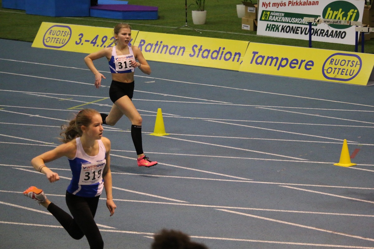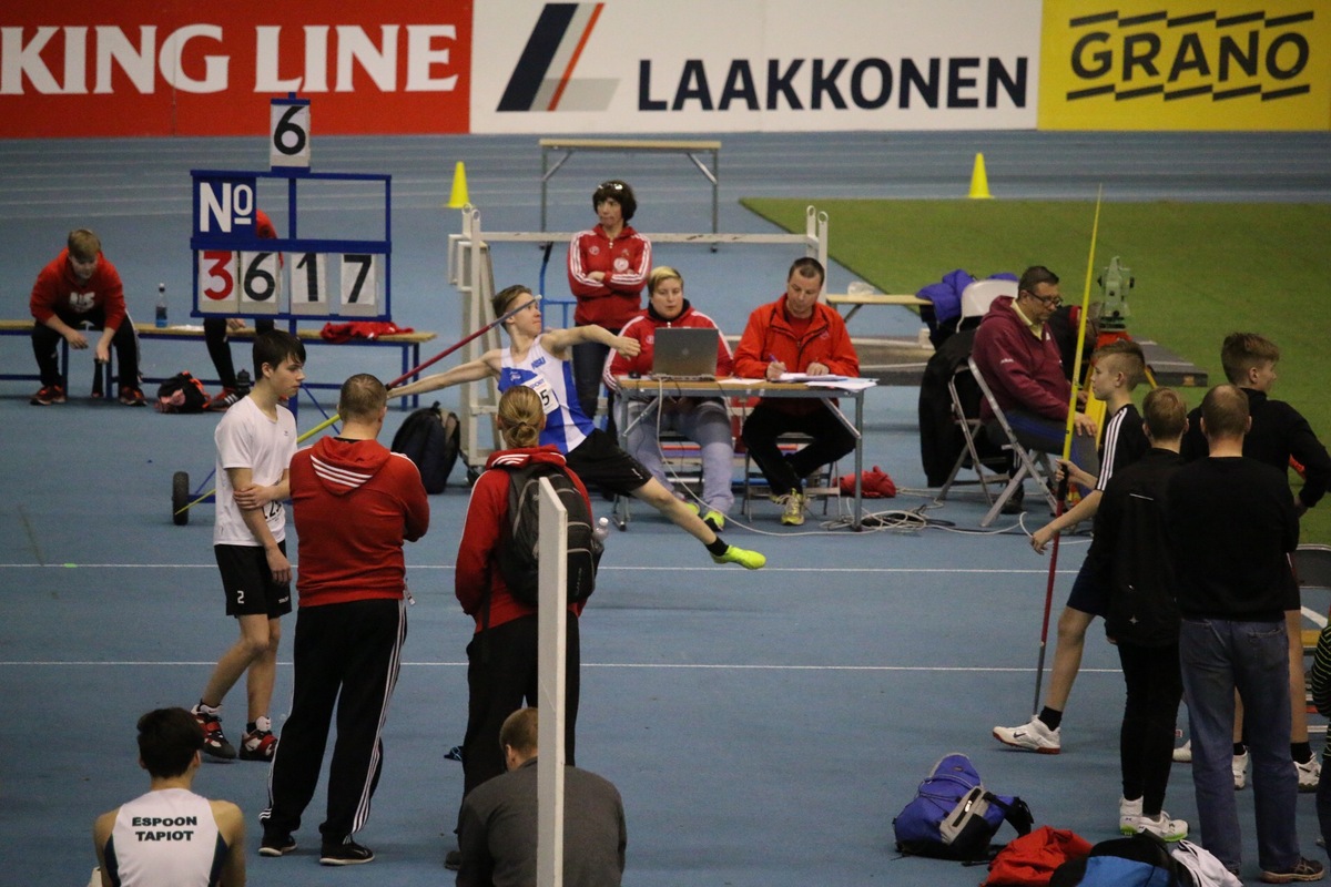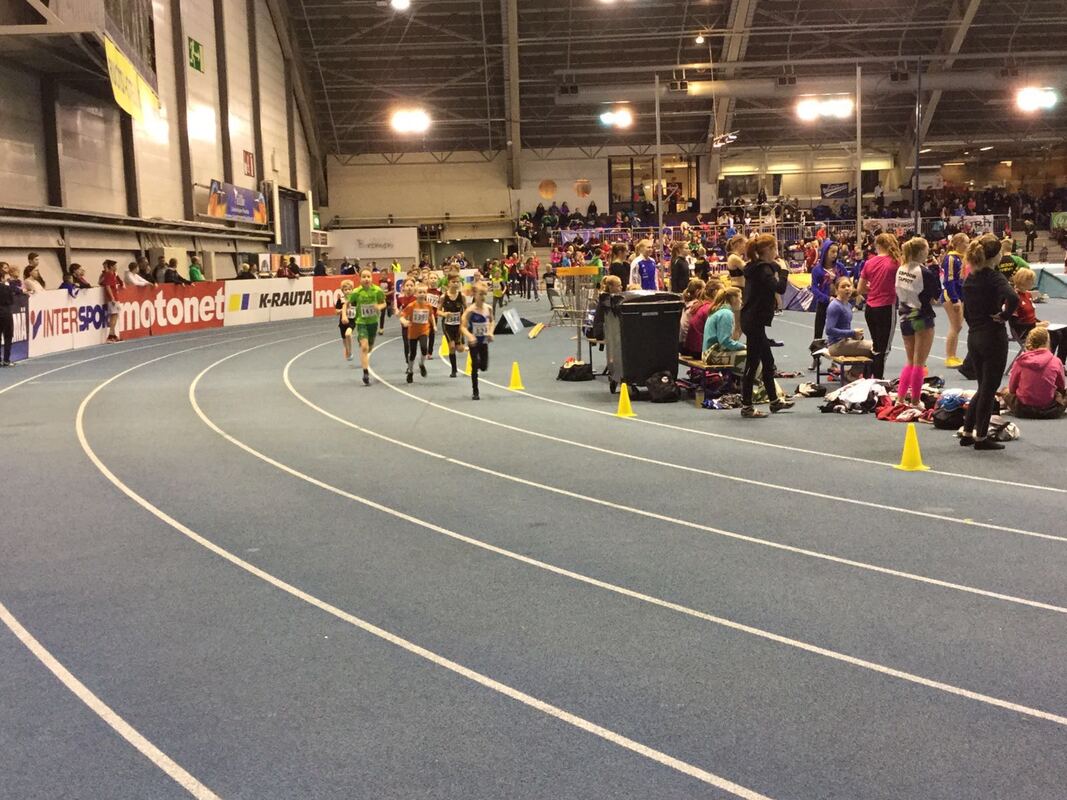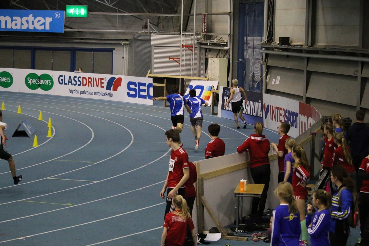 Marcus Kytölä taivutti TJIG-ennätyksen! Viikonloppuna 5-6.3. kilpailtiin hallikauden isoimmassa tapahtumassa, 10-15-vuotiaiden SM-kilpailuja vastaavassa Tampere Junior Indoor Games-kisoissa. Osallistujia oli valtava määrä, n. 1600 urheilijaa! HSU:sta osallitui 35 innokasta urheilijaa. Kovatasoisissa kisoissa nähtiin useampi Suomen ennätys sekä TJIG-ennätyksiä, joista yksi kirjattiin HSU:n Marcus Kytölälle seipäässä. Lauantai alkoi HSU:n osalta ennätysjuoksuilla pikamatkoilla, mm. T13-sarjassa Noora Hietala paransi 60m aikansa neljäsosasekunnilla aikaan 8,83 ja Kiia Brandes 35 sadasosalla aikaan 8,96. T14-sarjassa Anni Lähdemäki juoksi ennätyksensä 9,06 ja P14-sarjassa Eeli Vuola 8,33. Eeli hyppäsi myös ennätyksensä korkeudessa 142, ja oli hienosti 7. Noora ponnisti pituusfinaaliin 100 hyppääjän joukossa ja ennätyksensä 450. Laila Lehtinen sivusi ennätyksensä 4,31 ja oli 14. Myös Riina Virtanen hyppäsi T14-pituudessa 25 cm:llä ennätyksensä 459. P12-kiekkofinaalissa Arno Toivola heitti ennätyksensä 24,61 ja oli 8. Samaan aikaan P11-korkeudessa Miko Koskelainen hyppäsi upeasti kotimaisen kärkituloksen 135 ja nappasi kultamitalin! 60m finaalissa tuli lisäksi hopea ajalla 8,76. P10-sarjassa 8-vuotias Eeli Rovasalo alitti 10 sekunnin 60m:llä tilasto 6. tuloksella 9,78 ja pituudessakin tuli ennätys 3,65. Olavi Halonen selvitti tiensä pituuden finaaliin asti ja oli 8. tuloksella 3,87. Olavi oli myös kuulassa hienosti 8. ennätystyönnöllä 6,72. 13-vuotias Emma Rovasalo osallistui rohkeasti T15-seipääseen ja oli hienosti 7. sivuten ennätyksensä 280. Mitaliin tarvittiin 290. 800m:llä Tia Palmunen juoksi ennätyksensä 2.42,43 ja oli lopulta 10. T11-sarjassa Emilia Rouvinen ylitti 4m pituudessa ja oli uudella ennätyksellään 4,03 hienosti 15. 100 hyppääjästä. Isla Sokoff heitti kiekossa ennätyslukemat 17,17 ja jäi ainoastaan noin metrin finaalipaikasta ollessaan lopulta 12. Lauantain päätti jännittävät aitaviestit. T11-joukkue Venla Lähdemäki, Moona Virtanen, Isla Sokoff ja Emilia Rouvinen sijoittuivat upeasti 5:nneksi jääden mitalista noin puoli sekuntia. T13-joukkue Laila Lehtinen, Noora Hietala, Emma Rovasalo ja Netta Jakonen juoksivat 11. sijalle. Sunnuntaina oli aidattujen pikamatkojen vuoro. P15-sarjassa Marcus Kytölä heittäytyi sadasosan turvin voittoon kauden kärkiajalla sekä kaikkien aikojen 8. ajalla 8,43. Marcus hyppäsi myös iltamyöhään seipäässä kaikkien aikojen toiseksi TJIG-ennätyksellä 450, ja teki myös hyviä yrityksiä Suomen ennätyskorkeudesta 462. Miko Koskelainen juoksi P11-aidoissa hopealle kaikkien aikojen 6. ajalla 10,13. Miko hyppäsi vielä neljännen mitalinsa pituudessa upealla ennätyksellään 4,67 ollessaan 2. P10-sarjassa Eeli Rovasalo juoksi erävoittoon ja 9-vuotiaiden kärkituloksen ja kaikkien aikojen 10. ajan 12,34. T15-aidoissa Vilma Rönkä juoksi hienosti ennätyksensä 10,30 ja oli 12. T13-sarjassa Emma Rovasalo, Laila Lehtinen ja Noora Hietala tekivät kaikki hurjia ennätysparannuksia, Emma jopa 2 sekunnilla aikaan 10,93 ja heti kannoilla Laila 11,00 ja Noora 11,32. T11-aitoihin lähti jopa 12 erää. Lauantaina viesteissä hienosti sijoittuneet aiturit Venla, Isla ja Emilia vahvistuksena vielä Lotta Lamminen ja Aino Laitinen juoksivat kaikki ennätyksensä. Parhaan ajan teki Emilia Rouvinen 11,49, joka riitti 22. sijalle. Nelli Talvitie työnsi T15-kuulafinaalissa 6:nneksi tuloksella 11,29. Vasta tällä kaudella yleisurheilun aloittanut Heli Petrell ponnisti T15-kolmiloikassa hienosti 15. sijalle ennätyksellään 9,79. T14-korkeudessa Pihla Poikolainen ponnisti parhaan tuloksensa yli vuoteen 140 ja oli tiukassa kisassa lopulta 17. Seuraava ylitys olisi jo nostanut sijoitusta 10-parhaan joukkoon. P12-kuulassa Arno Toivola työnsi finaaliin ja oli 7. ennätyksellään 8,30. T11-kuulassa HSU:n tytöt kävivät kovaa keskinäistä kamppailua viimeisestä finaalipaikasta 50 työntäjän joukossa. Viimeisellä karsintatyönnöllä Aino Laitinen meni 3 cm:llä Emilia Rouvisen ohi ja oli lopulta 8. tuloksella 8,10 Emilian ollen 9. tuloksella 8,07. Molemmat työnsivät ennätyksensä. Iltapäivällä nuoremmat juoksivat 1000m ja vanhemmat 300m. T12-tonnilla Netta Jakonen juoksi erävoittoon ja paransi ennätystään yli 5 sekuntia aikaan 3.41,43. P10-sarjassa Eeli Rovasalo juoksi reiluun erävoittoon ja tilastoneloseksi ajalla 3.42,58 ja oli 13. P14-sarjassa Pyry Kalanen juoksi ensimmäisen 300m-juoksussaan ylivoimaiseen erävoittoon hyvällä ajalla 42,72 ja oli lopulta hienosti 12. Niin ikään Tia Palmunen oli 12. T14-sarjassa hyvällä ennätyksellään 45,46. Samassa sarjassa Annika Parviainen juoksi 13-vuotiaille vielä hieman vieraammalla matkalla kauden kärkituloksen ylipitkällä radalla 48,08. Joka kerta jännitystä ja draamaa tarjoaviin 4x100m viesteihin HSU osallistui neljällä joukkueella. P15-joukkue Marcus Kytölä, Pyry Kalanen, Eeli Vuola ja Elmo Niemi tekivät hyvän juoksun 51,03, vaikka vaihdot menivät vähemmän hyvin, ja olivat 9. T15-sarjassa oli kaksi joukkuetta; Elina Sokka, Anni Lähdemäki, Pihla Poikolainen ja Riina Virtanen juoksivat 55,87, sekä Heli Petrell, Nelli Talvitie, Vilma Rönkä ja Tia Palmunen 54,46. T13-joukkue Laila Lehtinen, Emma Rovasalo, Noora Hietala ja Annika Parviainen sai unelmalähdön ja johtivat vielä ylivoimaisesti oman eränsä takakaarteeseen asti. Parin epäonnistuneen vaihdon seurauksena tytöt tulivat maaliin eränsä kolmansina ajalla 56,17 mutta ylsivät lopulta kuitenkin sijalle 8. Päivän viimeisenä lajina käynnistyi vielä keihäänheitto. Eeli Vuola heitti 14-sarjassa finaaliin hienolla ennätyksellään 36,37 ja oli 8. Pyry Kalanen heitti myös ennätyksensä 31,58 ja oli 13. Poikia ennen T14-keihäässä heittänyt Venla Toivola teki ennätyksensä 27,70 ja oli 14. Kaikki tulokset: |