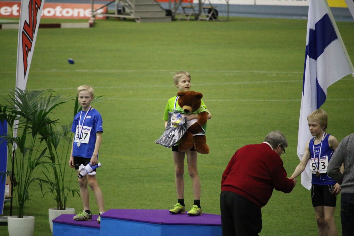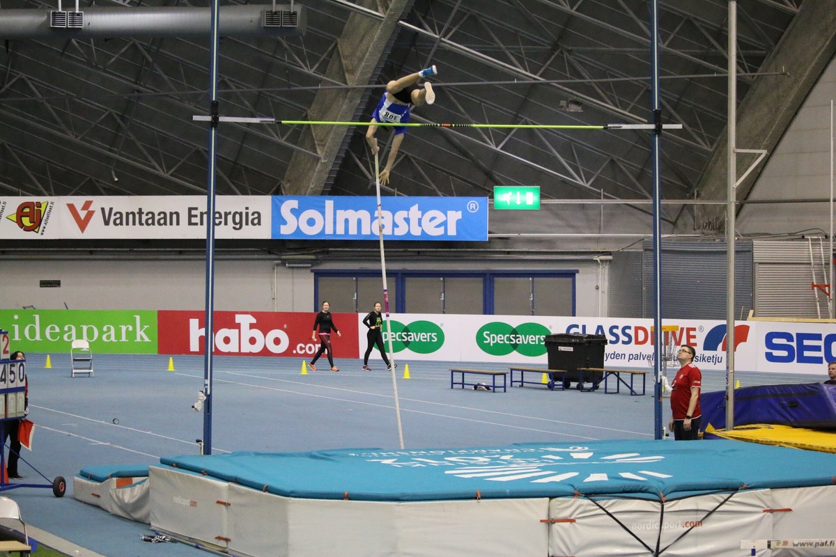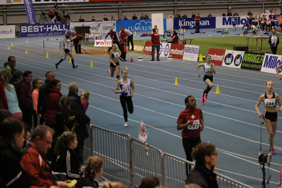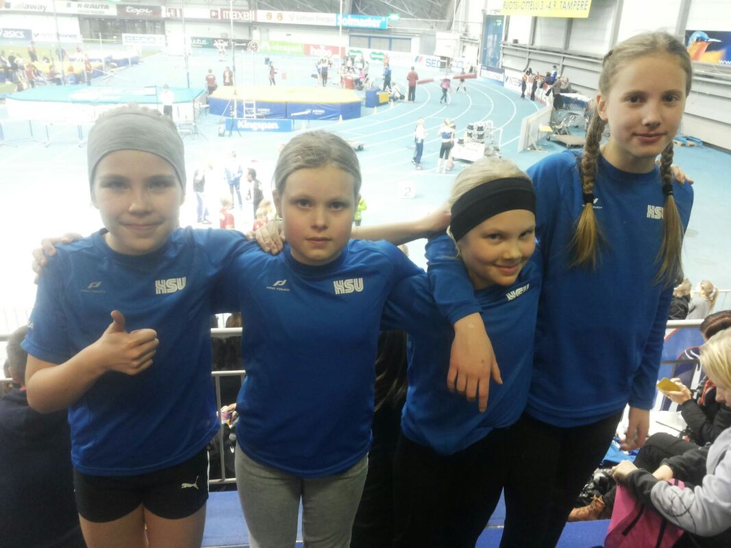 Marcus Kytölä taivutti TJIG-ennätyksen! Viikonloppuna 5-6.3. kilpailtiin hallikauden isoimmassa tapahtumassa, 10-15-vuotiaiden SM-kilpailuja vastaavassa Tampere Junior Indoor Games-kisoissa. Osallistujia oli valtava määrä, n. 1600 urheilijaa! HSU:sta osallitui 35 innokasta urheilijaa. Kovatasoisissa kisoissa nähtiin useampi Suomen ennätys sekä TJIG-ennätyksiä, joista yksi kirjattiin HSU:n Marcus Kytölälle seipäässä. Lauantai alkoi HSU:n osalta ennätysjuoksuilla pikamatkoilla, mm. T13-sarjassa Noora Hietala paransi 60m aikansa neljäsosasekunnilla aikaan 8,83 ja Kiia Brandes 35 sadasosalla aikaan 8,96. T14-sarjassa Anni Lähdemäki juoksi ennätyksensä 9,06 ja P14-sarjassa Eeli Vuola 8,33. Eeli hyppäsi myös ennätyksensä korkeudessa 142, ja oli hienosti 7. Noora ponnisti pituusfinaaliin 100 hyppääjän joukossa ja ennätyksensä 450. Laila Lehtinen sivusi ennätyksensä 4,31 ja oli 14. Myös Riina Virtanen hyppäsi T14-pituudessa 25 cm:llä ennätyksensä 459. P12-kiekkofinaalissa Arno Toivola heitti ennätyksensä 24,61 ja oli 8. Samaan aikaan P11-korkeudessa Miko Koskelainen hyppäsi upeasti kotimaisen kärkituloksen 135 ja nappasi kultamitalin! 60m finaalissa tuli lisäksi hopea ajalla 8,76. P10-sarjassa 8-vuotias Eeli Rovasalo alitti 10 sekunnin 60m:llä tilasto 6. tuloksella 9,78 ja pituudessakin tuli ennätys 3,65. Olavi Halonen selvitti tiensä pituuden finaaliin asti ja oli 8. tuloksella 3,87. Olavi oli myös kuulassa hienosti 8. ennätystyönnöllä 6,72. 13-vuotias Emma Rovasalo osallistui rohkeasti T15-seipääseen ja oli hienosti 7. sivuten ennätyksensä 280. Mitaliin tarvittiin 290. 800m:llä Tia Palmunen juoksi ennätyksensä 2.42,43 ja oli lopulta 10. T11-sarjassa Emilia Rouvinen ylitti 4m pituudessa ja oli uudella ennätyksellään 4,03 hienosti 15. 100 hyppääjästä. Isla Sokoff heitti kiekossa ennätyslukemat 17,17 ja jäi ainoastaan noin metrin finaalipaikasta ollessaan lopulta 12. Lauantain päätti jännittävät aitaviestit. T11-joukkue Venla Lähdemäki, Moona Virtanen, Isla Sokoff ja Emilia Rouvinen sijoittuivat upeasti 5:nneksi jääden mitalista noin puoli sekuntia. T13-joukkue Laila Lehtinen, Noora Hietala, Emma Rovasalo ja Netta Jakonen juoksivat 11. sijalle. Sunnuntaina oli aidattujen pikamatkojen vuoro. P15-sarjassa Marcus Kytölä heittäytyi sadasosan turvin voittoon kauden kärkiajalla sekä kaikkien aikojen 8. ajalla 8,43. Marcus hyppäsi myös iltamyöhään seipäässä kaikkien aikojen toiseksi TJIG-ennätyksellä 450, ja teki myös hyviä yrityksiä Suomen ennätyskorkeudesta 462. Miko Koskelainen juoksi P11-aidoissa hopealle kaikkien aikojen 6. ajalla 10,13. Miko hyppäsi vielä neljännen mitalinsa pituudessa upealla ennätyksellään 4,67 ollessaan 2. P10-sarjassa Eeli Rovasalo juoksi erävoittoon ja 9-vuotiaiden kärkituloksen ja kaikkien aikojen 10. ajan 12,34. T15-aidoissa Vilma Rönkä juoksi hienosti ennätyksensä 10,30 ja oli 12. T13-sarjassa Emma Rovasalo, Laila Lehtinen ja Noora Hietala tekivät kaikki hurjia ennätysparannuksia, Emma jopa 2 sekunnilla aikaan 10,93 ja heti kannoilla Laila 11,00 ja Noora 11,32. T11-aitoihin lähti jopa 12 erää. Lauantaina viesteissä hienosti sijoittuneet aiturit Venla, Isla ja Emilia vahvistuksena vielä Lotta Lamminen ja Aino Laitinen juoksivat kaikki ennätyksensä. Parhaan ajan teki Emilia Rouvinen 11,49, joka riitti 22. sijalle. Nelli Talvitie työnsi T15-kuulafinaalissa 6:nneksi tuloksella 11,29. Vasta tällä kaudella yleisurheilun aloittanut Heli Petrell ponnisti T15-kolmiloikassa hienosti 15. sijalle ennätyksellään 9,79. T14-korkeudessa Pihla Poikolainen ponnisti parhaan tuloksensa yli vuoteen 140 ja oli tiukassa kisassa lopulta 17. Seuraava ylitys olisi jo nostanut sijoitusta 10-parhaan joukkoon. P12-kuulassa Arno Toivola työnsi finaaliin ja oli 7. ennätyksellään 8,30. T11-kuulassa HSU:n tytöt kävivät kovaa keskinäistä kamppailua viimeisestä finaalipaikasta 50 työntäjän joukossa. Viimeisellä karsintatyönnöllä Aino Laitinen meni 3 cm:llä Emilia Rouvisen ohi ja oli lopulta 8. tuloksella 8,10 Emilian ollen 9. tuloksella 8,07. Molemmat työnsivät ennätyksensä. Iltapäivällä nuoremmat juoksivat 1000m ja vanhemmat 300m. T12-tonnilla Netta Jakonen juoksi erävoittoon ja paransi ennätystään yli 5 sekuntia aikaan 3.41,43. P10-sarjassa Eeli Rovasalo juoksi reiluun erävoittoon ja tilastoneloseksi ajalla 3.42,58 ja oli 13. P14-sarjassa Pyry Kalanen juoksi ensimmäisen 300m-juoksussaan ylivoimaiseen erävoittoon hyvällä ajalla 42,72 ja oli lopulta hienosti 12. Niin ikään Tia Palmunen oli 12. T14-sarjassa hyvällä ennätyksellään 45,46. Samassa sarjassa Annika Parviainen juoksi 13-vuotiaille vielä hieman vieraammalla matkalla kauden kärkituloksen ylipitkällä radalla 48,08. Joka kerta jännitystä ja draamaa tarjoaviin 4x100m viesteihin HSU osallistui neljällä joukkueella. P15-joukkue Marcus Kytölä, Pyry Kalanen, Eeli Vuola ja Elmo Niemi tekivät hyvän juoksun 51,03, vaikka vaihdot menivät vähemmän hyvin, ja olivat 9. T15-sarjassa oli kaksi joukkuetta; Elina Sokka, Anni Lähdemäki, Pihla Poikolainen ja Riina Virtanen juoksivat 55,87, sekä Heli Petrell, Nelli Talvitie, Vilma Rönkä ja Tia Palmunen 54,46. T13-joukkue Laila Lehtinen, Emma Rovasalo, Noora Hietala ja Annika Parviainen sai unelmalähdön ja johtivat vielä ylivoimaisesti oman eränsä takakaarteeseen asti. Parin epäonnistuneen vaihdon seurauksena tytöt tulivat maaliin eränsä kolmansina ajalla 56,17 mutta ylsivät lopulta kuitenkin sijalle 8. Päivän viimeisenä lajina käynnistyi vielä keihäänheitto. Eeli Vuola heitti 14-sarjassa finaaliin hienolla ennätyksellään 36,37 ja oli 8. Pyry Kalanen heitti myös ennätyksensä 31,58 ja oli 13. Poikia ennen T14-keihäässä heittänyt Venla Toivola teki ennätyksensä 27,70 ja oli 14. Kaikki tulokset: |