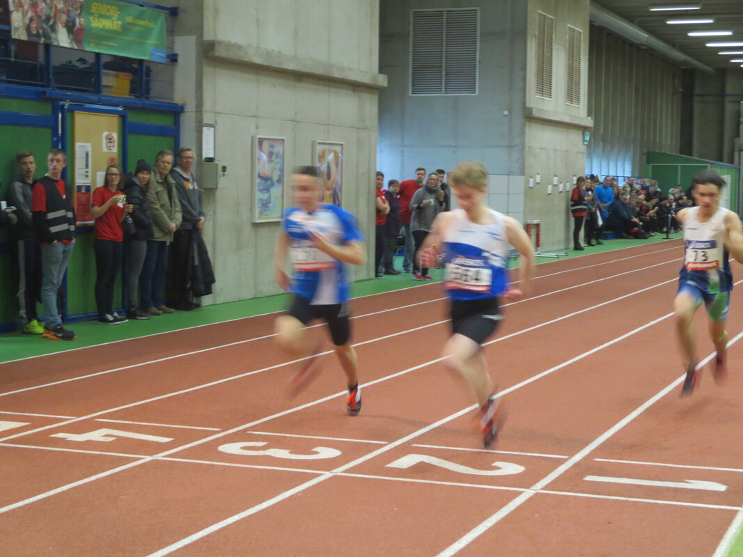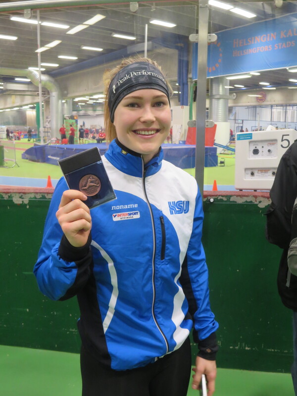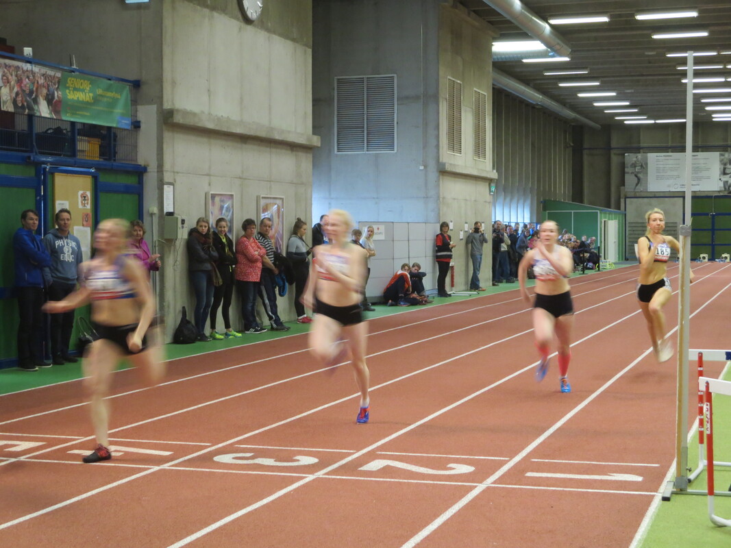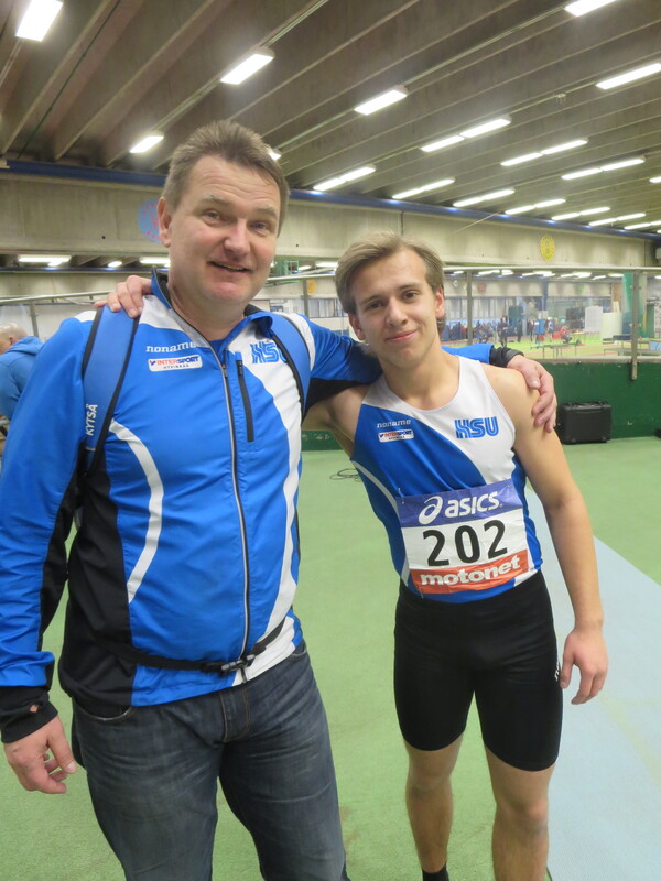 Nuorten 17/22v-vuotiaiden SM-halleissa ensimmäinen kilpailupäivä toi mitalin ja tukun ennätyksiä HSU:n urheilijoille Lauantaina kilpailun aloitti viisi HSU:n urheilijaa. N19 sarjassa Maria Kytölä uusi viimevuotisen mitalin seiväshypyssä. Kovatasoisessa kilpailussa Maria hyppäsi hienosti ennätyksensä 371, joka toi riemukkaasti pronssia. N19 Tanja Sorvari pinkaisi 60m alkueräjuoksussa lähelle ennätystään ajalla 8,56. M19 sarjassa Teemu Mustonen jäi pituudessa tulokseen 599, mutta hypyt olisivat onnistuessaan kantaneet mitaltaan huomattavasti kauemmaksi. M17 Aleks Meidla juoksi ennakkoluulottomasti 800m ja teki uuden upean ennätyksensä 2,08,94. Samassa sarjassa Jesper Jääskeläinen juoksi 60m ennätyksensä 7,77. "Hienoa porukka ja hyviä tuloksia, jonka tietysti kruunasi tämän kauden ensimmäinen SM-mitali. Huomenna kilpailee kaikkiaan kahdeksan HSU:n urheilijaa, joten jännitettävää riittää" toteaa mukana ollut valmentaja Markku Kytölä. Sunnuntaina HSU:n urheilijat jatkoivat hienoja esityksiä tehden urakalla uusia ennätyksiä. N17 sarjassa Emma Simberg juoksi uuden halliennätyksen 300m matkalla 43,57, Iida Tolonen hyppäsi seipäässä uuden ennätyksensä 281, parantaen ennätystä peräti 26cm. M17 60m aidoissa Ilmari Niiranen juoksi 9,73. Valitettavasti Ilmarin uusi ennätys aidoissa jäi vielä odottelemaan, johtuen viimeisen aidan kompuroinnista. Maria Kytölä jäi myös pituudessa tulokseen 516. Tanja Sorvari juoksi 200m aikaan 28,46, joka on Tanjan uusi hallienätys. Teemu Mustonen juoksi saman matkan ennätysaikaan 23,96. M17 sarjalaiset kisasivat hienosti 300m juoksussa. Molempien uudet halliennätykset kirjataan Aleks Meidla (39,08) ja Jesper Jääskeläinen (41,21). Onnittelut kaikille hienoista SM-kisasuorituksista! |