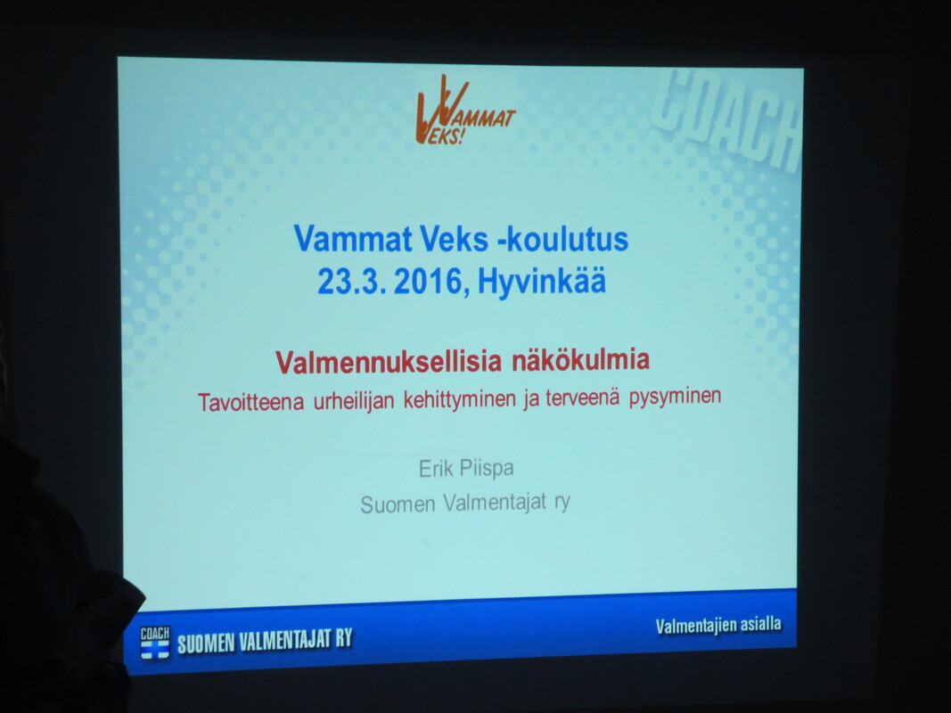 UKK-Instituutin ja Suomen Valmentajat ry:n koulutustapahtuma! Hyvinkään Seudun Urheilijat tarjosi UKK-Instituutin ja Suomen Valmentajat ry:n kouluttajien pitämän Vammat Veks-koulutuksen seuran urheilijoille ja aikuisjäsenille. Koulutus sisälsi luennon ja kahden tunnin käytännön harjoittelun. Aiheena oli alaraajavammat (polvi ja nilkka) sekä yleisesti urheilijoiden harjoittelun, ravinnon ja levon merkitys mahdollisiin loukkantumisiin. Koulutuksen teoriaosuudessa käytiin läpi urheilijan jokapäiväiseen elämään liittyvistä tekijöistä, mitkä lisäävät riskiä loukkaantua. Samoin korostettiin vammoja ennaltaehkäisevän harjoittelun merkitystä osana urheilijan kokonaisharjoittelua. Käytännön osuudessa käytiin läpi testiliikkeitä, joilla voidaan arvioida urheilijan mahdollista loukkaantumisriskiä. Lisäksi opeteltiin harjoitteita, joilla on vammoja ennalta ehkäisevää vaikutusta. "Seuran valmennuksessa on viime aikoina hyvin huomioitu palauttavan harjoittelun, liikkuvuuden sekä monipuolisen harjoittelun merkitys urheilijan kehittymisen kannalta. Koulutuksen tärkein tavoite olikin saada se sama viesti vanhemmille ja urheilijoille." Svea Kytölä kertoo. "Viesti meni hyvin perille! Peräti 56 urheilijaa ja urheilijoiden vanhempaa osallistui koulutukseen. Koulutus oli ehdottomasti "rahan arvoinen". Syksyllä järjestämme toisen koulutuksen jossa käsitellään laajemmin selän alueen vammautumisriskejä " Taustaa aiheeseen! Vuosittain sattuu noin 350 000 liikuntavammaa. Tutkimukset ovat tuoneet viime vuosina paljon uutta tietoa vammojen ehkäisymahdollisuuksista. Vammojen ehkäisy lähtee liikkeelle riskitekijöiden ja syntymekanismien tuntemisesta. Kun nämä tekijät ovat selvillä, on mahdollista valita sopivat menetelmät vammojen ehkäisyä varten. Monet vammat, etenkin polvi-, nilkka- ja selkävammat, uusiutuvat herkästi. Tästä syystä vammojen ennaltaehkäisy olisi erittäin tärkeää jo lapsuus- ja nuoruusvuosien liikuntaharrastusten parissa. Monipuolinen, järkevästi rytmitetty harjoittelu sekä yleisten liiketaitojen ja kehonhallinnan kehittäminen ovat avainasemassa vammojen ehkäisyssä. On hyvä tunnistaa ja ennakoida urheilusta, ympäristöstä ja urheilijan yksilöllisistä ominaisuuksista esille nousevia riskejä ja puuttua niihin ajoissa. Systemaattinen liikuntavammojen ehkäisy lisää terveitä harjoittelu- ja kilpailupäiviä urheilu-uralle sekä luo vankempaa pohjaa elinikäiselle liikunta-aktiivisuudelle ja -myönteisyydelle. |