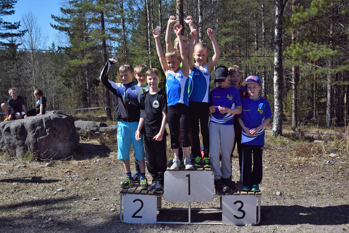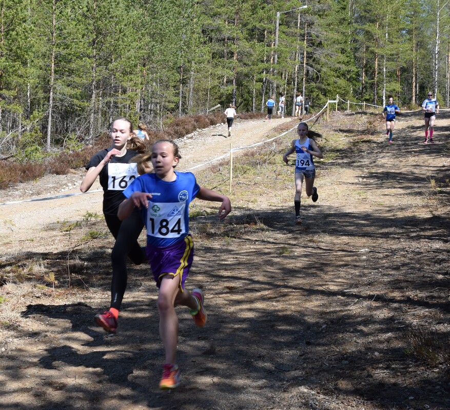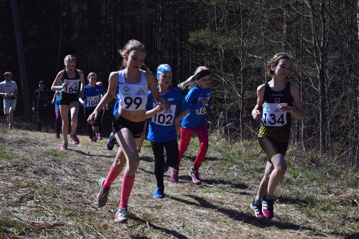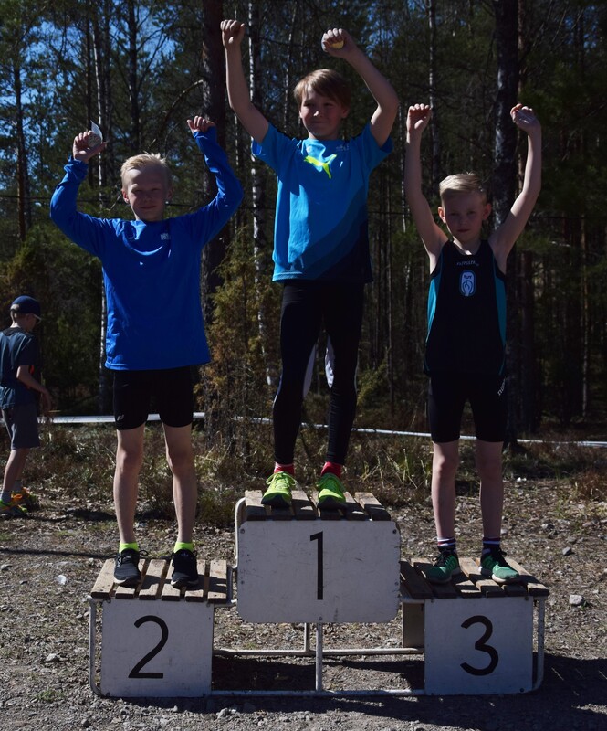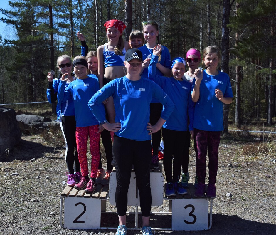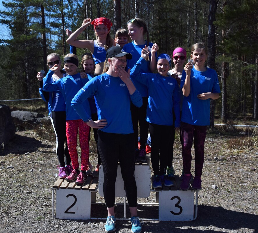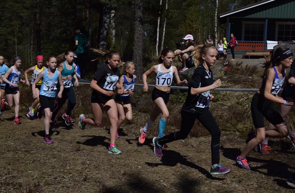 Tänään, helatorstaina ratkottii UUDY:n piirinmestaruudet maastojuoksussa Lohjan Pusulan maastoissa. Kisoissa juostiin 1 km (P/T9), 1,5 km (P/T10-11), 2 km (P/T12-13) ja 3 km (P/T14-15) vaihtelevassa mäkisessä maastossa. HSU-bussi lähti kisoihin täynnä innokkaita juoksijoita ja HSU-henkeä! Jälleen oli kasassa yli 50 henkinen joukko, joka lähti taistelemaan mitaleista ja hyvistä sijoituksista niin henkilökohtaisessa kisassa kuin joukkuekisassakin. HSU oli kisojen ylivoimaisesti suurin seura, ja mitaleitakin tuli valtava määrä! Mitaleille ylsivät P9-sarjassa Eeli Rovasalo ja Felix Honkaniemi kaksoivoitollaan. Anton Sokoff jäi alle sekunnin pronssista, mutta täydensi vielä poikien kultajoukkueen. T9-sarjassa joukkue Ruth Toivola, Neela Jakonen ja Iisa Aramo ottivat joukkuepronssia. P11-sarjassa Miko Koskelainen juoksi hopealle ja P12-sarjassa Luka Tukiainen pronssille. Topias Talvitie ja Niklas Leppänen täydensivät P12-joukkeen ja yhdessä pojat saivat vielä joukkuehopeaa. T11-sarjassa yli puolet juoksijoista oli HSU:sta, yhteensä 12 tyttöä. Aino halonen jäi niukasti pronssista, mutta yhteensä 9 tyttöä saivat kiivetä palkintopallille kun HSU:lle tuli kaikki joukkuemitalit. Kultajoukkueessa juoksivat Ainon lisäksi Sinja Liuha ja Adalia Hurme. Hopeajoukkueessa juoksivat Moona Virtanen, Isla Sokoff ja Laura Ylönen, sekä pronssijoukkueessa Inka Poikolainen, Iita Immonen ja Elina Pussinen. Vielä neljänneksi joukkuekilpailuissa sijoittuivat Emilia Rouvinen, Lotta Lamminen ja Mira Martikainen. T12-sarjassa Netta Jakonen taisteli hienosti pronssimitalin itselleen tiukassa kärkikamppailussa. Pronssin nappasi myös Elias Pasanen P13-sarjassa. Joukkuekilpailussa Elias palkittiin Justus Talvitien ja Juho Kantoniemen kanssa lisäksi kultamitalilla. T13-sarjassa Emma Rovasalo ratkaisi hopeamitalin itselleen kovalla loppukirillään. Joukkuemitaleitakin tuli kaksi, kun Emma yhdessä Noora Hietalan ja Annika Parviaisen kanssa saivat kultaa ja toinen joukkue; Jasmin Mäki-Otava, Kea Kuusisto ja Katri Ollikainen, sai pronssia. T14-sarjassa Tia Palmunen sijoittui parhaiten, niukasti mitalien ulkopuolelle neljänneksi. Joukkuehopea tuli kuitenkin Tialle yhdessä Mette Martikaisen ja Emmi Pasasen kanssa. P15-sarjassa Lauri Aaltonen kamppaili pitkään kärjessä ja palkittiin hopeamitalilla. Kultamitali tuli taas T15-sarjan yhtä tiukassa kärkikamppailussa Heli Petrellin toimesta, kun viimeisessä ylämäessä ratkaisi voiton itselleen. Vilma Röngän ja Nelli Talvitien kanssa tytöt ottivat myös joukkuekultaa. Eilen kisattiin myös Pääkaupunkiseudun keihäscupin 3. osakilpailussa. HSU:n Jere Nyfors heitti hienosti ennätyksensä 600g:n keihäällä, ja vihdoin myös pidemmälle kuin 400g:n keihäällä, lukemiin 44,73 ja oli P15-sarjassa 3. Onnittelut kaikille upeista suorituksista! Kaikki tulokset: |