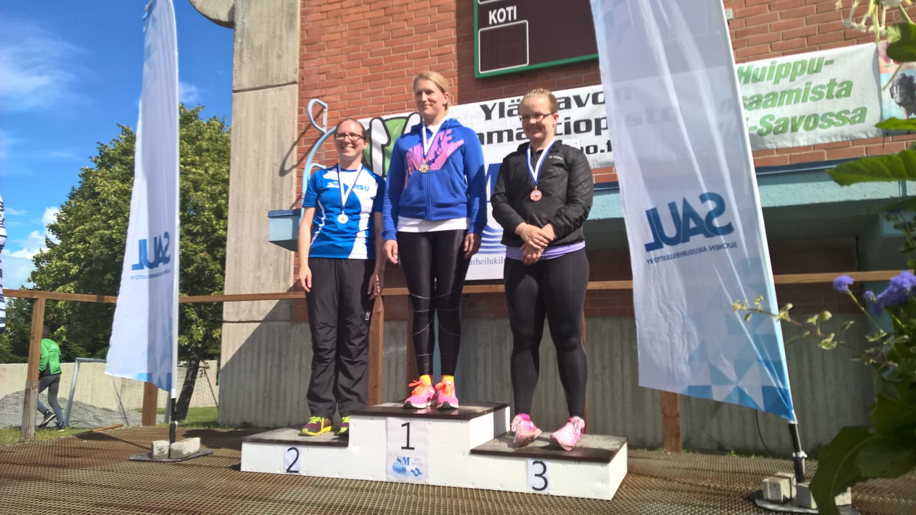 Svea Kytölä, Mirva Jääskeläinen ja Hanna Tarkiainen palkinnoille Aikuisurheiluliiton SM-kilpailut pidettiin Sankariniemen kentällä Iisalmessa. Aikuisurheilu on yli 30-vuotiaiden kunto- ja kilpaurheilua. Aikuisurheilun lajit ja säännöt ovat pääpiirteissään samat kuin junioreilla tai yleisessä sarjassa. Urheilijat jaetaan ikänsä mukaan sarjoihin, joita on viiden vuoden välein. Yleisurheilun pariin pitkän tauon jälkeen palannut Mirva Jääskeläinen (N30) otti ensimmäisiin aikuisurheilun SM-kilpailuihin rohkeasti neljä lajia. Niissä syntyi hienot omat ennätykset, jotka huipentuivat kiekonheiton hopeamitaliin 24,98 kantaneella heitolla. ”Viikonloppu oli kokonaisuudessaan hieno kokemus. Kisoissa oli hyvä fiilis ja kaikki kannustivat toisiaan. Kolmen kisapäivän aikana ehdin myös seurata kisoja katsomon puolelta ja hienoja suorituksia tehtiin koko ajan joka puolella kenttää. Omista tuloksistani olen erityisen tyytyväinen painonheiton tulokseen: ennätys parani yli puoli metriä. Ensikosketus lajiin oli minulla vasta kesäkuussa, eikä treeneissä noin pitkälle ole lentänyt” kertoo Mirva. Hanna Tarkiaisen (N40) hyvin mennyt kausi sai jatkoa 200 metrin pikajuoksussa. Kovassa kisassa tulikin hopeasija uudella omalla ennätysajalla 29,75. ”Juoksutekniikassani riittää vielä paljon hiomista, kilpaileminen on kivaa - nautin siitä kun voin mitellä itseäni vastaan ja rikkoa ennätyksiäni.” kertoo Hanna. Svea Kytölä (N40) heitti keihäässä hopeatuloksen 36,16 ja seiväshypyssä kultaa tuloksella 210. ”On hienoa että meidän aikuisurheilijat uskaltavat käydä isoissa kisoissa. Ensi kesänä kisat ovat lähempänä, Lohjalla. Silloin suuremmalla joukolla mukaan,” toteaa Hsu:n valmentaja Svea Kytölä. HSU:ssa on toiminut aikuisten oma yleisurheiluryhmä tammikuusta 2015 alkaen. Toiminta on tämän jälkeen kasvanut ja saanut mukaansa niin uusia lajin harrastajia kuin entisiä urheilijoita. Tällä hetkellä toiminnassa on mukana noin 20 aikuista, harjoituksia järjestetään Hyvinkään yleisurheilukentällä kaksi kertaa viikossa valmentaja Henna Koskelaisen johdolla. Kaikille avoimet epäviralliset kisat, Hyvinkään kaupunginmestaruuskilpailut järjestetään keskiviikkona 14.9. alkaen klo 17.30. Urheilupuisto, Urheilukatu 19. Lajit: 100m, pituus, kuula, 1000m, 4-ottelu. Kilpailu käydään ottelumaisesti laji kerrallaan, vaihtoehtoisesti hyppy/heitto käynnissä samaan aikaan ilmoittautuneiden määrästä riippuen. Kilpailija voi osallistua kaikkiin lajeihin (= 4-ottelu) tai jättää osallistumatta johonkin lajiin. Kenttälajeissa 3 suoritusta. Sarjat: M/N, M/N40, M/N50, M/N60. Kisat käydään hyvässä hengessä rennolla fiiliksellä, kaikki mukaan! Kilpailuun osallistuminen ei vaadi lisenssiä.