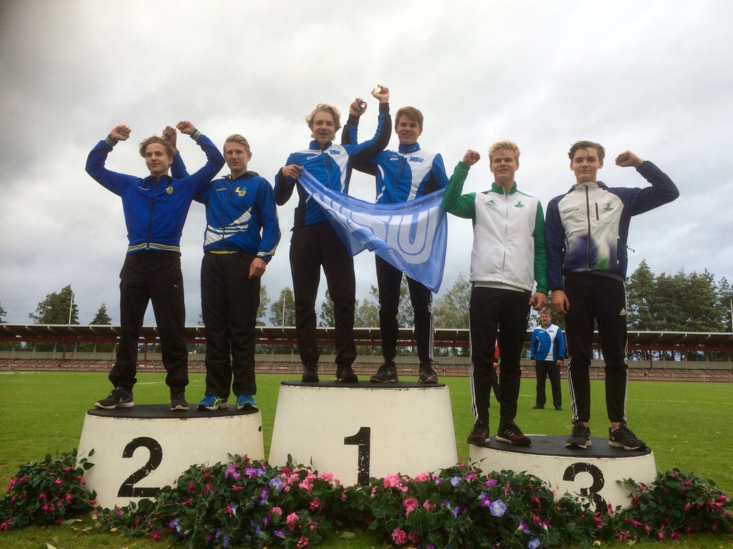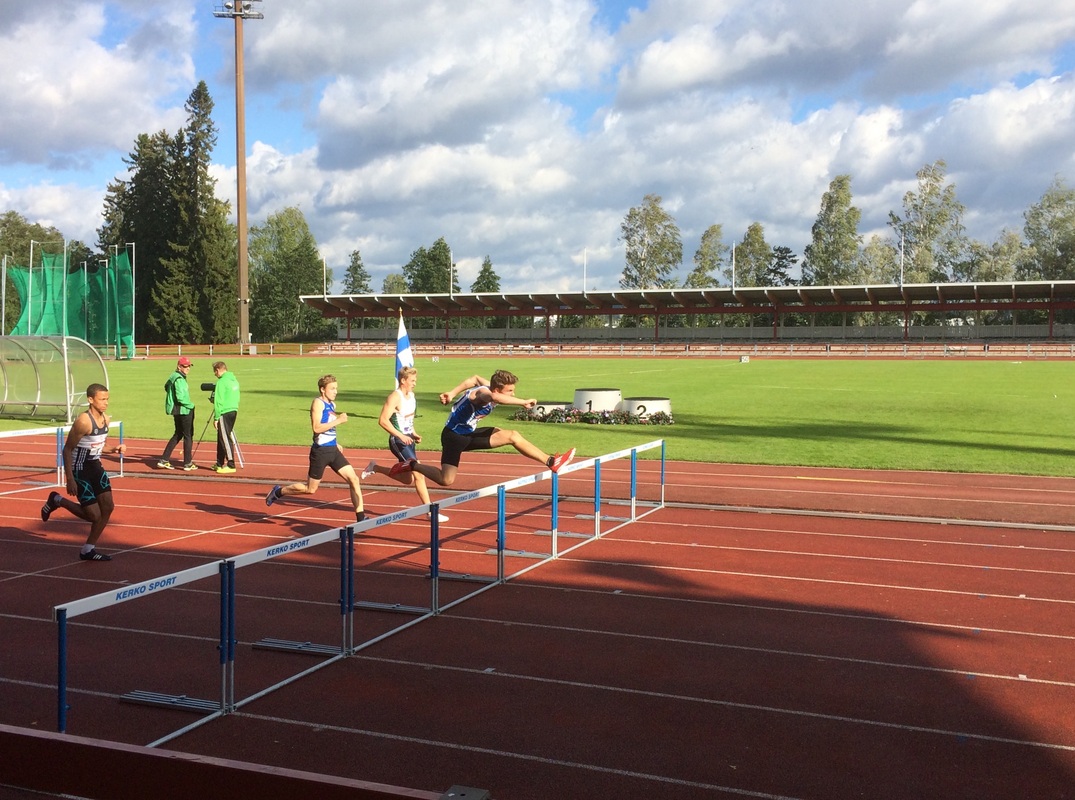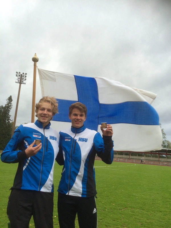 Viikonloppuna kilpailtiin Kuopiossa ja Joensuussa nuorten (14-22v) SM-otteluissa. Hyvinkään Seudun Urheilijat oli saanut molempiin kaupunkeihin 3 urheilijaa. Savon sydämessä, Kuopiossa kilpailivat N17-sarjassa Iida Tolonen 7-ottelussa sekä P15- sarjassa Jermu Tarkiainen ja Marcus Kytölä 5-ottelussa. Kallaveden ympäröivä luonnonkaunis kenttä toimi puitteina tälle upealle viikonlopulle. Kuopion Väinölänniemen urheilukentällä nähtiin kovaa ottelumenoa jopa myrskyiseksi yltyneen tuulen siivittämänä. Poikien päivä alkoi 100m aj:lla mistä tuloksena roimat ennätysparannukset, Marcukselle lajivoitto ajalla 13,42 myötätuulessa ja Jermulle nollatuulissa 14,71. Pituushypyn kolmannella kierroksella Marcus onnistui upeasti 659 kantaneella hypyllä jälleen lajivoittoon. Jermun paras kantoi 522. Tästä jatkettiin sovittelemaan heittopiikkareita jalkaan ja mallailemaan ristiaskeleita, 600g keihäänheiton tuloksina Marcukselle 44,25 ja Jermulle oma ennätys 47,54. Seiväshypyn aikana tuuli vielä yltyi ja olosuhteet muuttuivat todella haastaviksi, tulostaulut ja sadesuojat olivatkin itsestään liikkuvaa sorttia. Pojat kuitenkin selvittivät seipään erityisen hyvin. Seipään lajivoittaja-Marcuksen rima ei pudonnut kisassa kertaakaan ja tulos 422 oli näihin oloihin turvallinen päätös, Jermu taiteili itselleen uuden ennätyksen 392. Päätöslajiin 1000m lähdettäessä Marcus oli jo ottanut selvän etumatkan seuraaviin ja pystyi kontrolloimaan tilannetta varmalla juoksulla 3.29,39. Jermu oli noussut hienon seiväshypyn ansiosta neljänneksi ja reipastahtinen 1000m auttoi varmistamaan sijoituksen ajalla 3.14,05. Kokonaispisteissä Marcus saavutti itselleen SM kultaa kauden kärkituloksella ja omalla ennätyksellä 3794. Jermun pisteet 3150 (PB) toivat 4. sijan ja useita omia ennätyksiä. Poikien kovalla yhteistuloksella tuli myös hieno parikilpailun voitto HSU:n pojille. Voittajavalmentajan SM mitalin sai Markku Kytölä huippuhienosta ottelutuloksesta.