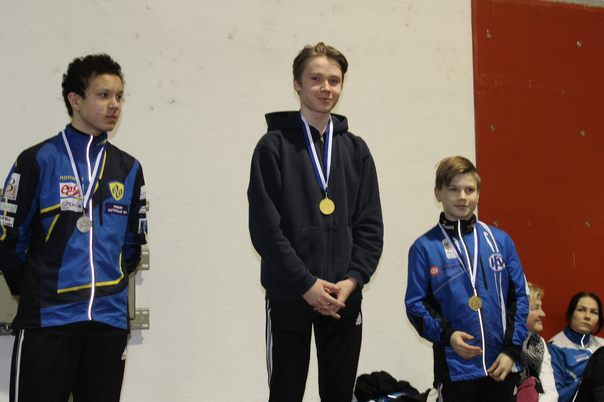 Hyvinkään Hyppysprintit – ennätystehtailut hypyissä ja sprinttijuoksuissa – Marcuksen lentävä 20m! Kilpailun johtaja Erkki Tenkula totesi, että ”kyllä oli hyvät ja onnistuneet kisat.” Hyvinjärjestetyt kisat olivat todelliset ennätystalkoot, sillä lähes jokainen osallistuja tehtaili joko uuden ennätyksensä tai kauden parhaansa. Onnistumisen riemua saatiin seurata monessa lajissa. Kisakahviosta sai jäähdykettä kuumentuneille äänihuulille ja leivonnaiset ja pikkusuolaiset virvokkeineen helpottivat paikallaolijoiden kisajännitystä. Kilpailijoita oli paikalla kisaamassa useista eri seuroista aina nuorista aikuisiin – T/P11, T/P13, T/P15, N/M19 ja N/M -sarjoissa. Kilpailijoita oli reilut sata, joista suurin osa osallistui lentäviin spurtteihin ja joko pituuteen tai seipääseen tai jopa molempiin. Sprinttijuoksu koostui kolmesta osatekijästä: kilpailijat juoksivat ensimmäiseksi lentävän 20m ja toiseksi 50m, josta viimeinen 30m oli lentävä. Loppuaika laskettiin näiden kolmen yhteenlasketun ajan perusteella yksinjuoksuna. M17-sarjassa nähtiin illan kovin tulos, sillä vieläkin flunssan jälkimainigeissa kipristelevä Marcus alitti kahden jäätävän kahden sekunnin ajan 20m lentävällä! Aika on kova 1,99, jolloin 10m kulkee alle sekunnissa. 30 metrin lentävä ei jäänyt tästä juurikaan ajan olessa 3,06. Alkukiihdytys huomioitiin 50m ajassa, joka oli edelleen hyvä 5,88 ja kokonaisaika ainoana alle 11s (10, 93). Miten kovaa 60m kulkisi? Marcus oli erittäinen tyytyväinen juoksuunsa. Seiväs nousi tänään korkeuteen 455, ja kisassa syntyi hyviä hyppyjä, vaikka nappisuoritus jäi tekemättä. Nopeusominaisuudet ovat huimasti kehittyneet ja se tuli esiin hypyissä, sillä seiväs, joka Pajulahdessa ei kunnolla vielä taipunut ennätyskorkeudesta 490, taipui jo hyvin korkeudesta 450, mikä lupaa korkeita hyppyjä SM-kisoissa ja uusien seipäiden testausta. Marcuksen johdolla nelikko otti kärkisijat spurtissa. Ilmari Niiranen oli kovalla ennätysajalla toinen (11,74). Aapo Nieminen (3.) ja Niilo Kantoniemi (4.) tekivät itsekukin ennätyksensä spurteissa ja lisäksi Aapo (285) ja Niilo (235) hyppäsivät ennätyksensä myös seipäässä. Niilo voitti pituuden (474) ja urakoi upeasti kolme ennätystä iltapäivän aikana. Aapo odotteli kisan ratkeamista ja ennätystuloksistaan onnellisen uupuneena nukahti seiväspaikan viereen. Odotukseen kyllääntyneinä pojat lähtivät kotiin ennen kisan loppumista ja turhaan heitä huhuiltiin palkintojenjaossa, joten Marcus tuuletti yksikseen muiden poikien edestä palkintopallilla. N17-sarjassa lentävissä HSUn nuoret naiset ottivat kolmoisvoiton. Sinja Sarasto voitti upeasti ennätysajallaan 12,9, Iida Tolosen ollessa toinen ja Vilma Röngän kolmas. Iida Tolonen urakoi kolme lajia ja oli kisan jälkeen väsynyt, mutta onnellinen, sillä jokaisessa syntyi upeasti ennätys. Iida otti seipäässä kultaa ylittämällä 315, ja korkeudesta 325 hyppäsi kaksi tosi lupaavaa yritystä, vaikka vauhti hiipui hivenen viimeisillä askelilla ennen hyppyä. Iida juoksi lentävät ennätysaikaan (13,02), vaikka ensimmäinen 20 m oli pehmeä eikä irronnut kunnolla. Pituudessa ehti hypätä ainoastaan kaksi kertaa seipään päällekkäisyyden takia ja pisin ponkaisu kantoi 480. Vilma oli juoksun kolmas jääden Iidalle niukasti pari sadasosaa. Pituudessa Vilma lensi ilmavasti viiden metrin paremmalle puolelle upealla tuloksella 503 sijoittuen neljänneksi. Vilman mukaan vielä jäi parempia hyppyjä ”hampaan koloon”. KUY vei puolestaan kolmoisvoiton pituudessa Elina Kujalan johdolla (535). Sinja teki ennätyksensä myös pituudessa ja Nelli Talvitie kauden parhaansa pituudessa ja ennätyksen spurteissa. Miesten sarjassa Teemu Mustonen voitti sekä juoksun (11,18) että pituuden (590). Teemu mukaan pituus olisi voinut mennä paremminkin, mutta oli tyytyväinen juoksuun, jonka aika parani selvästi viime vuodesta. Tarmo Vöigemast oli toinen juoksussa ennätyksellään. Naisissa Maria Kytölä voitti spurtin (13,17) lisäksi myös seipään tuloksella 357. Marian mukaan tulokset olivat tilanteen huomioiden ihan sopivat, kun ottaa huomioon, että hän on juuri saapunut kahden viikon Teneriffan leiriltä ja lihaksisto ei ole vielä tottunut kylmään ilmanalaan. Tulokset ovat lupaavia tulevan viikon SM-kisoja varten ja ennätystä odottelee tulevista SM-viikonlopuista, jotka edessä. Tanja Sorvari palasi syksyn tauon jälkeen kokeilemaan, miten juoksu kulkee ja kello pysähtyi kelpo aikaan tuoden toisen sijan tauosta huolimatta Teija Siilinin ollessa kolmas. P15-sarjassa Eeli Vuola (HSU) voitti kovalla uudella ennätyksessään lentävät (12,27). Juho Kantoniemi oli pituudessa (396) toinen ja seipäässä (225) kolmas. Patrick Lindberg (KarkkPo) voitti pituuden ennätystuloksella 481 ja Aaron Utulahti (VihdVie) seipään ennätyksellään 245. T15- sarjassa Emma Rovasalo ja Moona Hujanen ottivat seipäässä kaksoisvoiton. Emma hyppäsi kauden toiseksi parhaan kisansa hypäten 315 ja teki hyviä yrityksiä ennätyskorkeudestaan 325. Moona oli tyytyväinen parannettuaan seiväsennätystään lukemiin 225. Riina Virtanen otti hopeaa spurttijuoksussa ennätysajallaan 13,29, Noora Hietalan ollessa neljäs ennätyksellän 13,47. NUYn Janette Lohikari voitti ennätystuloksella (506) ja HSUn Noora Hietala hyppäsi uusiksi ennätyslukemiksi 473, joka toi pronssia. Riina Virtanen oli neljäs kauden parhaallaan (458). Annika Parviainen (416), Oona Manninen (410) ja Pihla Poikolainen (396) tekivät ennätyksensä pituudessa ja lentävissä, kuten Anni Lähdemäki lentävissä. P11-sarjassa Roni Heikkonen (NYU) otti kaksoivoiton spurtaten juoksussa nopeiten ja voittaen myös pituuden. Eeli Rovasalo otti kaksi hopeaa tehden komeat uudet ennätyksensä parantaen aiempia tuloksiaan selvästi sekä pituudessa 392 että kiidytyksissä 14,49. Olavi Halonen kiipesi kaksi kertaa palkintopallille voittaen seipään kauden parhaalla 185 