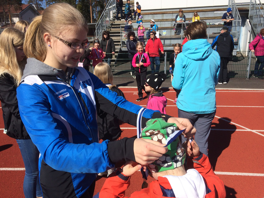 Vappuviikonlopun vaihteleva sää näytti parhaansa vappupäivänä. Aamu alkoi upealla auringonpaisteella ja helli Hyvinkään urheilukentälle saapuneita vappujuoksijoita koko päivän. Osallistujamäärässä tehtiin tänä vuonna ennätys. Perinteiseen Hyvinkään seudun urheilijoiden järjestämään vappujuoksutapahtumaan osallistui yhteensä 352 innokasta juoksijaa. Tänä vuonna tapahtumassa oli mukana yllätysvieras. Suomen Urheiluliitosta saapunut Leevi Leijona hauskuutti paikalle saapunutta vappuväkeä tansseillaan ja yläfemmat Leevin kanssa olivat suosittua. Ihan pienimmätkin osallistujat rohkaistuivat ja kaikki halukkaat saivat sympaattiselta Leeviltä halaukset. Kisat sujuivat todella mallikkaasti ja jouhevasti joka puolella tapahtumaa, mukavaa vipinää oli niin kentällä, katsomossa kuin kioskissakin. Tämän vuoden erikoisuus - Leevi Leijona - pisti jo muutenkin mukavan positiivisen ja aurinkoisen kisatunnelman kuuluttaja Jorkan säestyksellä huippuunsa. Suuret kiitokset kaikille vappujuoksuun osallistuneille, niin yleisölle kuin toimitsijoillekin! Tästä on hyvä jatkaa kesäkauden koitoksiin! HSU- Hyvässä Seurassa Urheilua