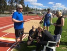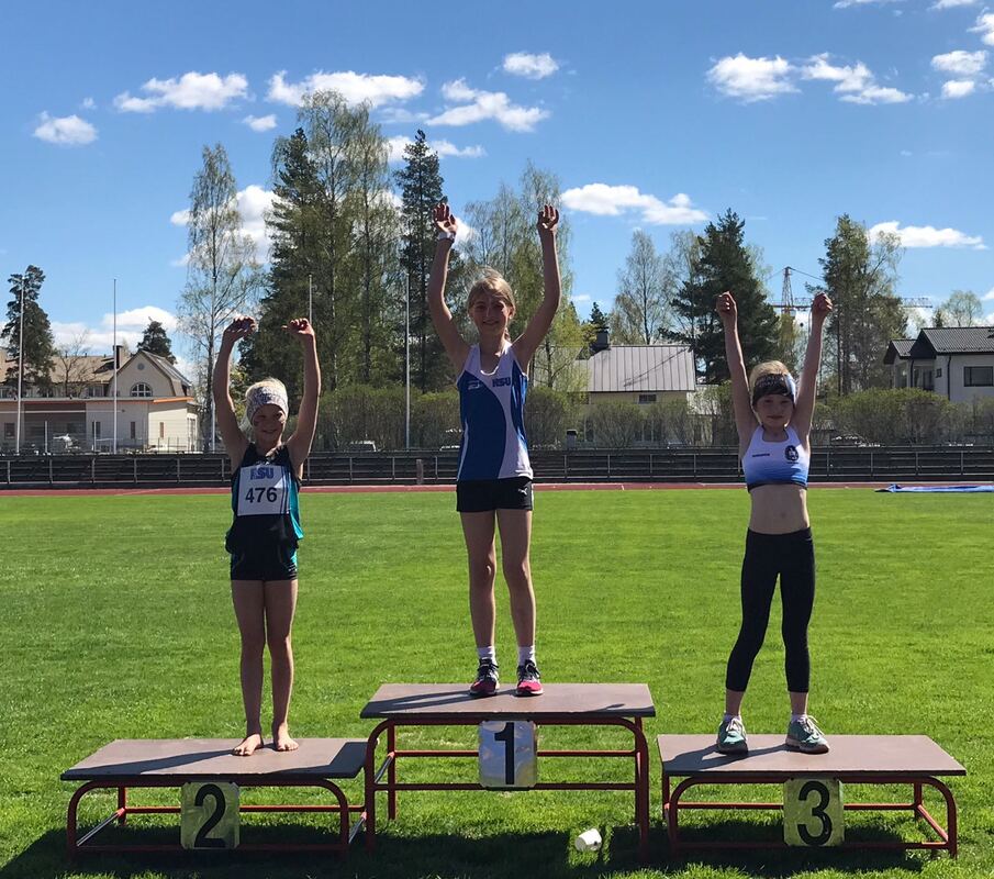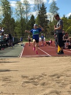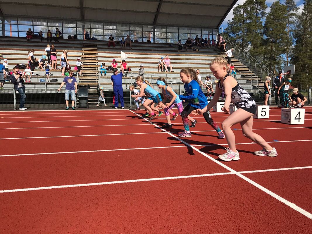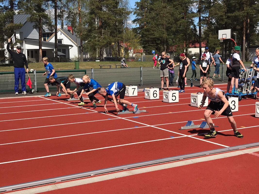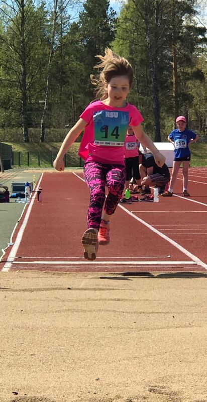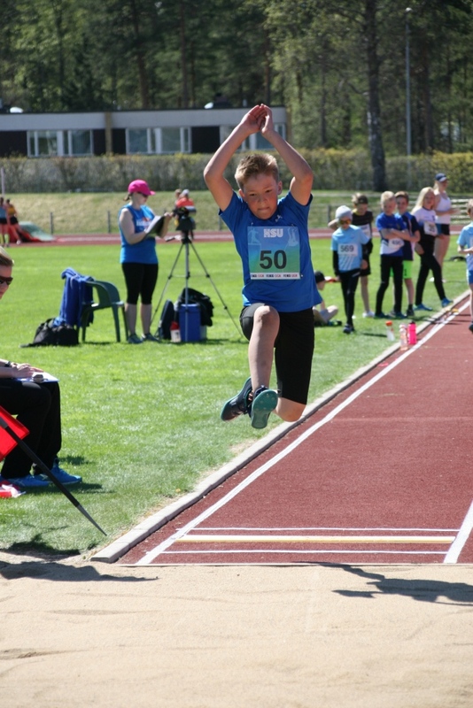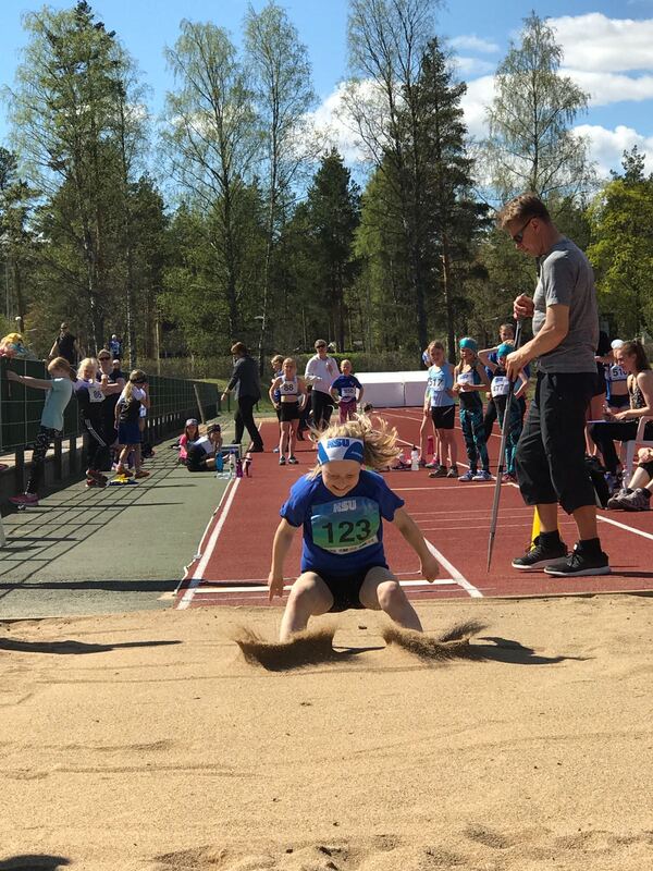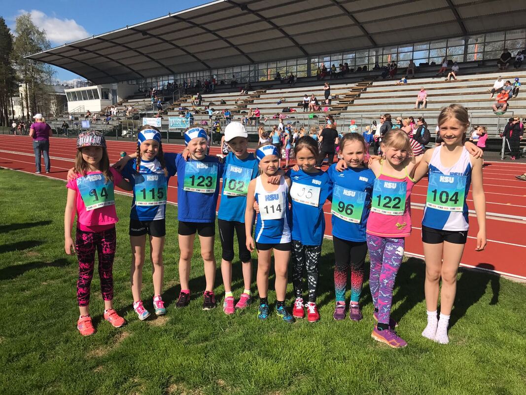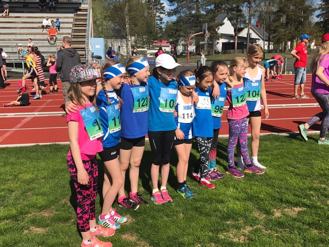Hyvinkään Seudun Urheilijat haki kokemusta syksyllä järjestettäviin Nuorten SM-moniotteluihin järjestämällä su 21.5.17 junnuikäisten moniottelut kotikentällä. Piirinmestaruus junnuotteluihin saavat osallistua kaikki Uudyn jäsenseurojen 9-15-vuotiaat urheilijat. Mukaan oli ilmoittautunut ennätysmäärä kilpailijoita – 250. Aurinko helli kisoja ja kilpailijat ja lähes 50 toimitsijan joukko saivat hikoilla iloisissa tunnelmissa koko päivän. Kotikisoihin osallistui peräti 40 HSU:n urheilijaa. Kisat menivät todella hienosti ja HSU:n nuoret saalistivat 11 mitalia: 4 kultaa, 2 hopeaa ja 5 pronssia. Moni ylsi myös hyvin lähelle kärkeä ja paransi otteluennätyksiään. Nuorimpien sarjoissa oli ennätysmäärät osallistujia, reilusti yli 100. Kovatasoisissa sarjoissa T9, P9-ja P10 3-otteluiden kullat jäivät Hyvinkäälle, kun Ruth Toivola, Elias Oksanen ja Eeli Rovasalo tekivät todella hienot sarjat. Anton Sokoff (P9) ja Neela Jakonen (T10) täydensivät mitalisaalista hopealla ja Sissi Kaksonen (T10) pronssilla. Lisäksi Asla Piri (P10) hienosti 6. Runsaslukuisessa 9-vuotiaiden tyttöjen sarjassa reippaasti ottelivat myös HSU:n Linnea Teivaanmäki, Iisa Aramo, Sonja Pitkänen, Inka Päivinen, Lotte Borremans, Janina Vuorenmaa, Vieno Hakakari ja Netta Raappana. P11 3-ottelussa Olavi Halonen sijoittui hienosti pronssille, lisäksi seurakaveri Aleksis Hurme 13. T12 4-ottelussa Emilia Rouvinen kisasi tasaisen varmasti ja saalisti huippukovat pisteet 1483, jolla voitto oli varma. Aino Halonen (T12) täydensi mitalisaalista hienosti pronssillaan. Lisäksi hyvän ottelun suorittivat Adalia Hurme, Isla Sokoff, Moona Virtanen, Laura Ylönen ja Lotta Lamminen. 14-15-sarjassa otteluihin osallistuivat T15 Pihla Poikolainen ja Saara Rantanen, P14 Juho Kantoniemi ja T14 Emma Rovasalo, Noora Hietala ja Kiia Brandes. Emma Rovasalolle ja Juho Kantoniemelle upeasti pronssimitalit. Emma ja Noora lähtivät hieman epäonnistuneen aita-aloituksen jälkeen taka-ajoon kamppailemaan mitaleista ja upean pituuskisan sekä 800m:n juoksun jälkeen Emma nousi lopulta pronssille pistein 1932 ja Noora oli neljäs pistein 1888. Emma teki omat ennätyksensä 800m:llä 2.40,22 ja sivusi ennätyksensä pituudessa sekä korkeudessa tuloksilla 483 ja 139. Noora otti lajivoiton pituudessa huikealla kauden kärkituloksella 508 ja paransi ennätyksensä myös keihäässä parilla metrillä tulokseen 21,23. Kiia otteli sijalle 12 pistein 1257 ja teki oman ennätyksensä korkeudessa 127, keihäässä 16,70 sekä 800m:llä yli 10 sekunnilla 2.56,02. Tytöille oli ensimmäinen virallinen 5-ottelu ja ensimmäinen kisa uusilla aitaväleillä. Pihla ja Saara ottelivat sijoille 11 ja 12 ennätyspistein 1418 ja 1343. Pihla paransi aidoissa ennätyksensä lähes sekunnilla aikaan 15,16 ja myös 800m kulki ennätysvauhtiin 2.48,64. Saarakin paransi 800m ennätyksensä jopa 16 sekunnilla aikaan 2.51,03 ja teki ennätyksensä myös korkeudessa 136 ja keihäässä 19,26. Poikien ottelussa Juho Kantoniemi palkittiin pronssimitalilla kovan urakan jälkeen loppupistein 1443. Otteluohjelmassa oli ensimmäistä kertaa 100m aidat, seiväs ja 1000m. Seipäässä Juho hyppäsi lähelle omaa ennätystään tuloksella 250 ja pääsi myös yrittämään SM-rajaa 260. Painavampi 600g keihäs lensi hienosti yli 30m viivan tuloksella 30,15. Kertoo 14-15-vuotiaiden valmentaja Yvonn Lindholm. Kilpailuiden järjestämisessä tehtäviä on paljon, ennakkovalmisteluja ja itse kilpailupäivä. Kisojen järjestäminen ei onnistuisi ilman vapaaehtoisten työpanosta. Hienoa että HSU:n väki lähti aktiivisesti mukaan, kiittelee kilpaluiden johtaja Erkki Tenkula. Tulospalvelu siirrettiin kokonaan uudelle tasolle, ensimmäistä kertaa HSU:n yleisurheilussa käytössä oli ajantasainen tulospalvelu, jota oli mahdollisuus seurata netin kautta. Onnittelut mitalisteille ja kaikille hienoihin lajisuorituksiin yltäneille urheilijoille! Kiitos kaikille toimitsijoille ja valmentajille. Tästä on hyvä jatkaa kohti kesän kisoja. Hyvässä Seurassa Urheilua!