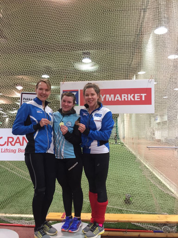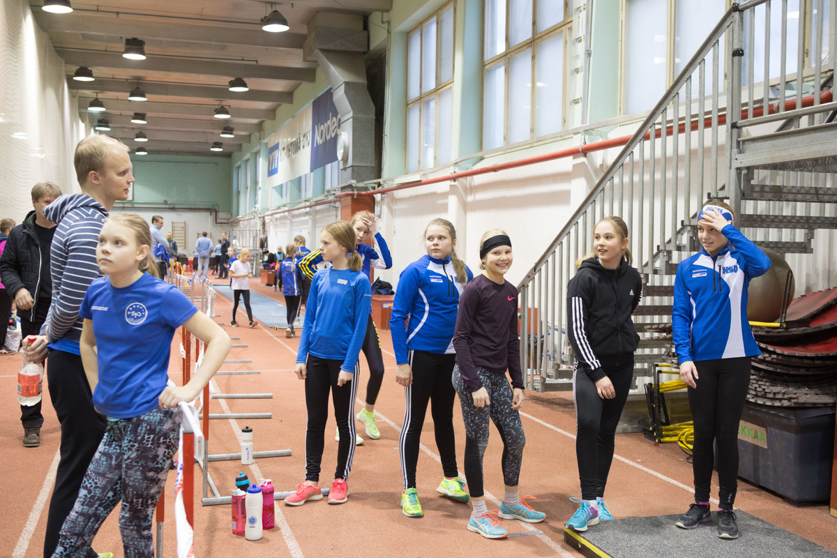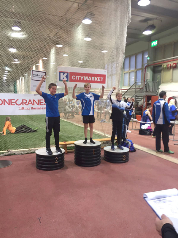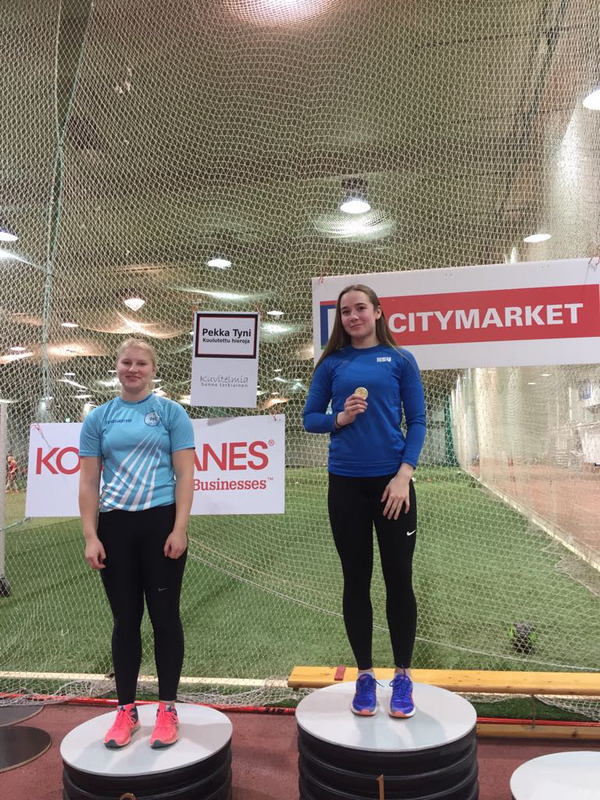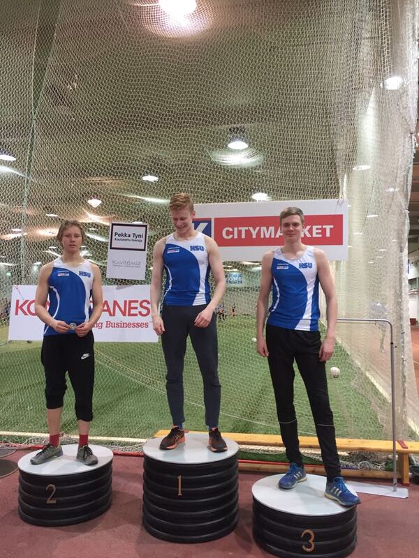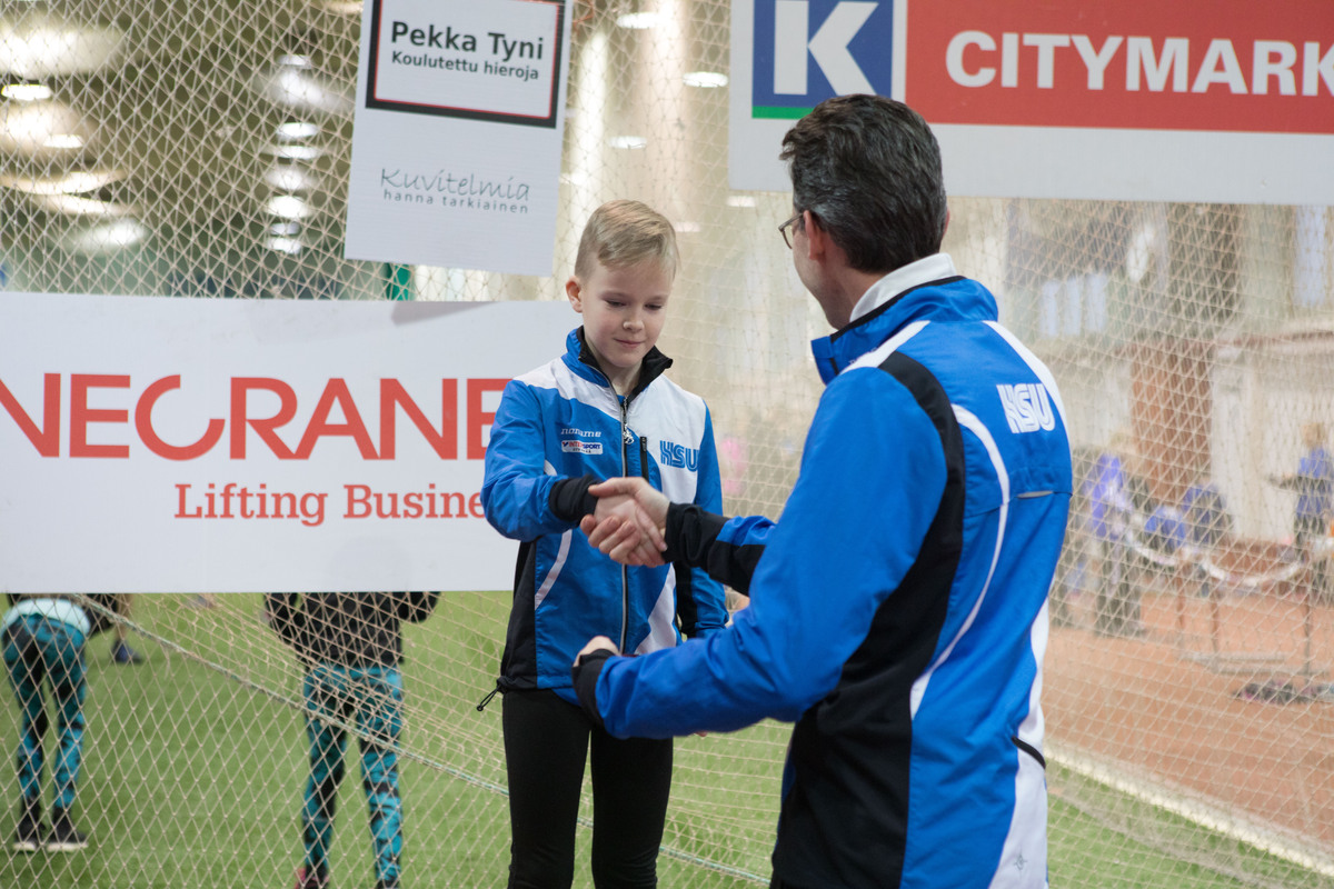 HSU menestyi hienosti sunnuntaina 14.1.2018 pidetyissä vauhdittomien hyppyjen PM-kisoissa. Kilpailut pidettiin perinteiseen tapaan Hyvinkään wanhalla areenalla, joten kyseessä olivat HSUn urheilijoille kotikisat. Mukana oli yhteensä 194 osallistujaa, joista 42 oli HSUn urheilijoita. Heistä 15 urheilijaa palasi kotiin PM-mitalin kanssa. Kilpailut vaativat runsaasti toimitsijoita, sillä suorituspaikkoja oli kilpailun aikana yhteensä kahdeksan ja kilpailijoita lähes 200. HSUn väki olikin paikalla innokkaan aktiivisesti, sillä kilpailut saatiin sujumaan suuresta kilpailumäärästä ja tiukasta aikataulusta huolimatta hyvin joutuisasti. Myös kilpailua edeltäneet järjestelytalkoot sujuivat ilahduttavan helposti ja nopeasti, kun paikalle saatiin runsaasti vapaaehtoisia. Haluammekin lämpimästi kiittää kaikkia kymmeniä mukanaolleita toimitsijoita, valmentajia ja paikallaolleita vanhempia. T9-sarjan 2-ottelussa kilpaili viisi HSUn urheilijaa. Parhaiten menestyi kolmanneksi sijoittunut Velma Peiponen pistein 177, joka sai pronssin tiukassa kilpailussa vain pisteen erolla neljänneksi sijoittuneeseen. Velma hyppäsi vauhdittomassa pituudessa tuloksen 168 ja vauhdittomassa 3-loikassa tuloksen 450cm. Velman lisäksi sarjassa kilpailivat kuudenneksi sijoittunut Janina Vuorenmaa pistein 162 (161, 448), yhdeksänneksi sijoittunut Vieno Hakakari pistein 136 (151, 434), 11:ksi sijoittunut Nella Jääskeläinen pistein 127 (145, 429) ja 12:ta sijoittunut Miisa Virtanen pistein 114 (145, 403). T11-sarjan 3-ottelussa kilpaili kaksi HSUn urheilijaa. Menestys oli tässä sarjassa erinomaista, sillä voittajaksi selviytyi Neela Jakonen pistein 501. Neelan voiton takeena oli erinomaisesti sujunut vauhditon korkeushyppy, jossa Neela ylitti tuloksen 100cm. Sen lisäksi Neela hyppäsi vauhditonta pituutta 192cm ja vauhditonta 3-loikkaa 533. Neelaa täydensi hienosti Sissi Kaksonen sijoittumalla neljänneksi pistein 447 (94, 200, 548). Sissin hyppäämä 200cm vauhdittomassa pituushypyssä oli koko T11-kilpailijoukon pisin. T13-sarjassa kilpaili viisi HSUn urheilijaa. Aivan mitalikantaan ei kukaan päässyt, mutta lähimmäksi pääsi Isla Sokoff, joka sijoittui neljänneksi pistein 671 (111, 183, 578). Islaa seurasivat viidenneksi sijoittunut Aino Laitinen pistein 640 (108, 190, 579), kuudentena ollut Laura Ylönen pistein 626 (102, 206, 569), kahdeksanneksi sijoittunut Moona Virtanen pistein 532 (102, 181, 579) ja 12:ta sijoittunut Lotta Lamminen pistein 383 (90, 177, 537). Etenkin Islan ja Ainon hienot korkeushypyt ja Lauran tekemä pituushyppytulos nousivat tyttöjen suorituksista esiin. T14-sarjassa kilpaili Inkamari Letto. Inkamari sijoittui kovatasoisessa kilpailussa kuudenneksi pistein 867 (106, 210, 628). Inkamari osoitti näin taitoluistelijana kakkoslajissaan erinomaista suorituskykyä. T15-sarjassa kilpaili Noora Hietala. SM-hopeaa viime kesän SM-kisoissa hypännyt Noora hyppäsi vauhditonta pituutta lukemiin 234 ja vauhditonta 3-loikkaa 714, jotka olivat molemmat sarjan kärkitasoa. Valitettavasti jääminen ilman tulosta korkeushypyssä pudotti Nooran neljänneksi pistein 1069. N17-sarjassa nähtiin neljä HSUn urheilijaa. Heistä parhaiten menestyi toiseksi sijoittunut Vilma Rönkä pistein 1610 (118, 244, 687). Hieman jossiteltavaakin Vilmalle jäi, sillä vauhditon korkeushyppy ei aivan sujunut tavoitteiden mukaisesti, sillä kisan jälkeen ylittyi 130cm. Vilmaa seurasivat viidenneksi sijoittunut Riina Virtanen pistein 1313 (112, 231, 669), kahdeksanneksi sijoittunut Jessica Räsänen pistein 650 (100, 212, 556) ja yhdeksänneksi sijoittunut Henna Julkunen pistein 578 (97, 208, 583). N19-sarjassa voittajaksi selviytyi jo lauantaina Pajulahden seiväskarnevaaleilla seiväshyppyennätystään parannellut Iida Tolonen pistein 1654. Iida hyppäsi korkeudessa tuloksen 127, vauhdittomassa pituudessa tuli tulos 228 ja vauhditon 3-loikka lensi lukemiin 694. Naisten sarjassa oli mukana neljä HSUn aikuisurheilijaa. Parhaiten menestyi SAUL:n mestaruuskisoissa menestystä niittänyt Minna Kouhia, joka nappasi itselleen hienosti hopeamitalin pistein 1495. Minna hyppäsi vauhditonta korkeutta 115, vauhditon pituus kantoi lukemiin 233 ja vauhditon 3-loikka lukemiin 706. Minnan perässä tulivat kolmanneksi sijoittunut Hanna Tarkiainen pistein 1083 (103, 223, 665), seitsemänneksi sijoittunut Kirsi Kuisma pistein 510 (100, 186, 575) ja kahdeksanneksi sijoittunut Seija Manninen, joka jäi valitettavasti ilman tulosta vauhdittomassa korkeushypyssä pistein 304 (200, 577). P9-sarjan 2-ottelussa oli mukana kaksi HSU:n urheilijaa. Mukana olivat kymmenenneksi sijoittunut Mikko Koivisto pistein 134 (151, 430) ja 13:ta sijoittunut Lauri Lamminen pistein 128 (159, 384). P10-sarjan 2-ottelussa nähtiin myös kaksi HSU:n urheilijaa. Tässä sarjassa nappasi hienosti hopeaa Elias Oksanen pistein 263. Elias hyppäsi vauhditonta pituutta 191 ja vauhditonta 3-loikkaa 530. Voittokin jäi Eliaksella vain neljän pisteen päähän, joten kilpailu oli kärjen osalta erittäin tasainen. Eliasta säesti 12:ta sijoittunut Anton Sokoff pistein 176 (165, 461). Myös P11-sarjassa nähtiin niinkään kolme HSUn urheilijaa. Kisassa kymmenenneksi sijoittui Eeli Rovasalo pistein 381 (80, 192, 532), 11:ta sijoittunut Asla Piri pistein 352 (80, 189, 486) sekä 13:ta sijoittunut Tuomas Suomalainen, joka jäi valitettavasti ilman tulosta korkeushypyssä pistein 343(205, 552). Eteenpäin suuntautuvissa hypyissa pojat suorittivat aivan kärjen tahtiin, mutta vauhditon korkeushyppy vaatii vielä lisää treeniä tulevaisuutta ajatellen. P12-sarjassa nähtiin kolme HSUn urheilijaa, jotka ottivatkin kisassa kaksoisvoiton. Voittoon hyppäsi Rasmus Salmi pistein 653 (90, 209, 621), jonka jälkeen hopeaa nappasi Olavi Halonen pistein 618 (105, 200, 584). Etenkin Olavin korkeushyppy ja Rasmuksen vauhditon pituus ja 3-loikka olivat hienoja suorituksia. Kaksikkoa täydensi seitsemänneksi sijoittunut Aarni Piri pistein 363 (87, 173, 530)