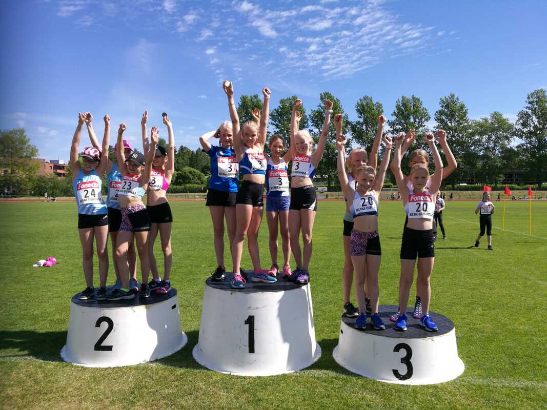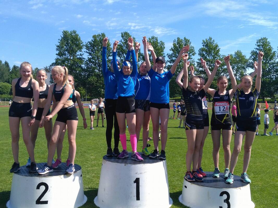 Lauantaina 26.5 kilpailtiin 9-15v ikäisten PM-viesteissä Järvenpään urheilukentällä. Sää oli kisapäivänä hyvin aurinkoinen ja kilpailut päästiin suorittamaan hellelukemissa. Kuuma ja aurinkoinen keli asetti myös haasteita jaksamisen, riittävän vedenjuonnin sekä ihon suojaamisen osalta. Urheilijat osasivat kuitenkin fiksusti hakea sopivasti suojaa Järvenpään kentän harvoilta varjopaikoilta. Itse kilpailuissa tapahtui HSUn joukkueiden osalta lähes koko ajan, sillä mukana oli runsas joukko seuramme viestijoukkueita kaikissa ikäsarjoissa 9-15v väliltä. Starttiviivalle saatiin pienten poisjääntien jälkeen lopulta 19 viestijoukkuetta, jotka keräsivät yhteensä yhdeksän PM-mitalia. Mukaan mahtui myös yksi uusi seuraennätyskin. 9-vuotiaat olivat mukana T/P9-sukkulaviestissä sekä T9 4x400m viestissä. 8x40m sukkulaviestissä joukkue: Mikko Koivisto, Lauri Lamminen, Janina Vuorenmaa, Vieno Hakakari, Velma Peiponen, Senni Koski, Netta Raappana ja Linnea Teivaanmäki juoksivat ajan 60,27. Tasaisessa viestissä aika riitti neljänteen sijaan ja pronssimitalikin jäi vain 27 sadasosan päähän, mikä oli joukkueelta hieno suoritus. T9 4x400m juoksussa Vieno Hakakari, Janina Vuorenmaa, Velma Peiponen ja Senni Koski juoksivat seitsemänneksi ajalla 6,32,27. T11-sarjassa HSUn joukkue Anni Huttunen, Neela Jakonen, Sissi Kaksonen ja Elsa Pinola menestyivät mainiosti. Tyttönelikko otti tasaisissa taisteluissa kultaa niin 4x60m aitaviestissä ajalla 45,94 ja 4x50m viestissä ajalla 30,61. Myös 4x600m viestissä tytöt juoksivat kahdeksanneksi ajalla 9,23,07. Tyttöjä säesti mukanaollut toinen HSUn viestijoukkue Ester Solismaa, Kia Sairanen, Venla Peltomäki ja Sonja Pitkänen, jotka olivat 4x50m-viestissä 14:ta ajalla 36,19 ja 4x600m-viestissä kymmenensiä ajalla 9,59,98. P11-sarjan viestijoukkue Elias Oksanen, Anton Sokoff, Aarre Kalanen ja Eeli Rovasalo olivat pronssilla 4x50m viestissä ajalla 31,21 ja kuudensia 4x60m aitaviestissä ajalla 48,82. Mitalikaan ei ollut aitaviestissä kaukana, johon mahtui myös pientä kompurointia. 4x600m viestissä joukkue Anton Sokoff, Mikko Koivisto, Aarre Kalanen ja Eeli Rovasalo nappasi lisäksi pronssia ajalla 8,40,39. Pojat nostivat pitkässä viestissä osakkeitaan etenkin Eeli Rovasalon komealla ankkuriosuudella. T13-sarjassa nähtiin heti päivän alussa upea HSUn aitaviestinäytös. Joukkue Adalia Hurme, Venla Lähdemäki, Isla Sokoff ja Aino Laitinen ottivat ylivoimaisen kullan 1,6 sekunnin erolla seuraavaan ajalla 43,68. Tyttöjen upea aika parantaa myös HSUn vanhaa seuraennätystä (44,33) 65 sadasosalla. Kakkosjoukkue Aino Halonen, Lotta Lamminen, Mira Martikainen ja Elsa Mattila juoksivat aitaviestissä yhdeksänneksi ajalla 53,02. 4x100m viestissä Aino Halonen, Venla Lähdemäki, Isla Sokoff ja Adalia Hurme juoksivat tasapainoisella juoksulla kuudenneksi ajalla 57,66 ja toinen joukkue Lotta Lamminen, Aino Laitinen, Mira Martikainen ja Elsa Mattila 13.ta ajalla 1,02,67. Pitkässä viestissä joukkue Aino Halonen, Venla Lähdemäki, Isla Sokoff ja Aino Laitinen juoksivat tasaisen ja tiukan taistelun päätteeksi kuudennelle sijalle ajalla 8,22,83. P13-sarjassa ei joukkuemäärillä juhlittu, mutta HSU oli vankasti edustettuna kaikilla kolmella viestimatkalla. 4x60m aitaviestissä joukkue Olavi Halonen, Rasmus Salmi, Aleksis Hurme ja Aarni Piri joutui lopussa taipumaan Riihimäen Kiskolle ajalla 49,38. 4x100m viestissä pojat ottivat Kiskosta revanssin nousemalla jännitävässä viimeisen osuuden taistelussa voittajaksi ajalla 59,12. 4x600m viestissä pojat ottivat hopean ajalla 9,10,55. T15-sarjassa nähtiin mukana 4x100m viestissä joukkue Kiia Brandes, Emma Rovasalo, Noora Hietala ja Emilia Rouvinen. Tytöt osoittivat menneensä vuoden aikana juoksunopeudessa hienosti eteenpäin ja ottivat kilpailussa suvereenin voiton. Tyttöjen viestin voittoaika 51,57 hipoi jopa seitsemän vuotta vanhaa HSUn seuraennätystä. Viimeistään SM-viesteissä voi tytöiltä odottaa tuon seuraennätyksen passittamista historiaan. Kokonaisuutena yhdeksän mitalin kokonaissaalis oli erinomainen suoritus joukkueelta, kun keskimäärin lähes joka toinen viestisuoritus palkittiin kilpailussa mitalin arvoisesti. Samalla myös iso joukko uusia HSUn juoksijoita pääsi kokeilemaan ensimmäistä kertaa viestikilpailua. HSU kiittää kaikkia urheilijoita, vanhempia ja valmentajia mukanaolosta lämminhenkisessä tapahtumassa.