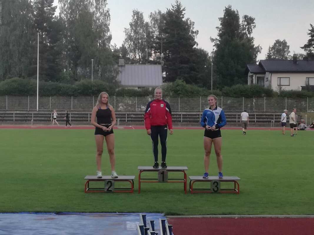 ![]() Niilo Kantoniemi urakoi kaksipäiväisissä kisoissa peräti viisi lajia. Niilo nähtiin niin 100m, 200m kuin 400m juoksuissa sekä keihässä että kiekossa. ![]() Saga Andersson voitti N19-sarjan seiväshypyn hienolla 420 tuloksella. Vieressä hopealle sijoittunut HSUn Iida Tolonen (322cm) |