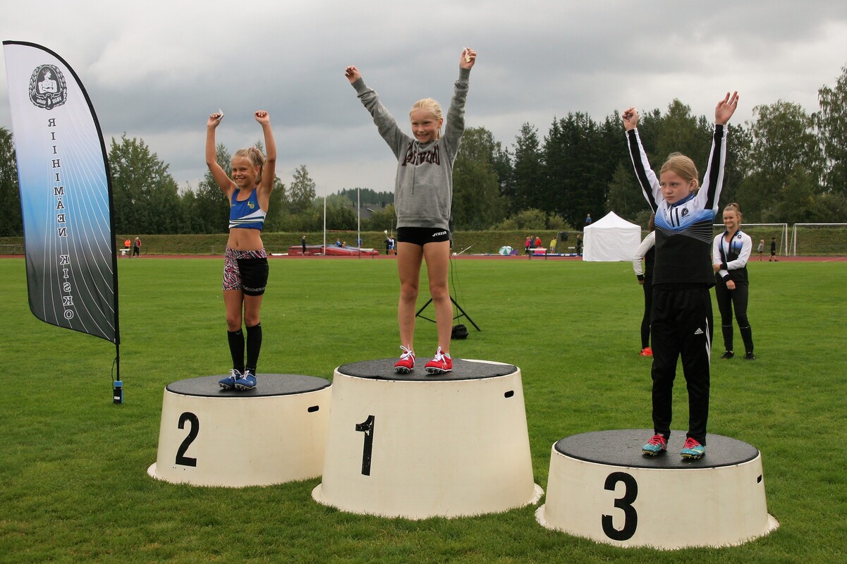 Viime viikonloppuna kilpailtiin Riihimäellä 9-15v PM-kisat. Kaksipäiväiset kilpailut keräsivät yhteensä lähes 350 urheilijaa ympäri uudenmaan piiriä. Kisat olivat monelle nuorelle urheilijalle yksi vuoden kohokohdista ja hyvä tunnelma säilyi urheilijoiden keskuudessa läpi kisojen ajan. HSU:lta lähti kisoihin yhteensä 41 urheilijaa, jotka keräsivät kilpailuissa hienosti 52 mitalia. Mitaleja keräsivät tasaisesti kaikki ikäluokat 9-vuotiaista aina 15-vuotiaisiin. Kilpailut kilpailtiin molempina päivinä aamupäivän ajan sateisessa säässä, joka vaihtui päivän aikana poudaksi. Kilpailupaikalla oli myös ajoittain todella kova ja puuskittainen tuuli. Kiitos kaikille urheilijoille, huoltajille ja ohjaajille mukavasta viikonlopusta Riihimäellä! T9-sarjassa oli mukana viisi HSUn urheilijaa. Mitaleja saatiin kisoista tästä sarjasta kaksi. Linnea Teivaanmäki hyppäsi sarjassa erinomaisesti korkeuden voittoon tuloksella 108cm. Mitalipallille nousi myös Nelia Krantz juoksemalla hienosti hopealle 1000m juoksussa ajalla 4,02,73. Sarjassa olivat mukana myös Nella Jääskeläinen, Miisa Virtanen ja Velma Peiponen. T10-sarjassa oli mukana kolme HSUn urheilijaa, jotka eivät aivan mitalikantaan yltäneet. Kia Sairanen oli kuitenkin lähellä mitalia keihäässä (viides) ja kiekossa (neljäs). Samoin Iisa Aramo heittkiekossa hyvin viidenneksi. Mukana oli myös Catarine Billingham. T11-sarjassa oli mukana viisi HSUn urheilijaa, jotka menestyivät hyvin, sillä kaikki tytöt nappasivat kisoista itselleen mitalisijan. Mitalipallille nousi kahdesti Anni Huttunen pituushypyn hopealla (406cm) ja korkeushypyn pronssilla (125cm). Kertaalleen mitalin saivat Sara Jousimaa voittamalla kuulan (7,14m), Sissi Kaksonen 1000m kävelyn hopealla (7,08,30), Neela Jakonen pituushypyn pronssilla (405cm) ja Elsa Pinola korkeushypyn ylivoimaisella voitolla (134cm). Tytöt keräsivät myös muutamia mitalisijan tuntumaan tulleita nelos- ja vitossijoja. T13-sarjassa oli mukana kaikkein eniten HSUn urheilijoita, yhteensä kahdeksan. Heistä ja koko HSUn urheilijoista mitalimäärän osalta menestyi parhaiten Emilia Rouvinen neljällä kultamitalillaan ja kahdella hopeallaan. Heittovoimainen Emilia voitti niin kiekon (40,43m), keihään (35,61m) ja sijoittui kuulassa hopealle (10,96). Emilia osoitti myös kovan juoksuvoimansa voittamalla 60m-juoksun (8,65), 60m aidat (10,18) ja ottamalla 200m-juoksussa hopeaa (29,48). Sarja osoittautui HSUn urheilijoille erinomaiseksi, sillä Emilian menestyksen lisäksi sarjassa menestyi Isla Sokoff voittamalla sadesäässä kilpaillun seipään (250cm), Laura Ylönen 2000m kävelyn hopeallaan (12,27,49) ja Aino Halonen 1000m-juoksun pronssilla (3,27,29). Myös Adalia Hurme 60m aidoissa (10,65) ja Elsa Mattila moukarissa (27,14) olivat lähellä mitaleja. Sarjassa olivat mukana myös Lotta Lamminen, Moona Virtanen. T15-sarja osoittautui myös hyvin menestyksekkääksi seuramme kannalta. Emilia Rouvisen lisäksi toinen täydet kuusi mitalia kisoissa nappasi itselleen Emma Rovasalo. Emma voitti kisoissa seipään (320cm) ja 3-loikan (10,54m), sijoittui toiseksi keihäässä (28,07m), 100m:llä (13,30) ja pituudessa (512cm) sekä otti pronssimitalit 80m aidoista (12,93). Emman lisäksi palkintopallille nousi tiheästi Noora Hietala neljällä mitalillaan, joista hopean Noora sai korkeudesta (145cm) ja 3-loikasta sentin Emmalle hävinneenä (10,53m) sekä pronssit 100m-juoksusta (13,59) ja pituudesta (510cm). Mitaleja Emman ja Nooran lisäksi otti myös Laila Lehtinen sijoittumalla kiekossa kolmanneksi (29,59m). Myös Kiia Brandes oli monessa lajissa mitalisijan tuntumassa, joten tyttöjen panos 11 mitalillaan oli viimeisissä 9-15v henkilökohtaisten lajien PM-kisoissa oli erinomainen.Tämä oli myös isoin mitalisaalis, mitä HSUn urheilijat mistään sarjasta saivat. P9-sarjassa nappasi hienosti kultamitalin Lauri Lamminen kuulantyönnössä tuloksella 7,08m. Sarjassa olivat mukana myös Joa Liuha ja Mikko Koivisto, jotka myös olivat paikoin lähellä palkintosijaa. P10-sarjassa oli mukana kolme HSUn urheilijaa. Kolmen pronssimitalin arvoisesti urheili Elias Oksanen ottamalla mitalit niin 60m aidoista (11,65), pituushypystä (386cm) sekä kuulasta (6,64m). Elias oli hyvin lähellä mitalia myös 60m juoksussa sekä korkeudessa. Myös Anton Sokoff menestyi hyvin ottamalla keihäässä hopeaa kovalla tuloksella 28,76m. Poikien lisäksi sarjassa kilpaili myös Luka Hautala. P12-sarjassa oli mukana viisi HSUn urheilijaa. Mitalin makuun pääsi värisuorallaan Rasmus Salmi voittamalla 60m-juoksun (9,159, ottamalla hopeaa 60m aidoista (12,60) sekä pronssia korkeudesta (125cm). Olavi Halonen menestyi myös värisuoran arvoisesti ottamalla seipäästä kultaa (250cm), pituudesta hopeaa (430cm) ja kiekosta pronssia (24,05m). Myös Aarni Piri otti pronssia pituudesta (382cm). Mukana kisoissa oli myös Aleksis Hurme sekä Riku Hautala. P13-sarjassa mukana oli yksi HSUn urheilija, Eelis Aramo. Eelis menestyi hyvin ottamalla kiekosta (27,21m) ja moukarista (24,17m) kultaa ja kuulasta hopeaa (8,67m). P15-sarjassa oli mukana kolme HSUn urheilijaa, jotka kaikki nousivat mitaipallille useampaan kertaan. Eniten lajeja urakoi Juho Kantoniemi, joka otti hopeaa seipäästä (260cm), 100m aidoista (18,60), kuulasta (9,28m) ja kiekosta (30,82m) sekä pronssia 300m:ltä (51,20). Justus Talvitie voitti seipään (270cm), otti kuulassa pronssia (9,12m). Myös Aarre Uusitalo menestyi hyvin nappaamalla korkeudesta kultaa (153cm) ja 100m:ltä hopeaa (14,35).