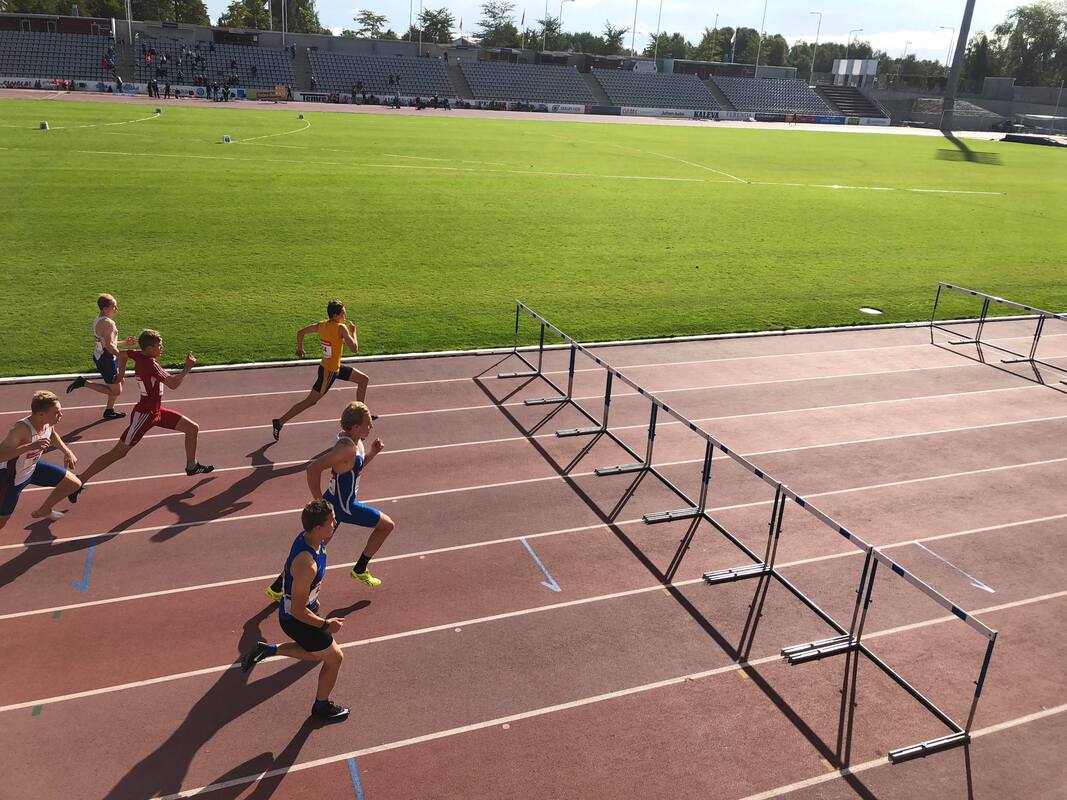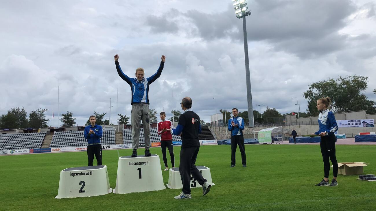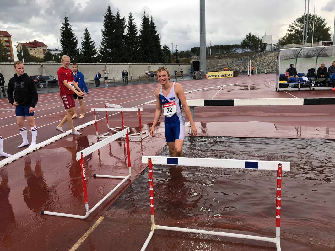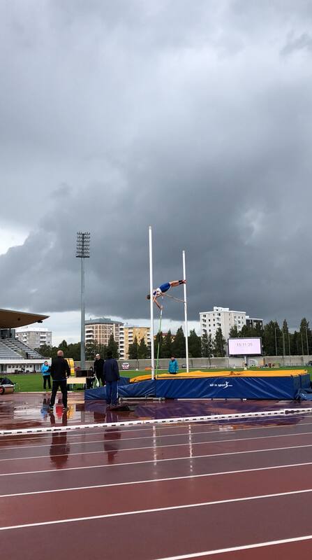 Viime viikonlopun aikana 25.-26.8 kilpailtiin Oulussa ja Kempeleessä nuorten (14-22v) SM-moniottelut. Mukana oli kaksi HSUn urheilijaa: Jermu Tarkiainen M17-sarjan 10-ottelussa ja Vilma Rönkä N17-sarjan 7-ottelussa. Jermun kilpailut käytiin Oulussa ja Vilman Kempeleessä. Jermun kilpailu alkoi Oulussa haasteellisissa olosuhteissa, kun ajoittainen vesisade ja kova tuuli vaikeuttivat suorittamista. Heti 100m juoksuja vaikeutti lähes neljän metrin vastatuuli. Olosuhteet olivat kuitenkin samat kaikille ja Jermu otti heti 100m:ltä selkeän lajivoiton ajalla 11,67. Vahva tekeminen jatkui kuulantyönnön 13,28, piituuden komealla 652cm hypyllä, korkeuden 173cm:llä ja ensimmäisen päivän päätöslajina toimineen 400m-juoksun 52,84:llä. Jermu oli ensimmäisen päivän jälkeen kilpailun selvässä johdossa neljällä lajivoitollaan (100m, pituus, kuula, 400m) pistein 3363 pistettä. Eroa oli kakkosena olevaan Lassi Saarelaan jo 235p. Kakkospäivä alkoi kohtuulisissa olosuhteissa ja 100m-aidat taittuivat Jermulta aikaan 15,20. Myös kiekko sujui hyvin 36,39 kantaneella heitolla. Seiväskisan aikana olosuhteet kuitenkin heikkenivät ja kisapaikkaa vaivasi ajoittain kovakin vesisade. Tämä ei kuitenkaan haitannut Jermua, joka ylitti 430cm ja näin vankisti johtoaan kilpailussa entisestään. Keihäänheiton 44,90m mittainen heitto nosti eron muihin jo 500 pisteeseen, joten 1500m:lle päästiin lähtemään jo hyvin selkeästä johtoasemasta. Jermu kruunasi ottelunsa juoksemalla 1500m ennätyksensä aikaan 5,04,30 ja voitti SM-kultaa yhteispisteillä 6532. Hopeaa otti Lassi Saarela pistein 5965 ja pronssia Aleksi Savolainen pistein 5583. Onnittelut Jermulle ja hänen tukijoukoilleen upeasta suorituksesta. SM-kulta oli Jermulle että HSU:lle koko kesäkauden ensimmäinen.