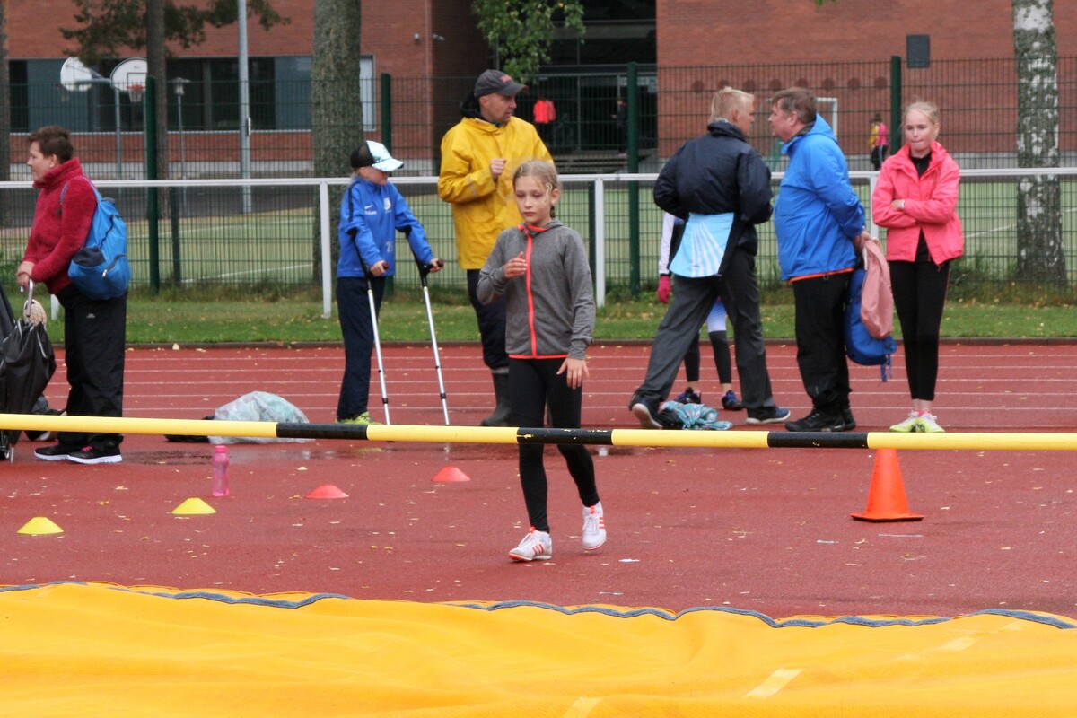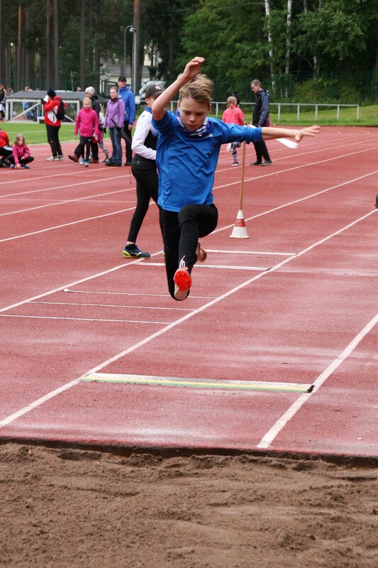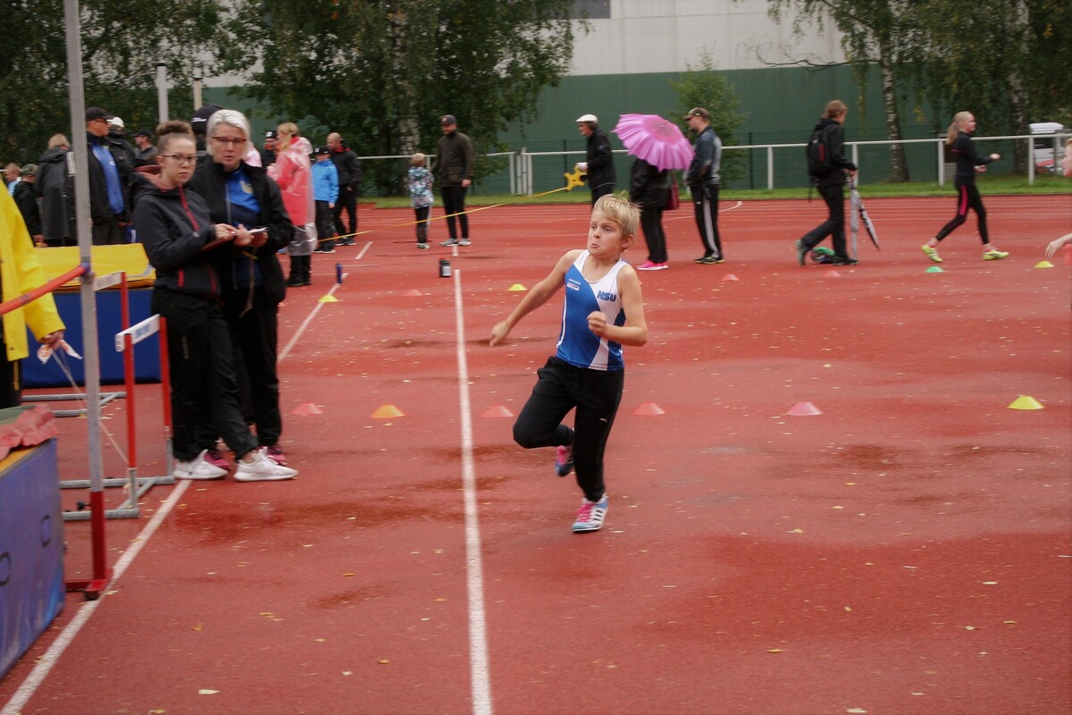 Uudenmaan piirin viimeiset PM-kisat kilpailtiin lauantaina 15.9 9-13v PM-moniotteluiden merkeissä Nummelan urheilukentällä. Sadekuurojen sävyttämänä kisapäivänä saapui Nummelan urheilukentälle yhteensä 12 hengen kokoinen HSUn urheilijoiden joukko. Urheilijat nappasivat tuliaisina yhteensä neljä PM-mitalia. Kultamitalin otteluista nappasivat Olavi Halonen P12-sarjassa sekä Anton Sokoff P10-sarjassa. Olavi aloitti 26.26 mittaisella keihäskaarella, jatkoi ottelua hienosti juoksemalla ennätyksensä niin 60m aitajuoksussa ajalla 11.24 kuin hyppämällä pituutta 437. Kun kiekonheitossa Olavi sai tuloksen 27,10, alkoi kokonaistilanne näyttää hyvältä ennen päätöslajia. Olavi tsemppasi hyvin myös 800m:n päätösmatkaan, jossa hän sai kolmannen lajiennätyksensä juoksemalla matkan aikaan 2,54,28. Näin selkeä otteluvoitto tuli Olaville hienosti pistein 1657. Samassa sarjassa oli mukana Olavin lisäksi myös Kasper Borremans, joka sijoittui kuudenneksi pistein 954 (13,86, 321, 11,48, 17,87, 2,45,67). Mainitsemisen arvoinen oli triathlonia päälajinaan harrastavan Kasperin hieno soolojuoksu 800m:llä. Toisen kultamitalin HSU:lle nappasi P10-sarjassa Anton Sokoff. Anton aloitti ottelun juoksemalla 60m aidat aikaan 12,99, hyppäämällä korkeudessa 115cm ja heittämällä paraatilajissaan, eli keihäänheitossa komeat lukemat 28,54. Kun myös 800m:llä tuli lajivoitto ajalla 2,54,79, vei Anton selkeällä erolla mestaruuden kokonaispistein 1014. Antonin lisäksi sarjassa oli mukana Elias Oksanen, joka aloitti ottelun hyvin juoksemalla 60m aidat aikaan 11,63 ja hyppäämällä korkeutta 125cm. Keihäänheiton 17,86 ja 800m:n 3,32,29 toivat kokonaispisteet 916, jotka riittivät tässä kisassa neljänteen sijaan. Hopeamitalin HSU:lle toi T11-sarjassa kilpaillut Elsa Pinola. Elsa juoksi 60m aidoissa ennätyksensä 11,21, hyppäsi korkeutta 130cm ja heitti keihästä 12,18. Kun 800m kulki hyvin aikaan 2,57,83, tuli kisoista palkintona sarjan hopeamitali yhteispistein 1034. Samassa sarjassa yhdeksänneksi sijoittui HSUn Anni Huttunen pistein 917 (11,29, 120cm, 12,52m, 3,09,26) ja kymmenenneksi Neela Jakonen pistein 910 (10,85, 105cm, 12,54m, 3,04,94). Pronssimitali tuli myös T9-sarjan 4-ottelusta, jossa pronssimitalin sai äärimmäisen tiukassa kamppailussa Linnea Teivaanmäki. Linnea juoksi 40m hienosti aikaan 7,15, hyppäsi korkeutta 100cm, heitti keihästä 9,60m ja juoksi 800m aikaan 3,15,99, jotka riittivät kokonaispisteisiin 563. Kilpailu oli pronssimitalin osalta todella tasainen, sillä sarjan kolme seuraavaa kilpailijaa olivat vain kahdeksan pisteen sisällä toisistaan. Linnean lisäksi sarjassa kilpaili myös Nelia Krantz, joka sijoittui kahdeksanneksi pistein 515 (7,37, 95cm, 10,86m, 3,19,67). Edellämainittujen kisaajien lisäksi HSU:ta edusti T13-sarjan 5-ottelussa Isla Sokoff, joka juoksi 60m aidoissa ajan 11,87, hyppäsi korkeutta 125cm ja pituutta 391cm, heitti keihästä 19,90m ja juoksi 800m aikaan 3,38,58. Kokonaispisteet 1163 riitti kahdeksanteen sijaan. Mukana oli lisäksi T10-sarjan 4-ottelussa kilpaillut Kia Sairanen, joka juoksi 60m aidat aikaan 12,67, hyppäsi korkeutta 100cm, heitti keihästä 17,51m ja juoksi 800m aikaan 3,11,97. Kokonaispisteet 740 riittivät kisan kuudenteen sijaan. Poikien puolella nähtiin myös P9-sarjassa Alexander Reichardt, joka juoksi 40m aikaan 7,61, hyppäsi korkeutta 90cm, jäi harmittavasti ilman tulosta keihäässä ja juoksi 800m aikaan 3,45,79. Alexanderin kokonaispisteet 315 riittivät 21:een sijaan. Kokonaistulokset löytyvät täältä |