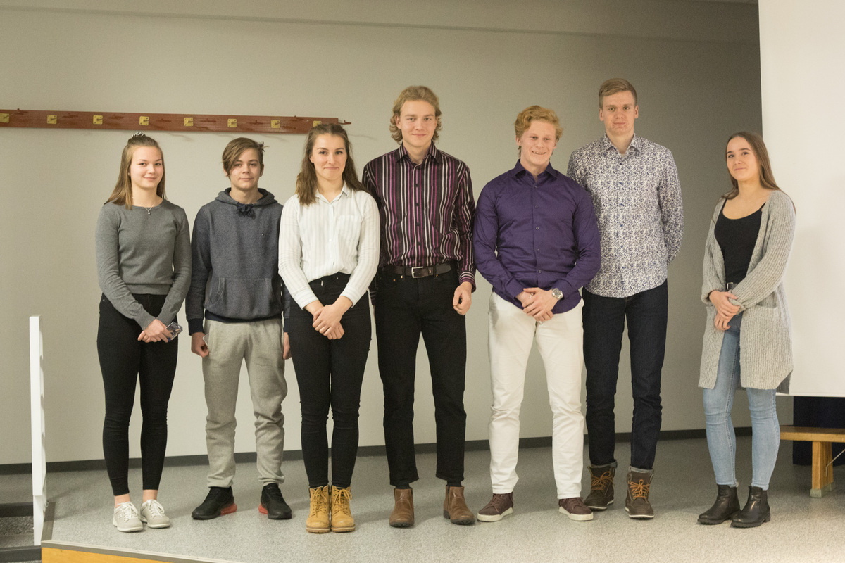 Yhteiskuvassa SM-pistesijan saaneet HSUn urheilijat, jotka ovat vasemmalta katsoen: Noora Hietala, Nelli Talvitietä tuurannut Justus Talvitie, Vilma Rönkä, Jermu Tarkiainen, Ilmari Niiranen, Niilo Kantoniemi ja Iida Tolonen.