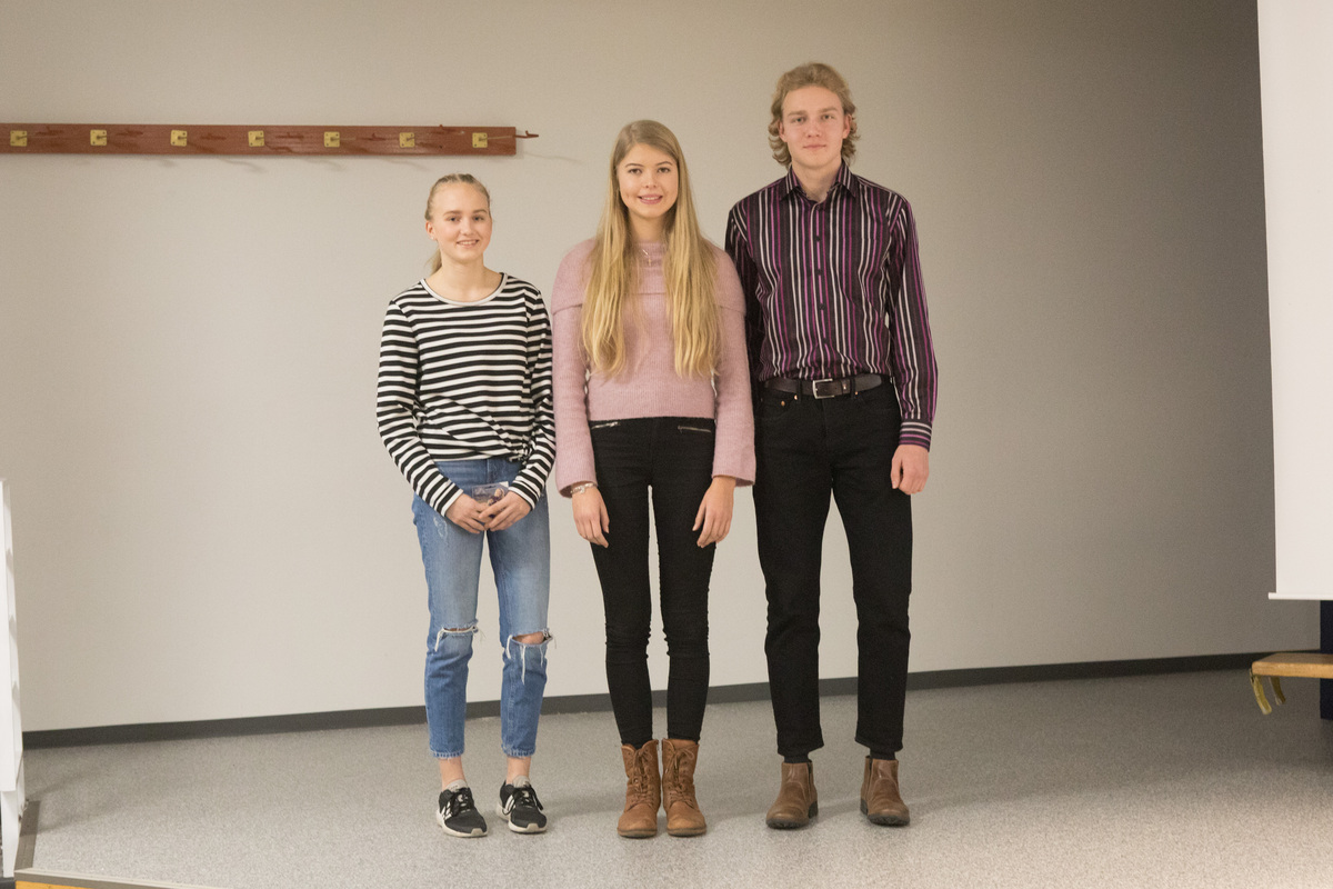 HSUn vuoden ohjaajat ja valmentaja yhteiskuvassa (vas. Elina Sokka, Johannes Tarkiainen ja Nelli Talvitietä tuurannut Justus Talvitie)