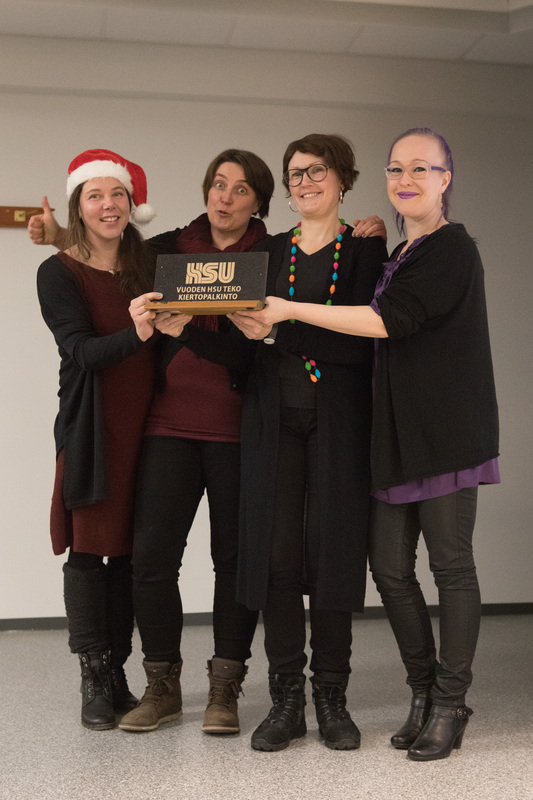 ![HSU-teko palkinnon nappasi HSUn kahviotiimi ansiokkaasta ja pyyteettömästä työstään erinomaisen toiminnastaan HSUn tapahtumissa. Kuvassa vasemmalta Hanna Tarkiainen, Heli Kaipiainen, Suvi Luukkonen ja Katariina Piri. Kahviotiimissä on ollut mukana myös Meritta Rouvinen.