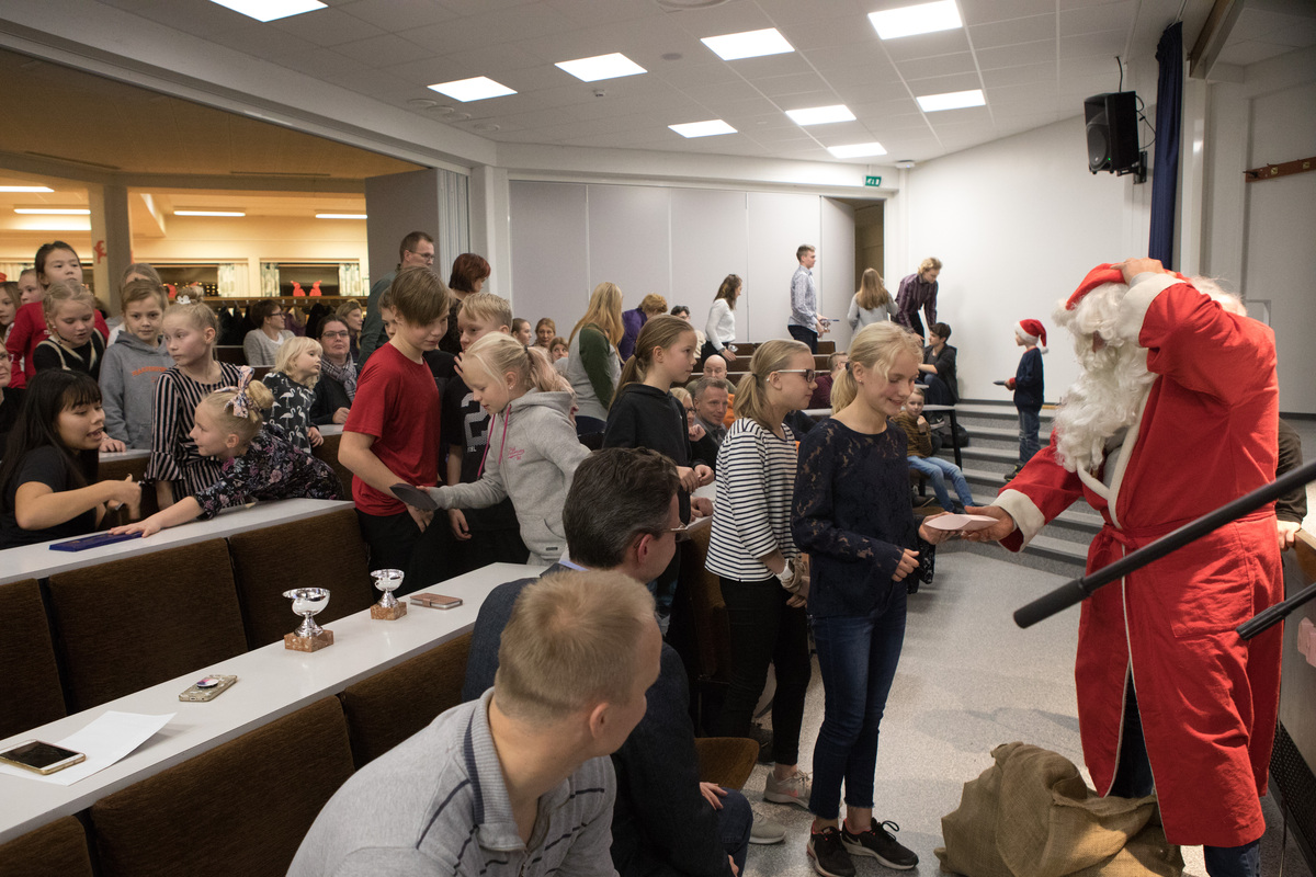 ![Joulupukki tuli myös vierailemaan tapahtuman virallisen osuuden lopussa ja jakoi lapsille lahjoja.