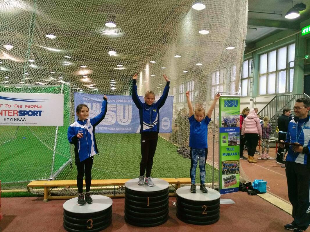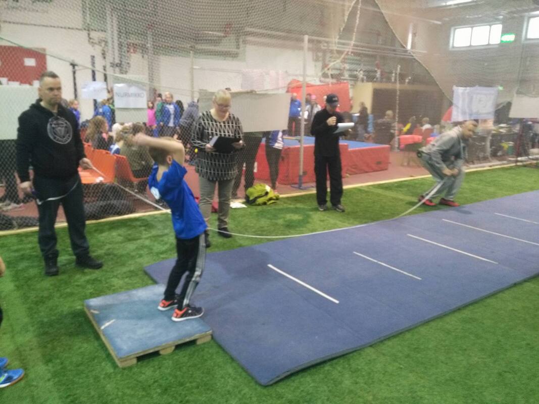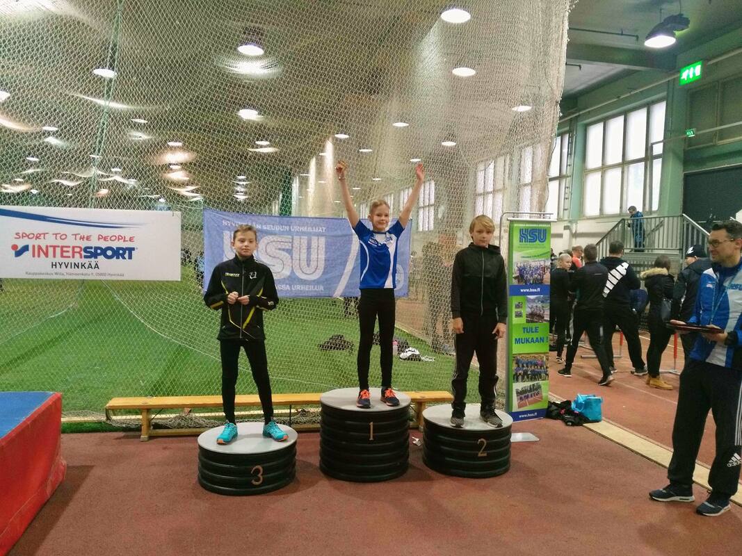 Vauhdittomien hyppyjen uudenmaan piirin pm-kisat saatiin kilpailtua sunnuntaina 13.1 klo 12 alkaen. Noin viisituntiset kisat pidettiin tuttuun tapaan wanhalla areenalla. Kisat keräsivät kokoon jälleen 170:n urheilijan osallistujajoukon, jotka kilpailivat pm-mitaleista eri sarjoissa aina 9-vuotiaista aikuisiin. Tapahtuma onnistui kokonaisuutena erinomaisesti ja HSU kiittää lämpimästi kaikkia tapahtumassa toimineita toimitsijoita, jotka omalla työpanoksellaan mahdollistivat tapahtuman järjestämisen :) Vauhdittomien hyppyjen pm-kilpailuissa 9- ja 10-vuotiaat kilpailivat 2-ottelussa (vauhditon pituus ja vauhditon 3-loikka) ja 11-vuotiaat ja vanhemmat sarjat 3-ottelussa (vauhditon pituus, vauhditon 3-loikka, vauhditon korkeushyppy) HSUn urheilijat kilpailivat tapahtumassa 36:n urheilijan voimin. Kokonaissaldona urheilijat saavutttivat yhteensä 18 mitalia, eli joka toinen urheilija poistui kisapaikalta pm-mitalin kanssa. Erityisen ilahduttavaa oli, että mitaleita kertyi laajasti eri sarjoista 9-vuotiaista aikuisiin. Ohessa listattuna kaikkien urheilijoiden suoritukset. T9-sarjassa kilpaili Miisa Virtanen. Iän puolesta vielä ensi vuonna tähän sarjaan mahtuva Miisa menestyikin erinomaisesti. Miisa hyppäsi kilpailujen kokonaistuloksissa hopealle 174cm mittaisella vauhdittomalla pituudella ja 483cm pitkällä vauhdittomalla 3-loikalla, joilla kokonaispisteiksi kertyi 205. T10-sarjassa saatiin HSU:lle myös erinomaista menestystä. Sarjassa hopeamitalille hyppäsi Velma Peiponen yhteistuloksella 228 (179cm, 508cm). Velman perässä pronssipallille vain 12:ta pisteen perästä nousi Janina Vuorenmaa pistein 216 (175cm, 500cm). Kisassa oli mukana myös kahdeksanneksi sijoittunut Vieno Hakakari yhteispistein 168 (165cm, 444cm). T12-sarjassa menestys jatkui. Sarjan voitti ylivoimaisesti Anni Huttunen yhteispistein 989, jossa sarja koostui 114cm vauhdittomasta korkeushypystä, 215cm vauhdittomasta pituushypystä sekä 614cm vauhdittomasta 3-loikasta). Annin perässä sarjassa kakkoseksi sijoittui Neela Jakonen yhteispistein 693 (105cm, 204cm, 600cm). Sarjassa mukana oli myös Ester Solismaa, joka oli kymmenes pistein 375 (87cm, 177cm, 538cm). T14-sarjassa oli mukana peräti kuusi HSUn urheilijaa. Heistä parhaiten sijoittui neljänneksi tullut Emilia Rouvinen, joka kokosi yhteispisteet 1218 (118cm, 215cm, 658cm). Emilian perässä kahdeksannen sijan otti Laura Ylönen yhteispistein 898 (103cm, 212cm, 644cm), yhdeksännen sijan Isla Sokoff yhteispistein 827 (109cm, 203cm, 624cm), Kymmenennen sijan Elsa Mattila yhteispistein 799 (112cm, 189cm, 618cm), 11:ta sijan Moona Virtanen yhteispistein 643 (106cm, 191cm, 598cm) ja 15:ta sijan Lotta Lamminen pistein 472 (97cm, 187cm, 585cm). N17-sarjassa nähtiin neljä HSUn urheilijaa. Heistä mitalisijoille ylti tasaisessa ja hyvätasoisessa kilpailussa Riina Virtanen yhteispistein 1397 (113cm, 229cm, 697cm). Viidenneksi kisassa sijoittui Noora Hietala yhteispistein 1052 (107cm, 215cm, 662cm), seitsemänneksi Saara Rantanen yhteispistein 975 (107cm, 225cm, 611cm) ja yhdeksänneksi Pihla Poikolainen pistein 451 (202cm, 625cm) N19-sarjassa nähtiin kaksi HSUn urheilijaa, jotka nousivat molemmat mitalikorokkeelle. Hopeaa otti Nelli Talvitie yhteispistein 1290 (119cm, 214cm, 676cm) ja kolmanneksi Vilma Rönkä yhteispistein 995 (230cm, 703cm). Naisten sarjassa oli mukana seuran kaksi aikuisurheilijaa, joista hopeamitalin nappasi Hanna Tarkiainen yhteispistein 1151 (101cm, 233cm, 664cm) ja kolmanneksi Kirsi Kuisma yhteispistein 546 (101cm, 194cm, 585cm) P9-sarjassa oli mukana Iikka Oksanen, joka myös iän puolesta mahtuu ensi vuonna samaan sarjaan. Iikka hyppäsi kisassa yhdeksänneksi yhteispisteillä 140 (150cm ja 445cm). P10-sarjassa kilpaili Lauri Lamminen ja Eino Tarakkamäki. Lauri sijoittui yheksänneksi yhteispistein 180 (167cm, 460cm) ja Eino kymmenenneksi yhteispistein 158 (168cm, 412cm). P11-sarjassa saatiin HSUn urheilija ykköspallille, kun voiton vei hienosti Iikan isoveli, Elias Oksanen yhteispistein 499 (96cm, 194cm, 598cm). P12-sarjassa mukana oli Juuso Varonen, joka sijoittui kuudenneksi yhteispistein 522 (100cm, 194cm, 566cm). P13-sarjassa HSUn urheilijat nappasivat myös komeasti kaksi mitalisijaa, kun Olavi Halonen sai hopeaa yhteispistein 1177 (113cm, 214cm, 675cm) ja Rasmus Salmi pronssia yhteispistein 878 (101cm, 207cm, 661cm). Kilpailussa olivat mukana myös viidenneksi sijoittunut Kasper Borremans pistein 443 (98cm, 179cm, 528cm) sekä kuudenneksi sijoittunut Aarni Piri pistein 358 (188cm, 611cm). M17-sarjassa kilpailu käytiin kahden HSUn urheilijan välisenä kaksintaisteluna, jossa voiton vei Aarre Uusitalo pistein 1833 (130cm, 240cm, 690cm) ja kakkossijan otti Juho Kantoniemi pistein 1571 (121cm, 234cm, 688cm). M19-sarjassa Niilo Kantoniemi teki erinomaisen kilpailun ja nousi kilpailun kakkospallille yhteispistein 2945 (144cm, 284cm, 819cm) Miesten sarjassa oli mukana naisten sarjan tavoin kaksi seuramme aikuisurheilijaa. Heistä hopean nappasi Jari Vuorenmaa yhteispistein 1246 (114cm, 228cm, 650cm) ja pronssia Tapio Hakakari (108cm, 237cm).