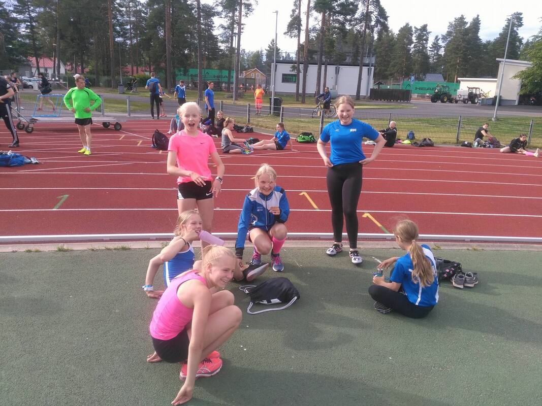 Tiistaina 25.6 kisattiin Hyvinkään kisat urheilupuistossa klo 17 alkaen. Reilut kolmituntiset kisat keräsivät jälleen mukavan osallistujamäärän, kun paikalle saapui 132 urheilijaa kilpailemaan sarjoissa 11-vuotiaista aikuisiin. Kilpailut vaativat jälleen ison ponnistuksen toimitsijajoukoltamme. Hyvien järjestelyjen ansiosta kisat saatiin taas sujumaan hyvin aikataulun mukaisessa järjestyksessä. Lämpimät kiitokset teille kaikille, jotka mahdollistitte tapahtuman järjestämisen! Lämmin kiitos myös kisojen aikana välinemyyntiä tehnyt Sportmixer Oy, joka myös lahjoitti 50€ arvoisen lahjakortin tapahtuman aikaista arvontakilpailua varten. Kisat keräsivät tänä vuonna poutaisessa säässä hienon tulossadon. Kilpailun odotetuimpia hetkiä olivat Suomen kärkihyppääjän ja Esbo IF:ää edustavan Saga Anderssonin seiväshyppysuoritukset. Saga sai tulokseksi tällä kertaa 418cm ja teki hyviä yrityksiä korkeudesta 430cm. Aktiivisesti kilpaileva Saga hakee tänä vuonna menestystä etenkin 22-vuotiaiden EM-kisoista, jotka kilpaillaan Ruotsin Gävlessä 11.-14.7. Toinen hieno suoritus nähtiin N19-kiekossa, kun Parkanon Urheilijoita edustava Silja Ahonen ylitti kahdeksalla sentillä 19-vuotiaiden EM-kisarajan (48,50m) tuloksella 48,58m. 19-vuotiaiden EM-kisat käydään 18.-21.7 Ruotsin Boråsissa. Naisten kuulantyönnössä nähtiin myös pitkiä pukkauksia, kun Turun Urheiluliiton Hennariikka Järvinen työnsi lukemat 13,59m. Miesten puolella saatiin keihäänheitossa venyttää mittaa, kun miesten sarjassa Veikkolan Veikkojen Pyry Mäkinen heitti tuloksen 65,10m ja hänen perässään Keski-Uudenmaan Yleisurheilun Joonas Hyvärinen tuloksen 63,53m. Myös KUY:n Jere Nyfors M17-sarjassa (58,79) ja P15-sarjassa Länsi-Uudenmaan Urheilijoiden Miki Makkonen (57,23) heittivät hienot tulokset. Kotikisojen johdosta paikalla oli hienosti 38:n HSUn urheilijaa. Ohessa kooste kaikkien urheilijoiden tuloksista, jotka kilpailivat laajasti kaikissa sarjoissa 11-vuotiaista aikuisiin. Mukaan mahtui suuri määrä uusia henkilökohtaisia ennätyksiä. T11-sarjassa oli mukana seitsemän HSUn urheilijaa. Iisa Aramo juoksi 60m aidoissa 1,6 metrin vastaisessa oman ennätyksensä 11,72 ja kuulassa tuloksen 6,76. Kia Sairanen oli tytöistä paras kuulassa työntäen viidenneksi tuloksella 7,11. Kia juoksi myös 60m aidat aikaan 12,29 ja juoksi 800m ajassa 3,05,28. Linnea Teivaanmäki työnsi kuulassa myös hyvän tuloksen 6,84 ja juoksi 60m aidat aikaan 12,73. Nelia Krantz juoksi 60m aidat aikaan 14,55, työnsi kuulaa 4,83m ja juoksi 800m aikaan 3,14,06. Catarine Billingham juoksi 60m aidat aikaan 13,51 ja työnsi kuulaa 4,69m. Venla Peltomäki juoksi 60m aidat aikaan 13,46 ja juoksi 800m aikaan 3,21,15. Mukana oli myös vasta 8-vuotias Miisa Virtanen, joka sivusi korkeudessa ennätystään hyppämällä 95cm. P11-sarjassa oli mukana neljä HSUn urheilijaa. Elias Oksanen otti korkeudessa kolmossijan tuloksella 124cm, juoksi aidoissa uuden ennätyksensä 11,54 huolimatta yli kolmen metrin vastatuulesta ja työnsi kuulassa ennötyksensä 7,61. Hyvää menestystä täydensi kahdella kolmossijallaan Anton Sokoff, joka voitti kuulassa Eliaksen sentin erolla työntämällä 7,62 ja juoksi 800m aikaan 2,50,88. Mukana olivat myös Henrik Ahoniemi, joka urakoi kaikki sarjansa lajit ja juoksi 60m aidat aikaan 14,28, hyppäsi korkeudessa 90cm, työnsi kuulaa 5,12m sekä juoksi 800m aikaan 3,07,57. Lauri Lamminen työnsi kuulassa lukemat 5,96 ja hyppäsi korkeudessa tuloksen 100cm. T13-sarjassa nähtiin seitsemän HSUn urheilijaa. Sarjan pituudessa toiseksi hyppäsi Elsa Pinola, jonka pisin hyppy kantoi 4,18m. Hypyissä oli ainesta myös pidemmälle, kun alastulo saadaan kesän aikana paremmin kuntoon. Elsan takana tasaisena rintamana hyppäsivät uusille ennätysluvuilleen Neela Jakonen (4,15m), Anni Huttunen (4,11m), Vilma Sorola (4,05m), Ester Solismaa (3,54m) ja Kia Niklander (3,25m). 60m aidoissa maaliin pääsivät Anni Huttunen ajalla 12,34 ja Neela Jakonen ajalla 12,49. Neela juoksi myös 800m aikaan 2,59,01. Kuulassa pisimmälle työnsi uudella ennätyksellään Sara Jousimaa (8,68m), mikä riitti kolmanteen sijaan. Saran perässä työnsivät ennätyksensä myös Sissi Kaksonen (7,64m), Neela Jakonen (6,14m) ja Kia Niklander (5,91m). P13-sarjassa hienoa tulosta teki Olavi Halonen. Olavi teki ennätyksensä niin 60m aidoissa (10,71), pituudessa (460cm) kuin kuulassa (10,58m). Hyvää kokonaispanosta täydensi Eeli Rovasalo hyppäämällä pituudessa kauden parhaansa 4,47m. T15-sarjassa onnistui erityisesti Isla Sokoff. Isla paransi 11cm verran korkeuden ennätystään tuloksella 1,42m. Myös kiekossa tuli reilu ennätysparannus, kun kiekko lensi lukemiin 27,35m. Lotta Lamminen paransi myös ennätystään korkeushypyssä tulokseen 130cm. Moona Virtanen hyppäsi korkeudessa 130cm ja juoksi N17-sarjassa 100m uuteen ennätysaikaan 14,95 ja hyppäsi pituudessa tuloksen 3,60m. N17-sarjassa oli myös aktiivista HSU-edustusta. Kiia Brandes juoksi 100m:llä uuden ennätysajan 13,69. Kiian vanavedessä Riina Virtanen ylitti maalilinjan ajassa 13,71. Lisäksi mukana oli Laila Lehtinen, joka sai ajan 15,05. Pituushypyssä pisimmälle loikkasi Noora Hietala, joka sai tulokseksi 4,76m. Perässä tuli vasta 14-vuotias Elsa Mattila (4,66m), Riina Virtanen (4,60m) ja Laila Lehtinen (4,17m). M17-sarjassa mukana oli kolme HSUn urheilijaa. Kasperi Cederqvist kiihdytti pojista 100m:llä nopeimmin juoksemalla ajan 12,93. Perässä tulivat Juho Kantoniemi (13,63) ja Aarre Uusitalo (13,93). 800m:llä Kasperi oli taas nopein ajalla 2,36,88 ja perässä kakkoseksi juoksi Aarre Uusitalo ajalla 2,46,38. Juho oli mukana keihäässä, jossa onnistui hienosti tuloksella 34,46. N19-sarjassa 100m:llä jouduttiin harmittavasti ottamaan uusintajuoksu. Siinä juoksivat Vilma Rönkä ajalla 13,94 ja Henna Julkunen ajalla 14,62. Vilma oli myös pituudessa mukana, jossa hän sai tuloksen 4,54m. M19-sarjassa oli mukana Niilo Kanto