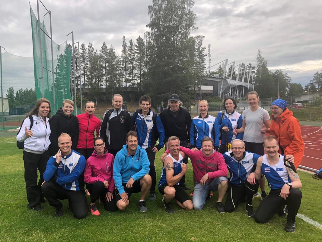 Hyvinkään Seudun Urheilijoiden perinteiset kaupunginmestaruuskisat järjestettiin keskiviikkona 26.6:ta urheilupuistossa, jotka olivat järjestyksessään jo kahdeksannnet. Rentohenkinen kilpailu suunnattiin kaikille hyvinkääläisille aikuis- ja nuorisourheilijoille, jotka olivat kiinnostuneet tulla kokeilemaan taitojaan yleisurheilussa. Kesän ensimmäisissä kaupunginmestaruuskisoissa lajina oli 3-ottelu, joka sisälsi 200m-juoksu, pituuden ja kuulan, joista sai halutessaan suorittaa vain tietyt lajit. Kisoihin osallistui tänä vuonna mukavasti 15:ta kilpailijaa, jotka kilpailivat sarjoissa M/N, M/N40, M/N50 ja M/N60. Kilpailujen aikana raikuivat urheilijoille kannustukset ja onnittelut hyvistä suorituksista. Kisat käynnistyivät 200m-juoksulla, jossa kovimman ajan juoksi M40-sarjassa kilpaillut Taro Voigemast, joka juoksi ajan 27,8. Tarmon perässä tuli maaliin Juha Jääskeläinen ajassa 29,3. Naisissa kovinta vauhtia piti N40-sarjan Minna Kouhia ajalla 29,9 ja naisten sarjassa Saana Pasma ajalla 31,7. Pituushypyssä pisimmät hypyt hyppäsivät miesten osalta jälleen Tarmo, joka leiskautti pisimmällä hypyllään tuloksen 485cm. Tarmon perässä toiseksi pisimmälle liisi Juha (460cm) ja miesten sarjaan osallistunut Antti Salomäki (434cm). Naisten puolella pisimmälle hyppäsivät Saana (451cm) ja Minna (449cm). Kuulantyönnössä osallistujat olivat hyvin tasaisia. Miesten puolella pisimmälle työnsi Antti Salomäki (773cm), M50-sarjan Jari Vuorenmaa (715cm) ja Tarmo (713cm). Naisten puolella koko kisojen pisimmästä työnnöstä vastasi naisten sarjassa kisannut Laura Salminen (803cm), Minna (797cm) ja Saana (796cm). Myös N50-sarjassa kilpaillut Suvi Luukkonen (797cm) työnsi lähelle 8m rajaa. 3-ottelun lopuksi oli pienimuotoinen palkintojenjako, jossa palkittiin jokaisen sarjan voittaja. Voittajat sarjoittain olivat Antti Salomäki (M), Tarmo Voigemast (M40), Jari Vuorenmaa (M50), Antti Rissanen (M60), Saana Pasma (N), Minna Kouhia (N40) ja Suvi Luukkonen (N50). Liitteenä tulokset. Liitteet |