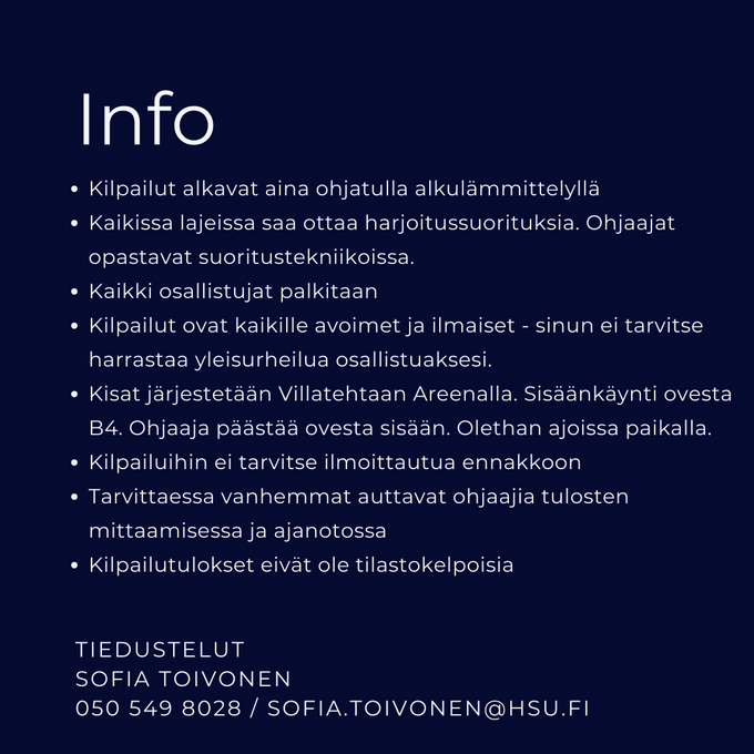| 2025-02-03 HSU Seurakisa - Tulokset.pdf (406 kB) Tulokset Seurakisoista 8-15v 40m ja Kuula |