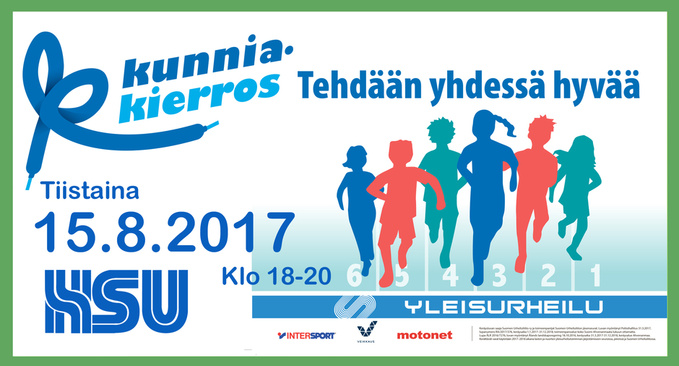 Tule mukaan kuntoilemaan: kävelemään, hölkkäämään tai juoksemaan Kunniakierros -tapahtumaan. Näin tuet Hyvinkään Seudun Urheilijoiden toimintaa ja lasten & nuorten urheilumahdollisuuksia!